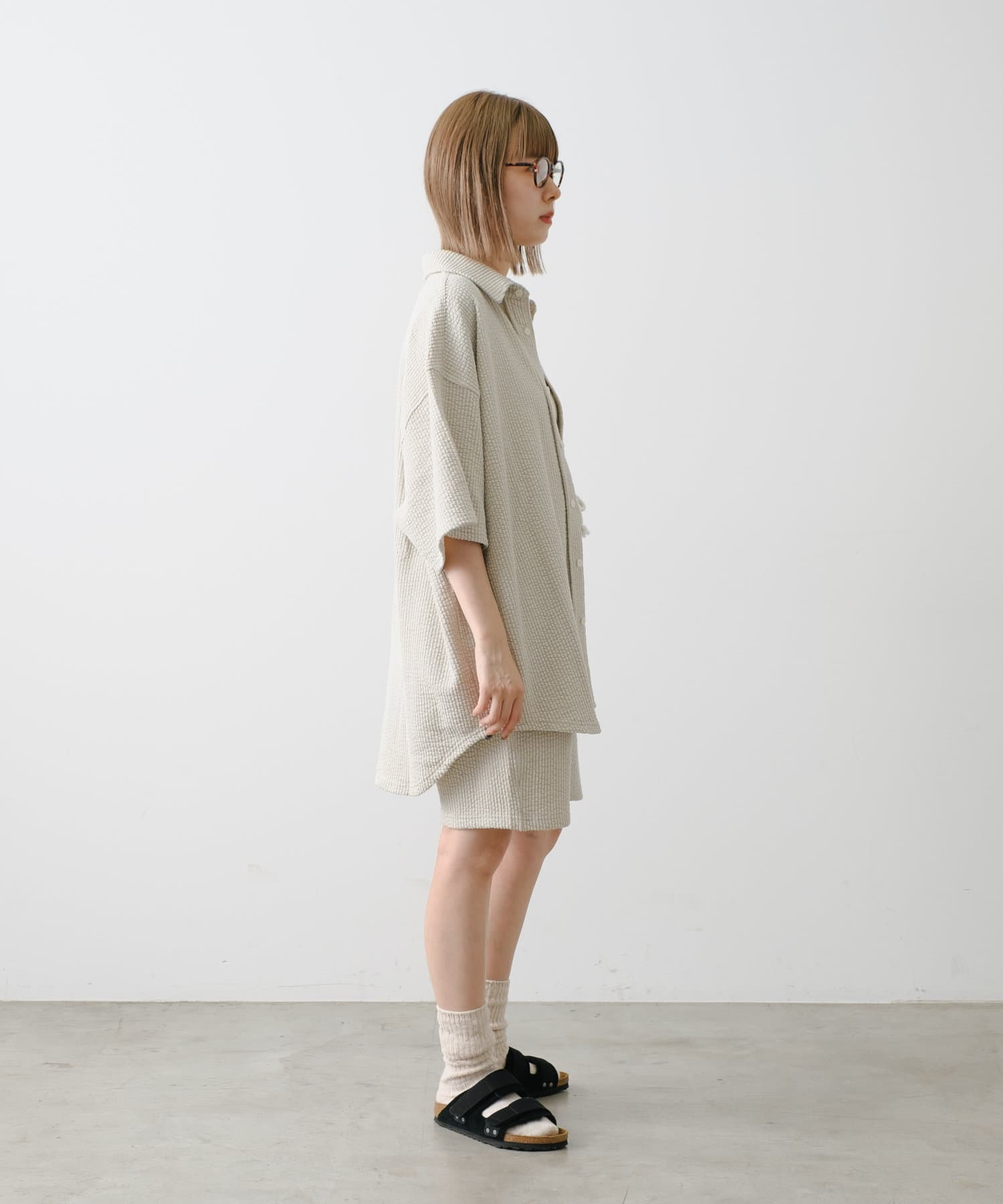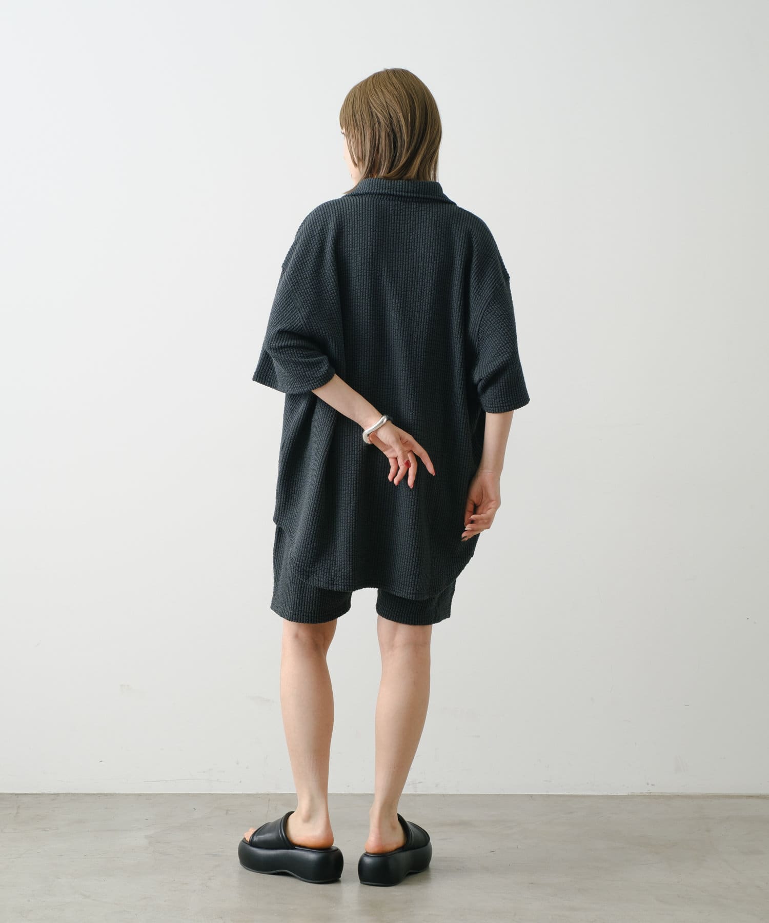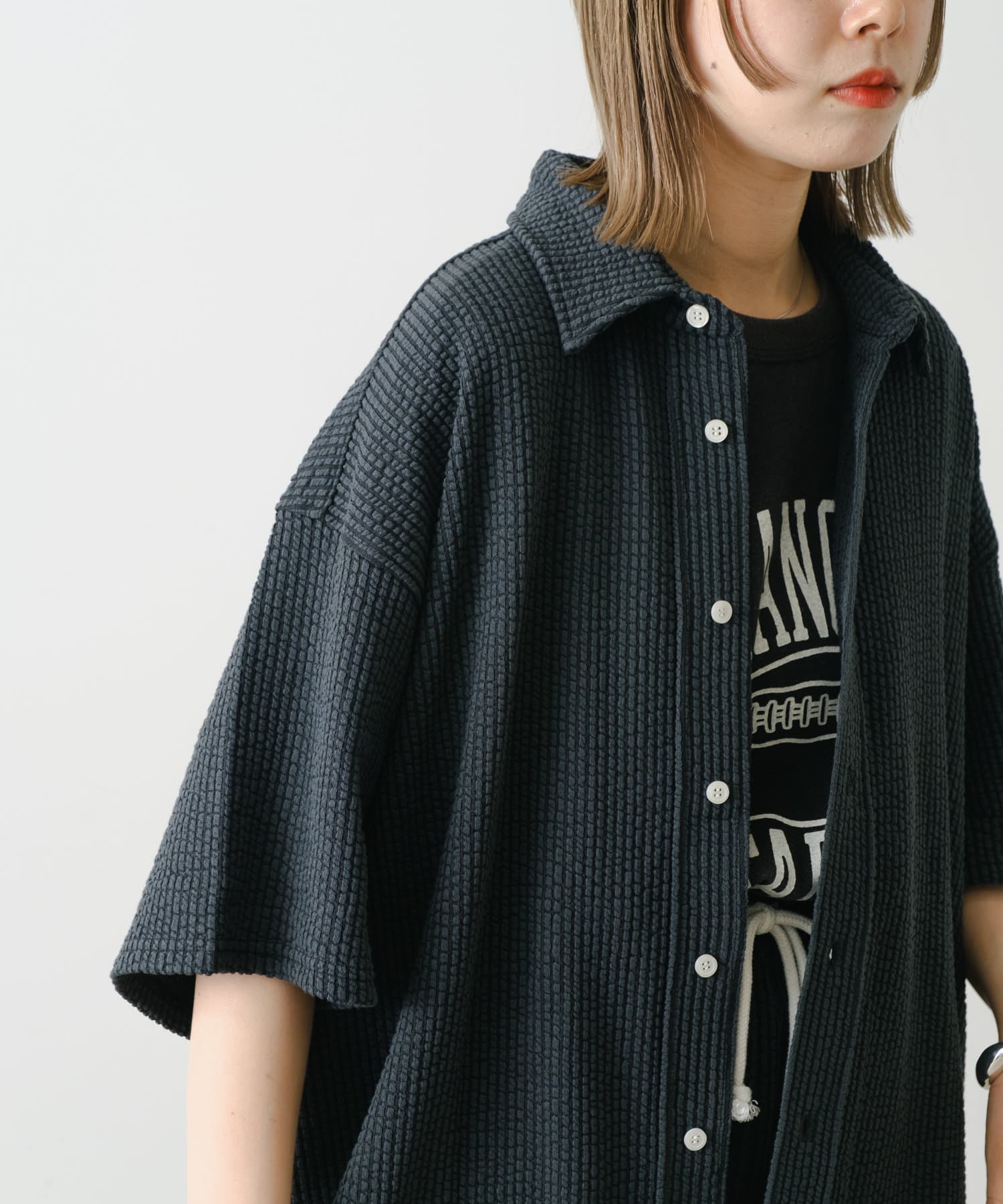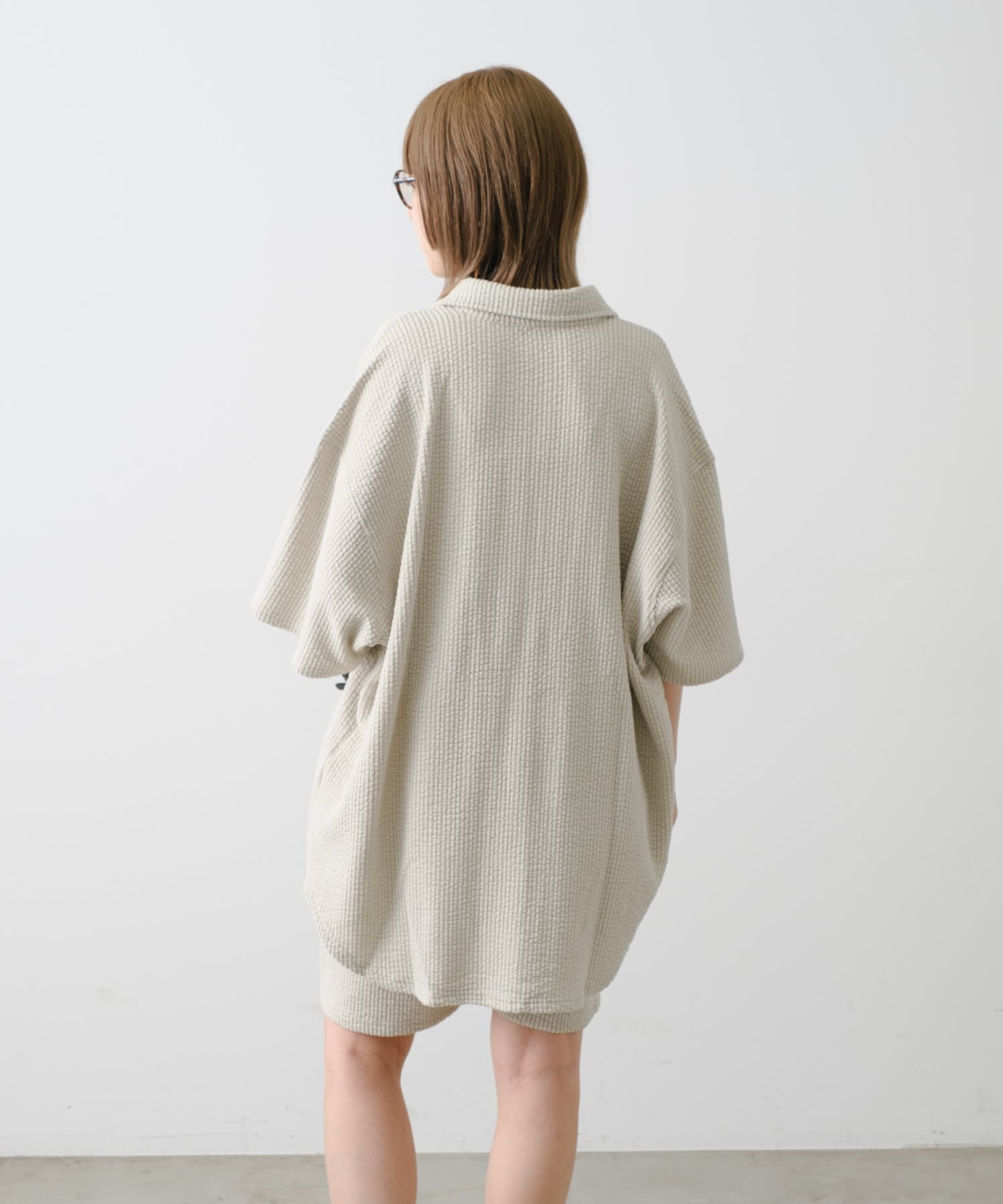 【UNISEX】STRETCH SEERSUCKER SHORT SLEEVE SHIRT