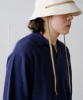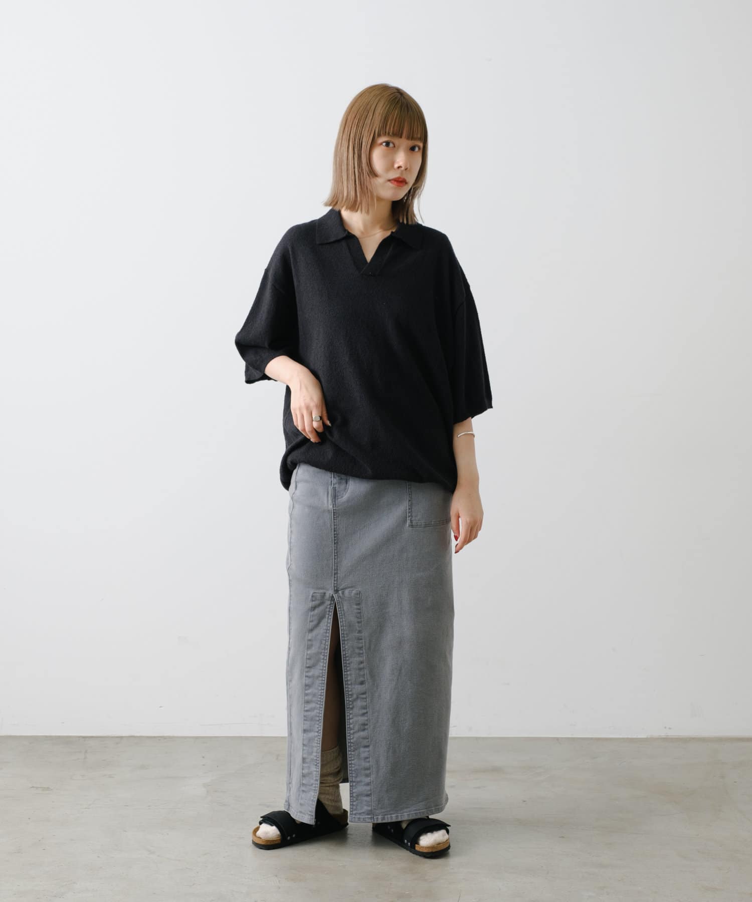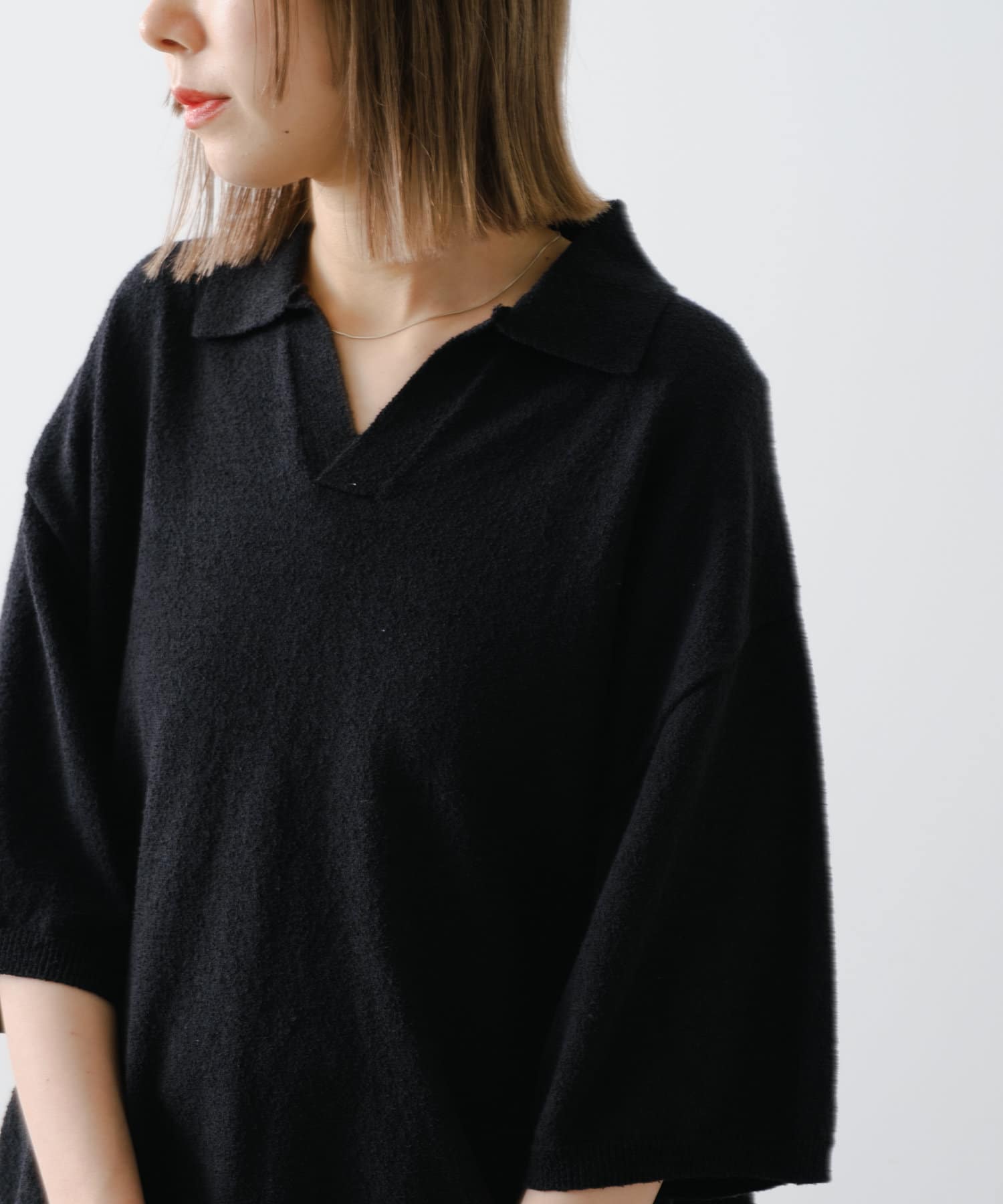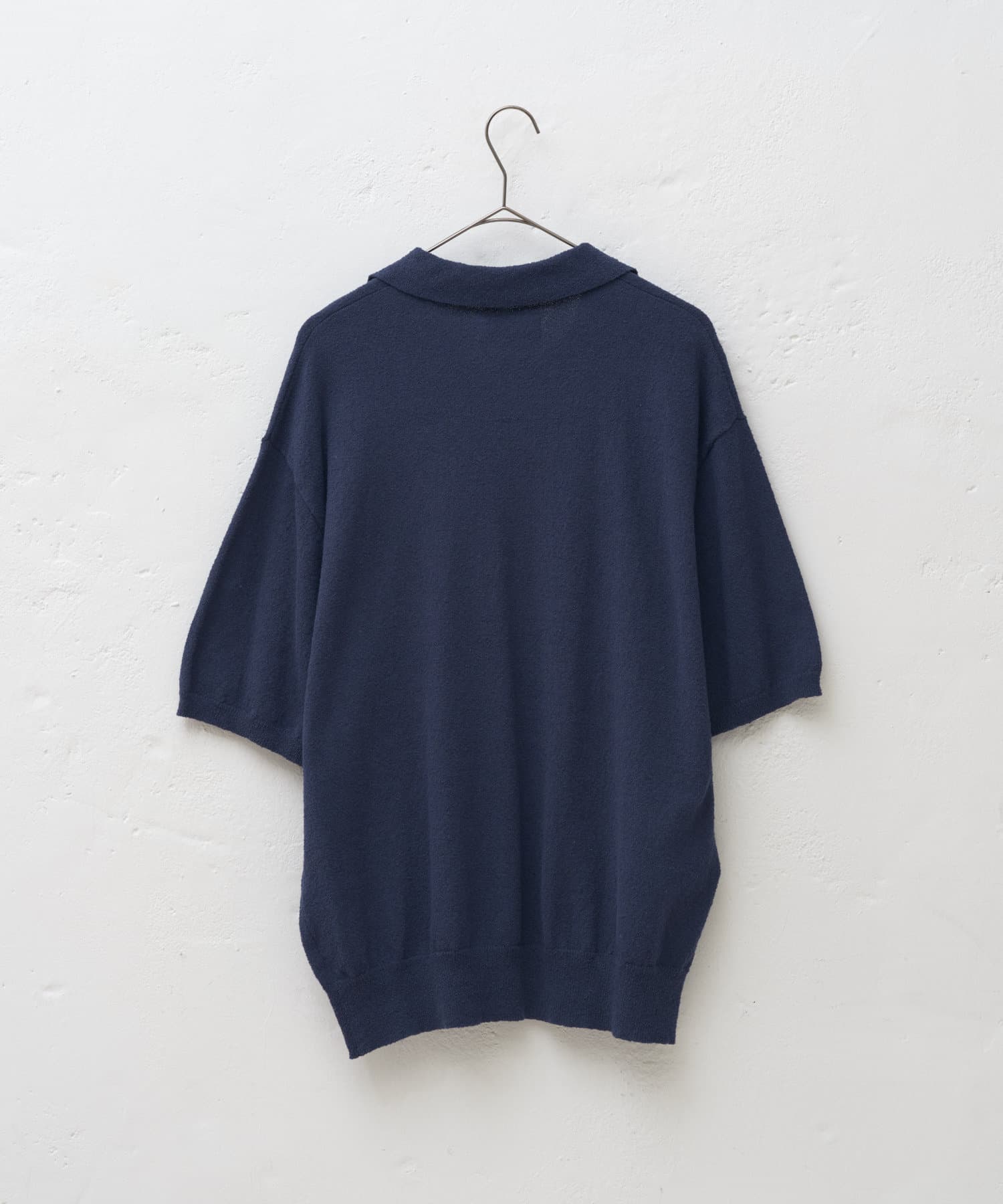 ドライタッチなブークレ糸を細かく編み上げた春夏に最適な清涼感のあるスキッパーネックタイプのプルオーバーです。