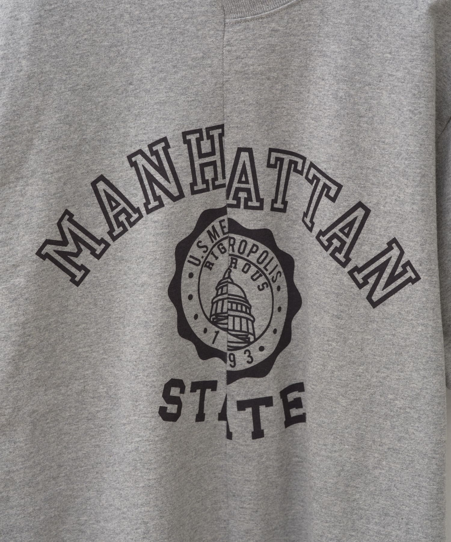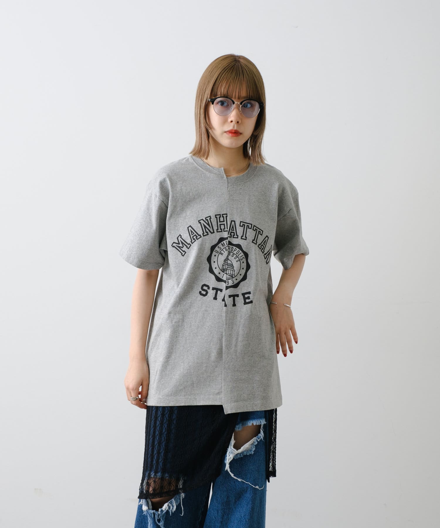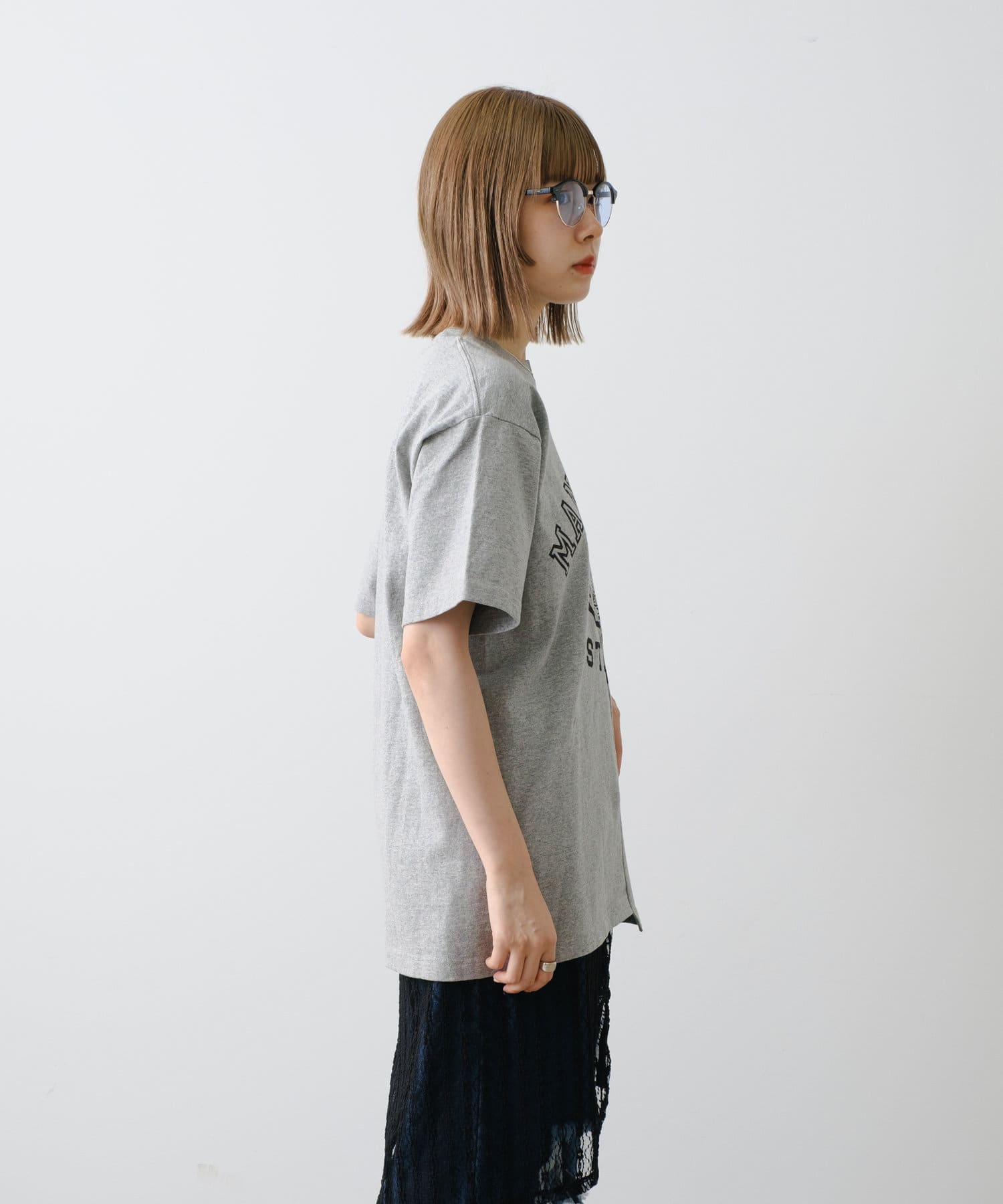 6.2オンスオープンエンドマックスウェイトTシャツをベースに、シルクスクリーンプリント後にリメイク加工を施したプリントTシャツです。