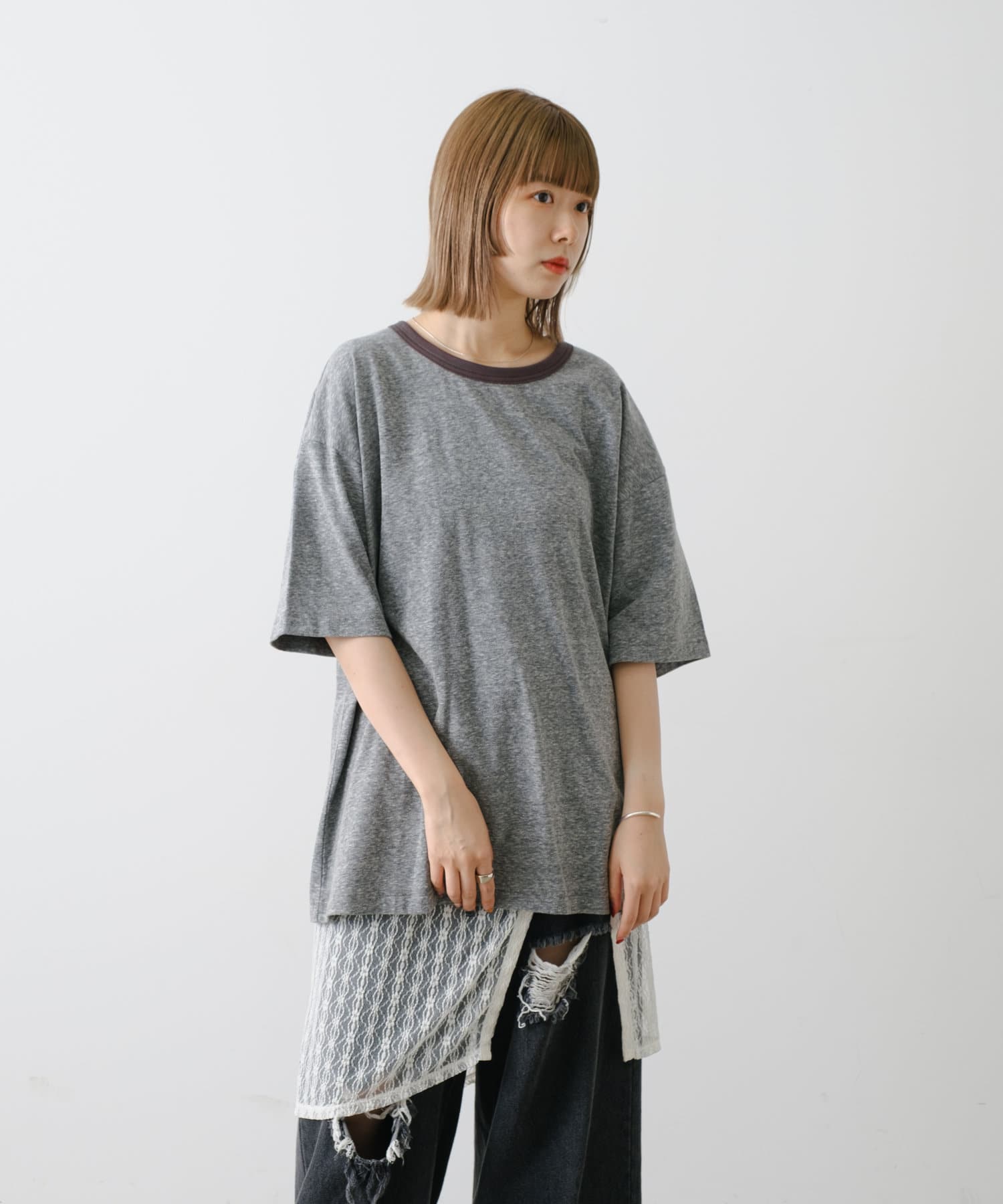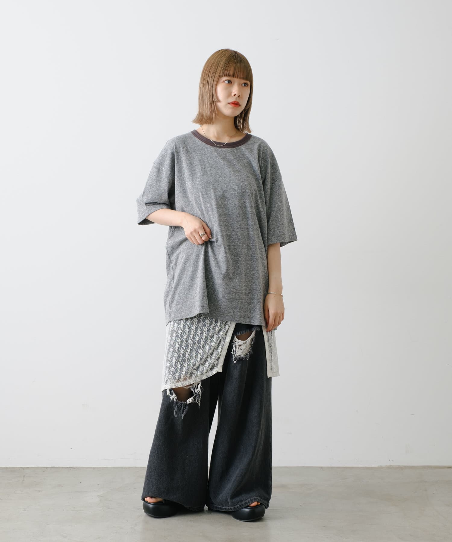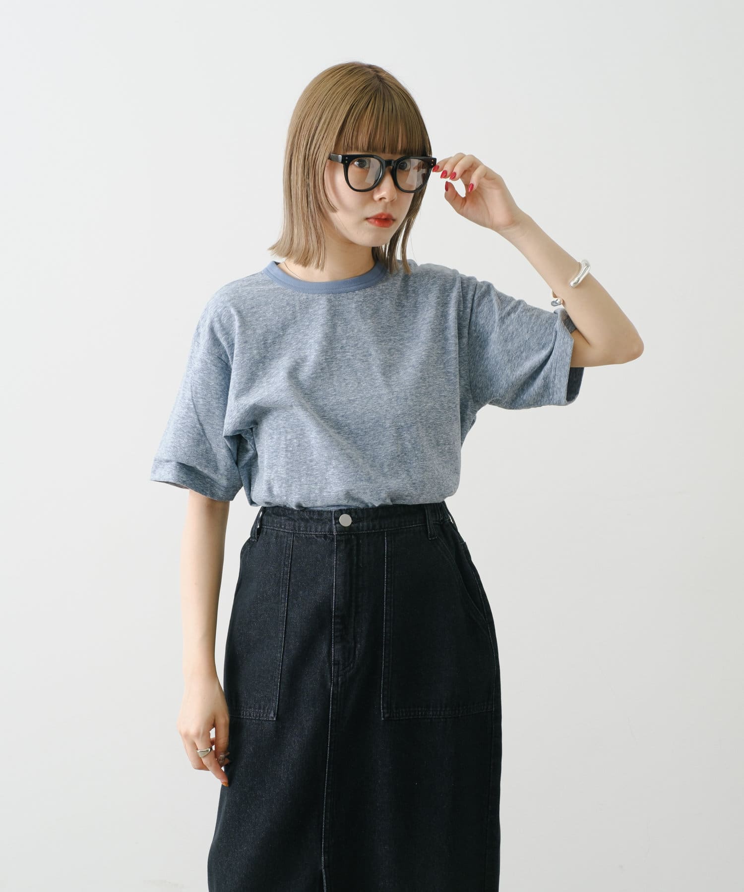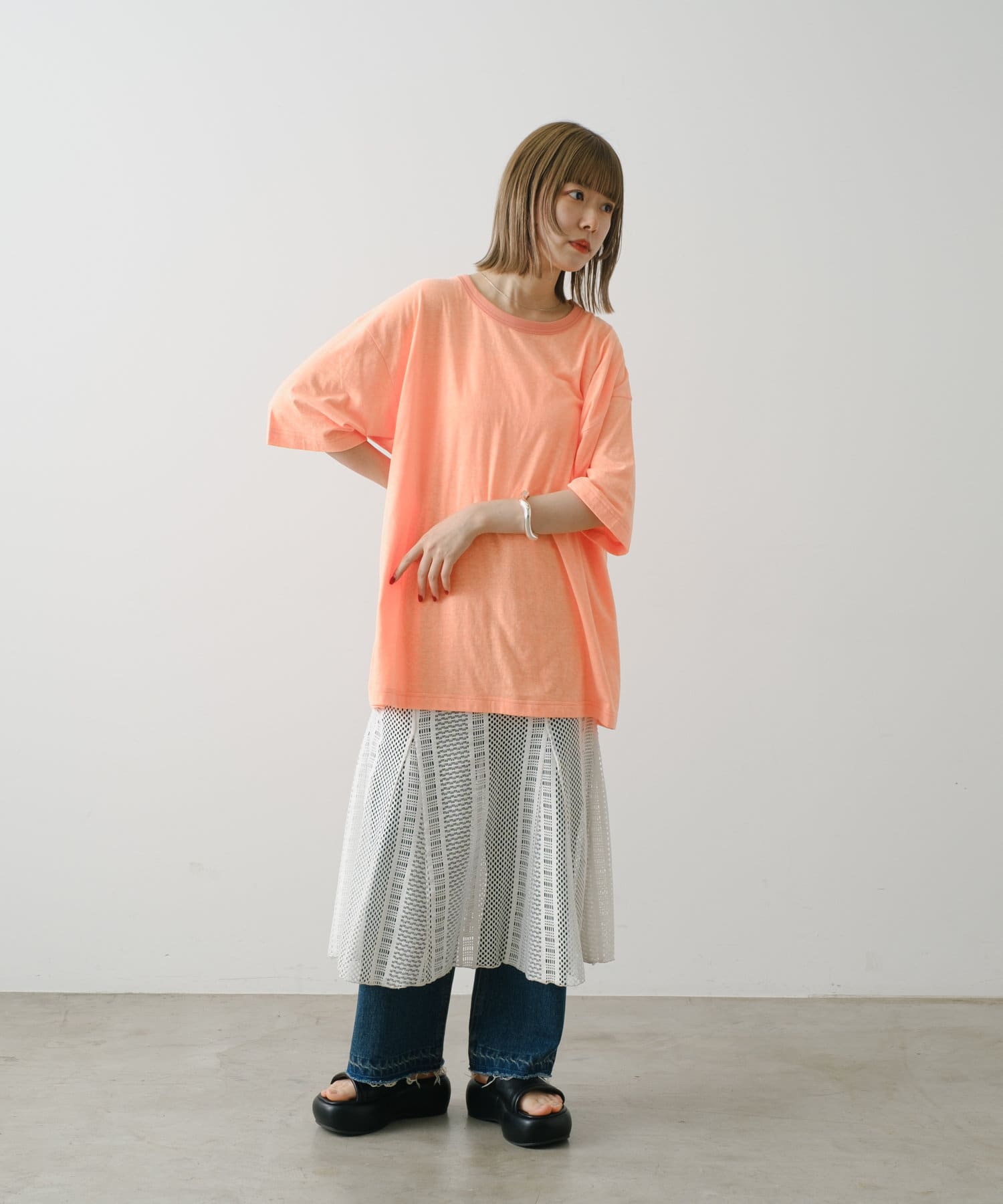 お好みのサイズでボリュームパンツからタイトなパンツ、ミニボトムまで幅広くボトムバランスが取れるTシャツです。
