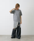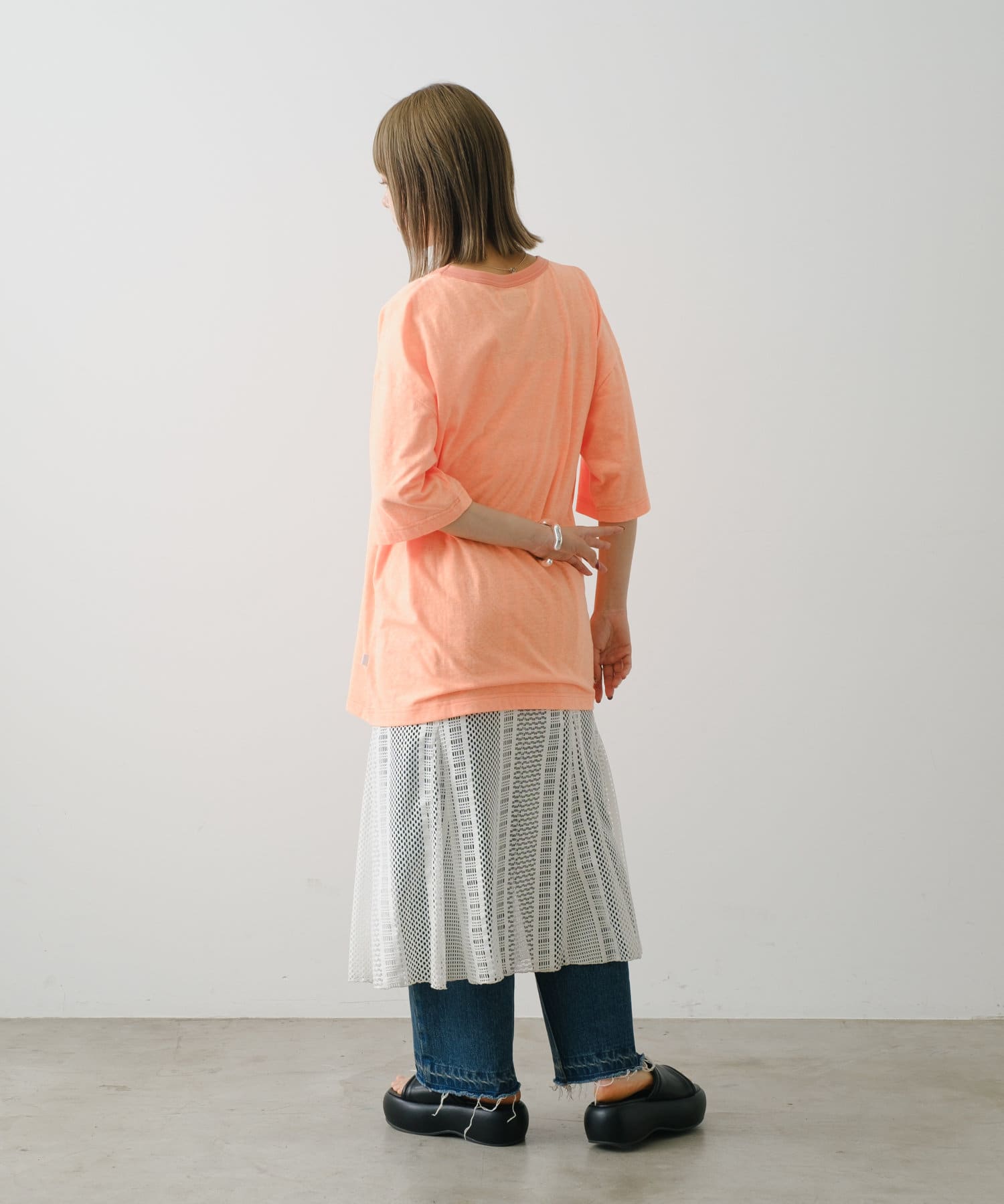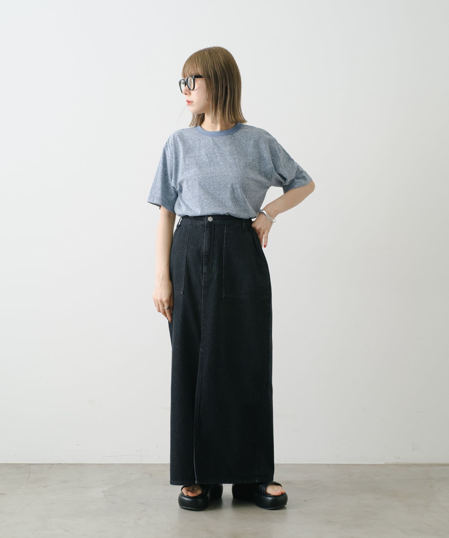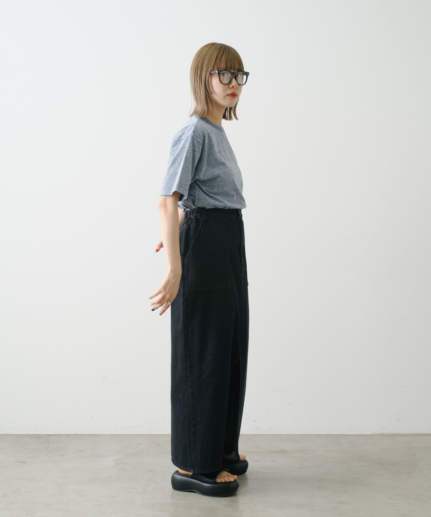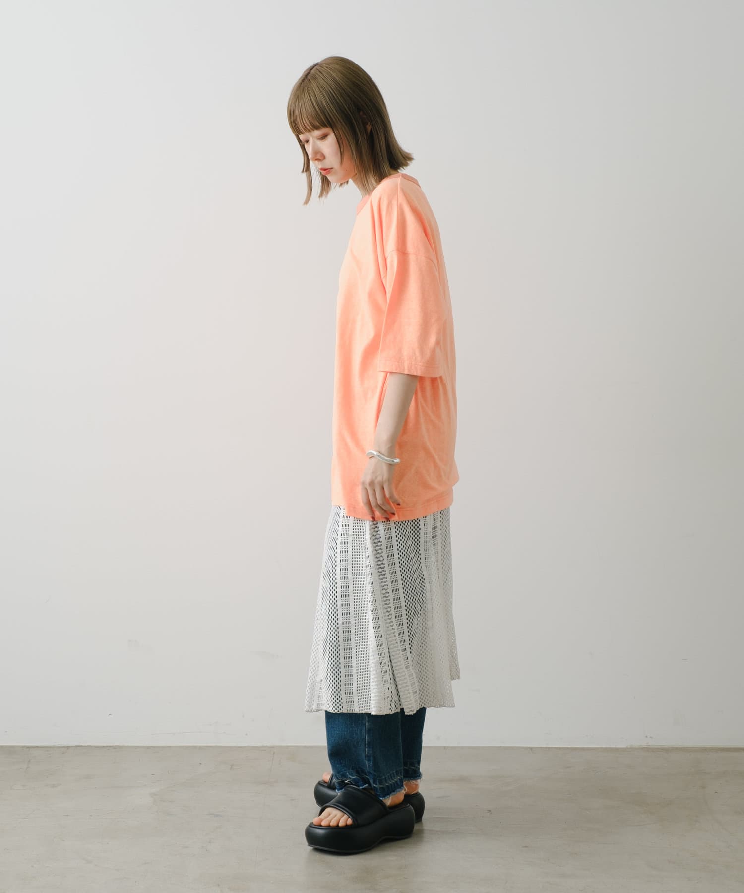 お好みのサイズでボリュームパンツからタイトなパンツ、ミニボトムまで幅広くボトムバランスが取れるTシャツです。