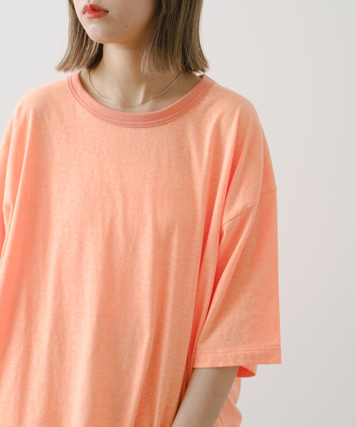 ネップスラブ糸を使用したカットソー生地で、ソフトで肌触りが良く、生地にムラ感があり清涼感とヴィンテージTシャツのような雰囲気のあるTシャツです。
