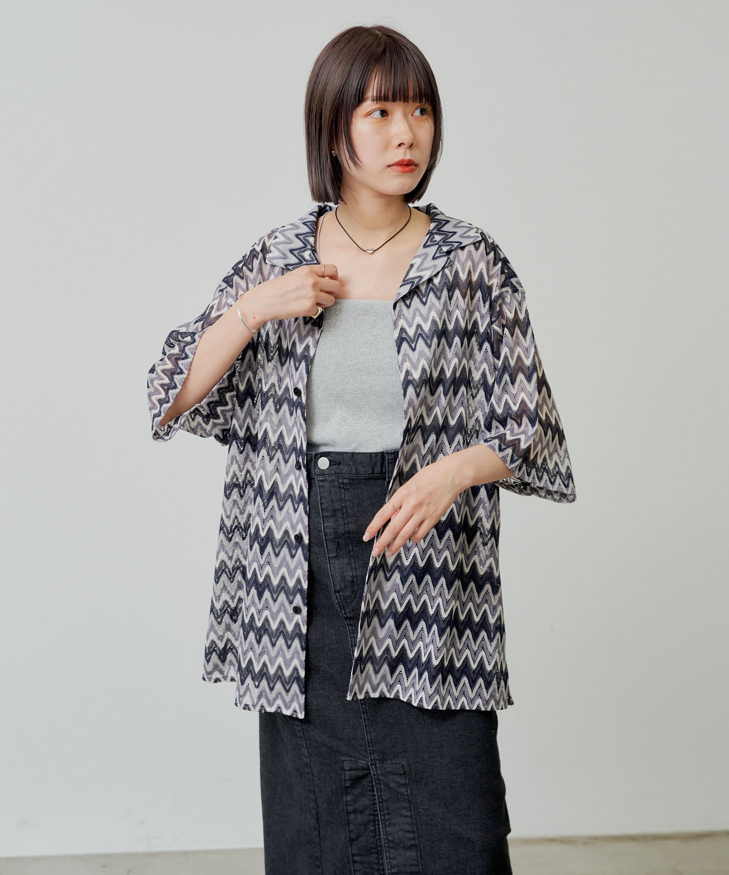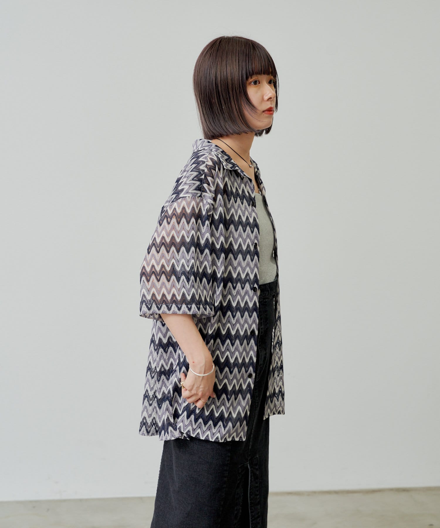 【UNISEX】OPEN COLLAR LACE SHIRT