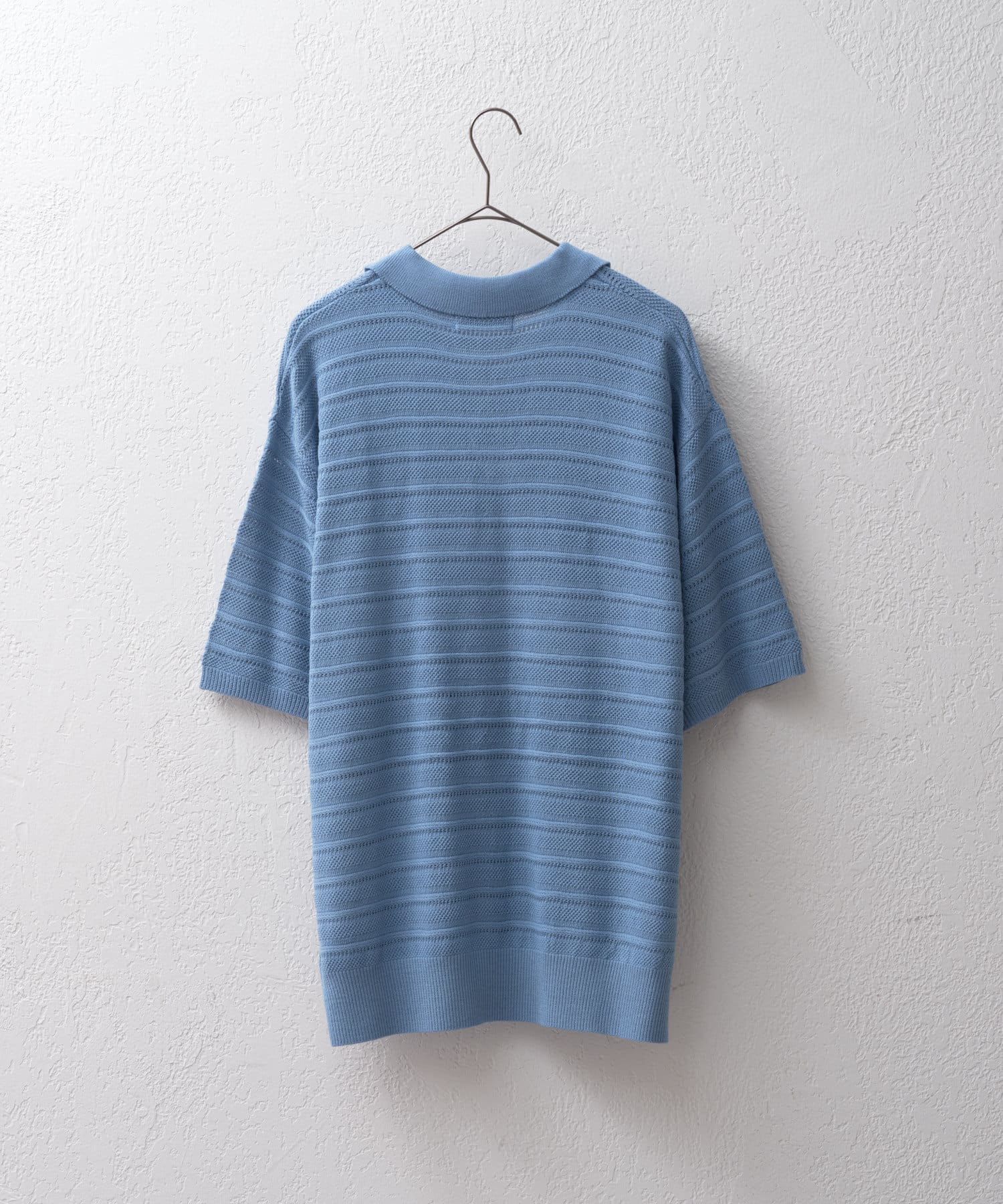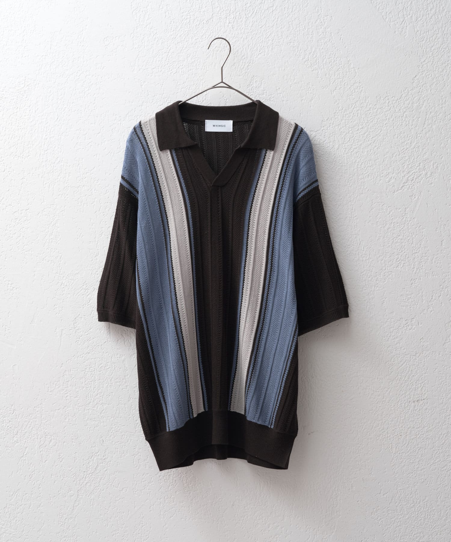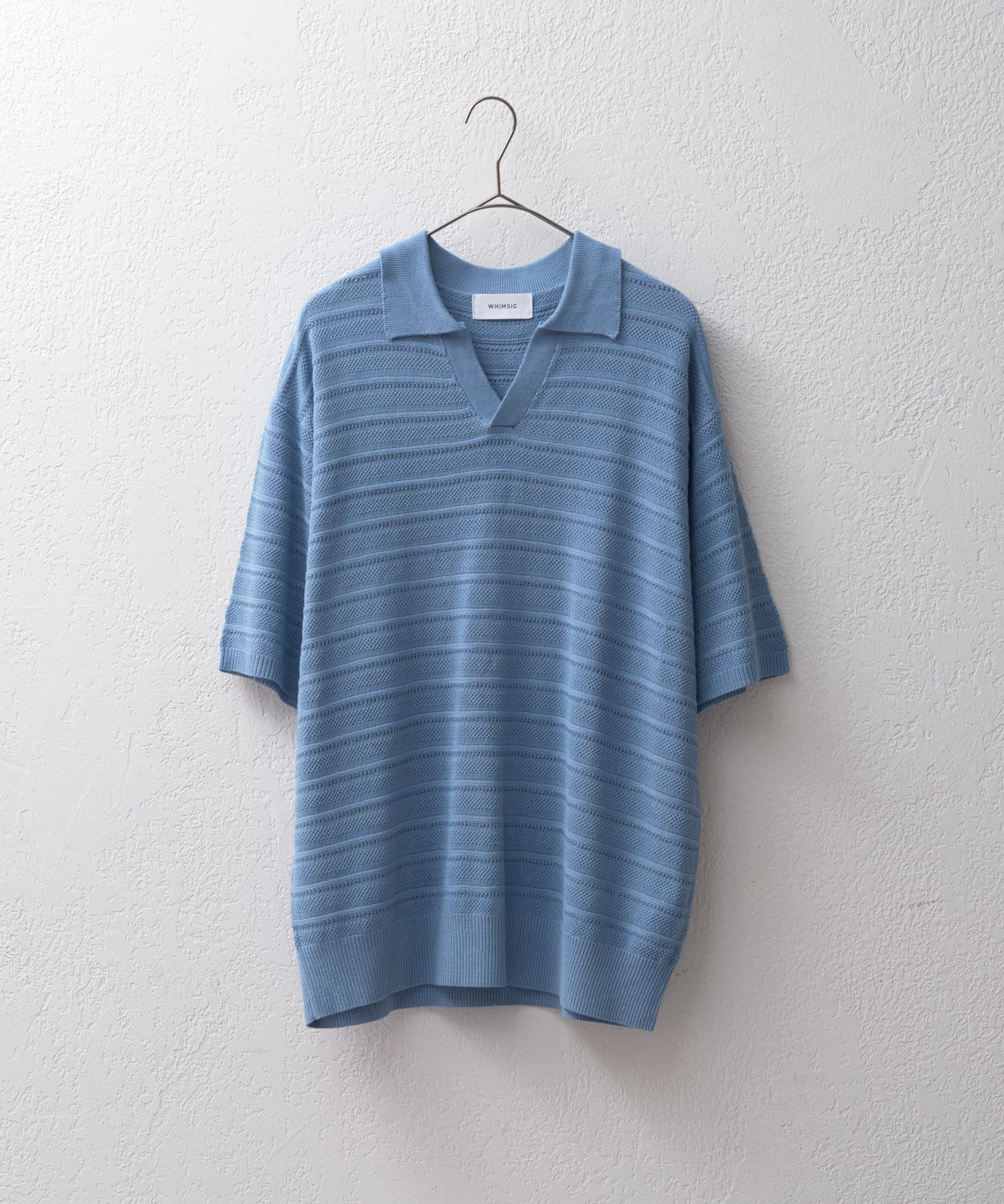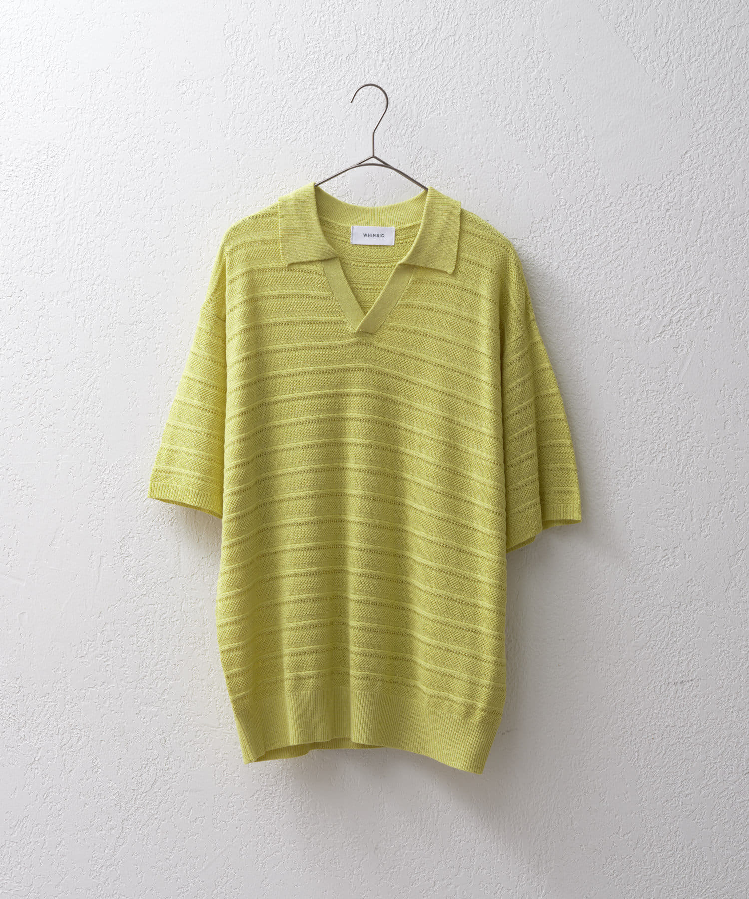 【UNISEX】SKIPPER NECK MESH JACQUARD KNIT PULLOVER
