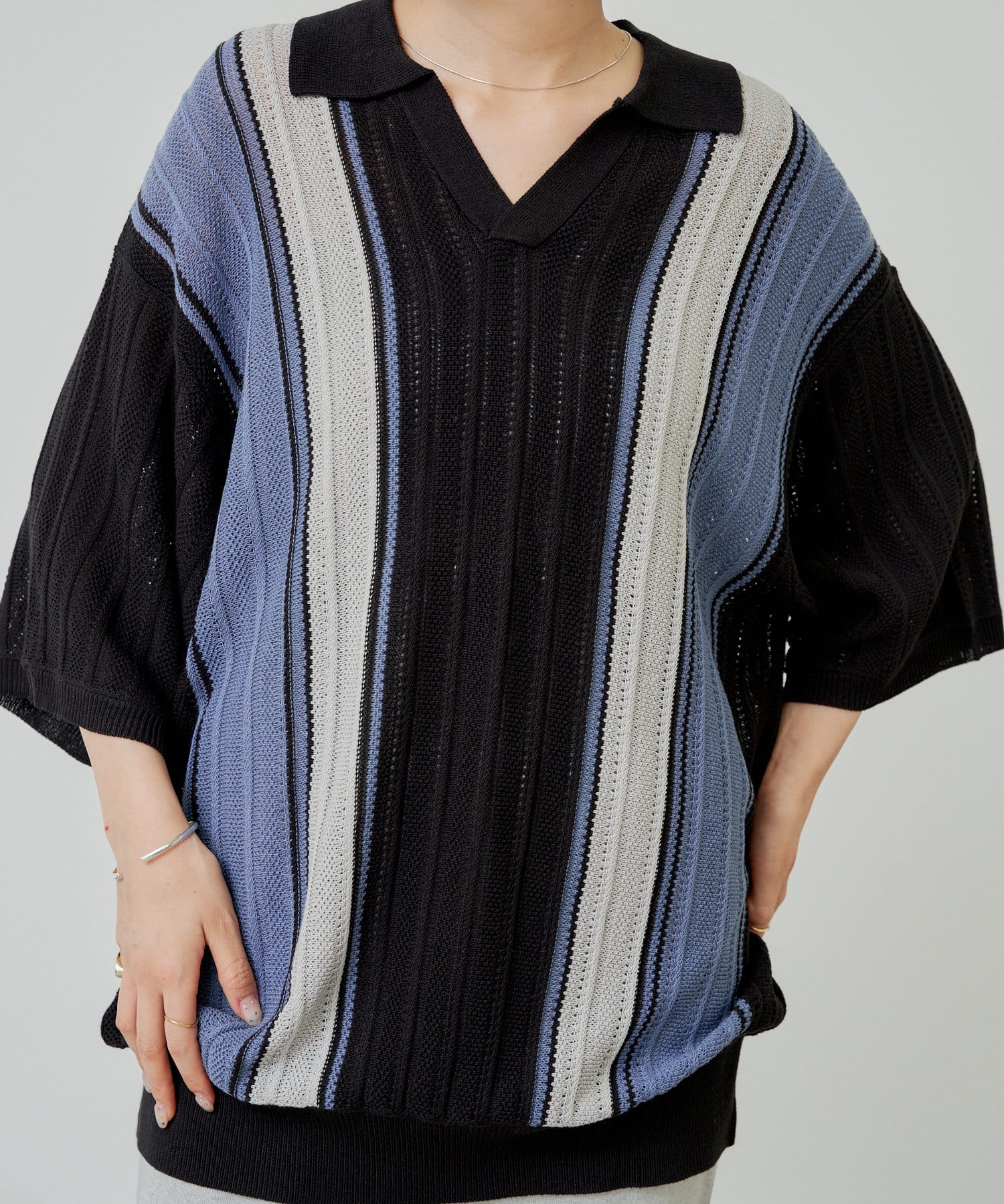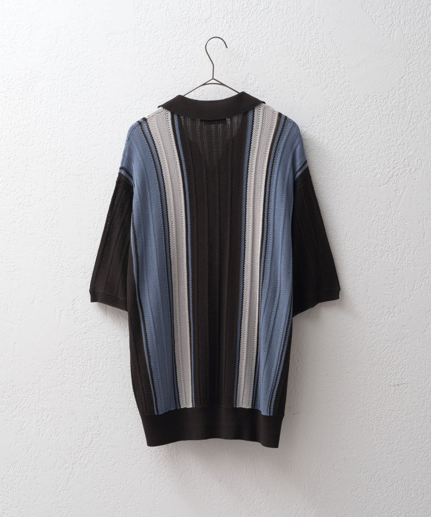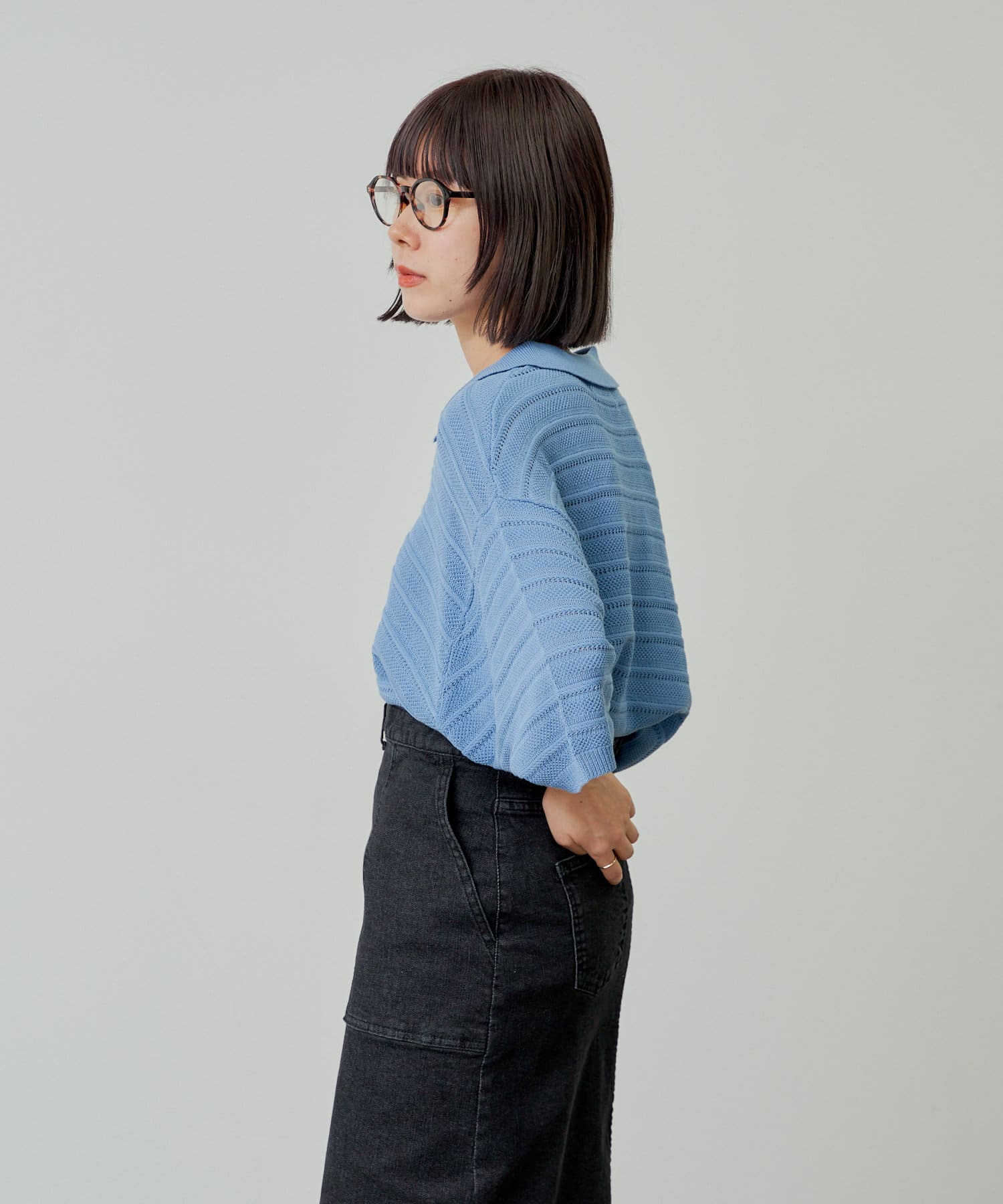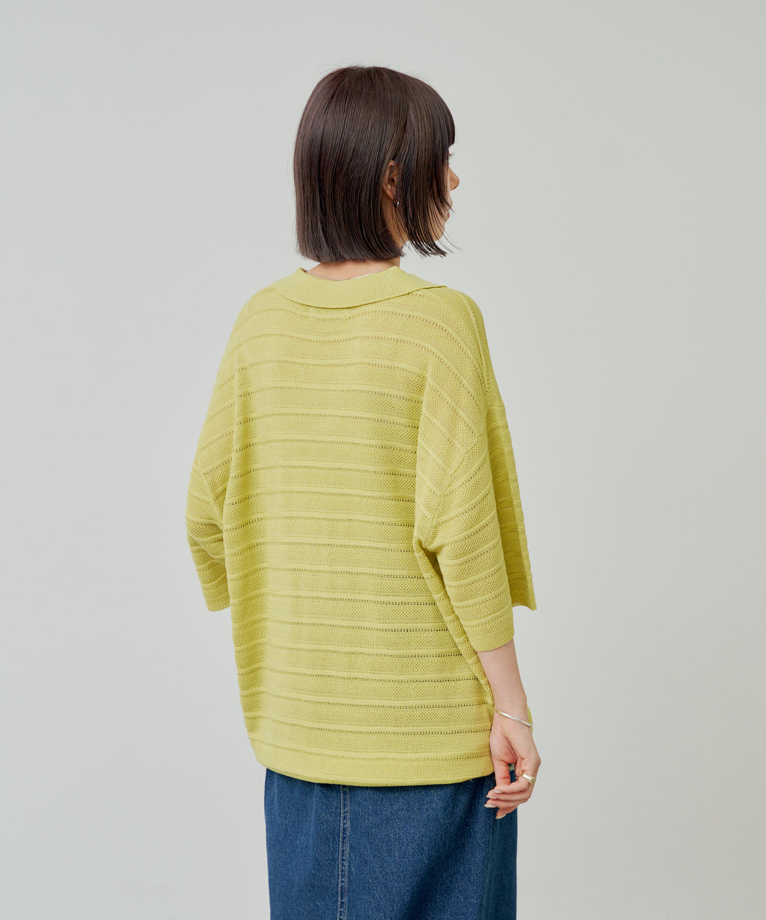 【UNISEX】SKIPPER NECK MESH JACQUARD KNIT PULLOVER