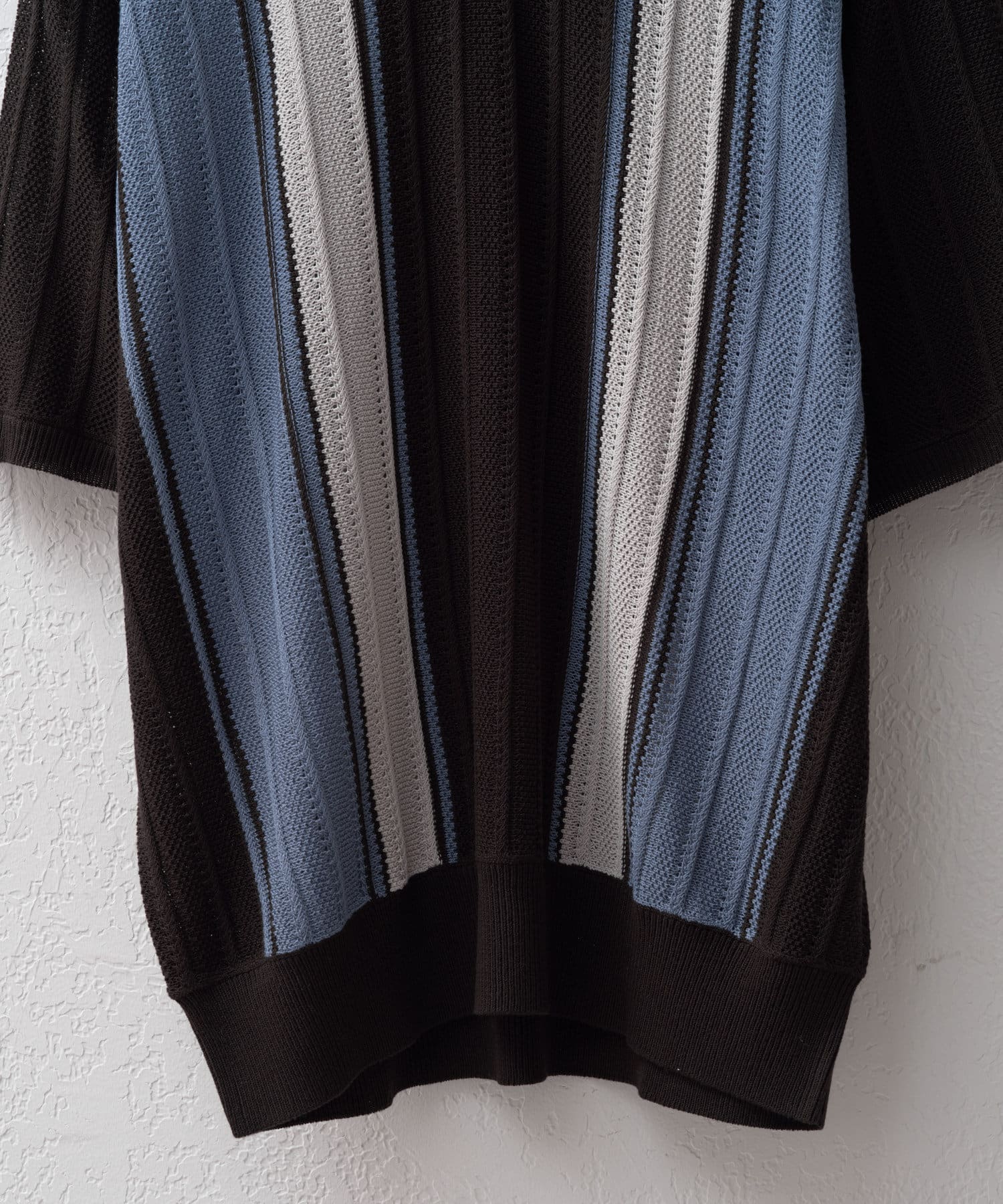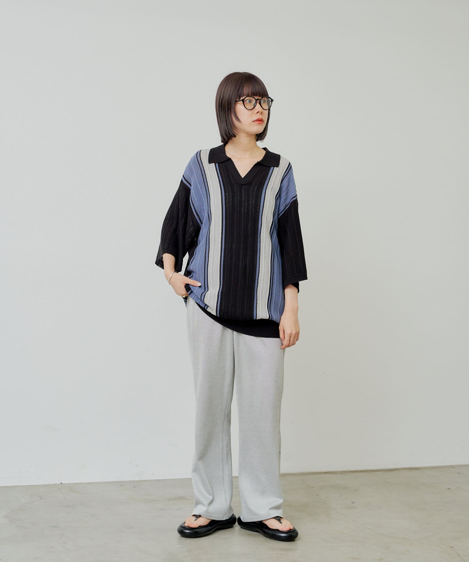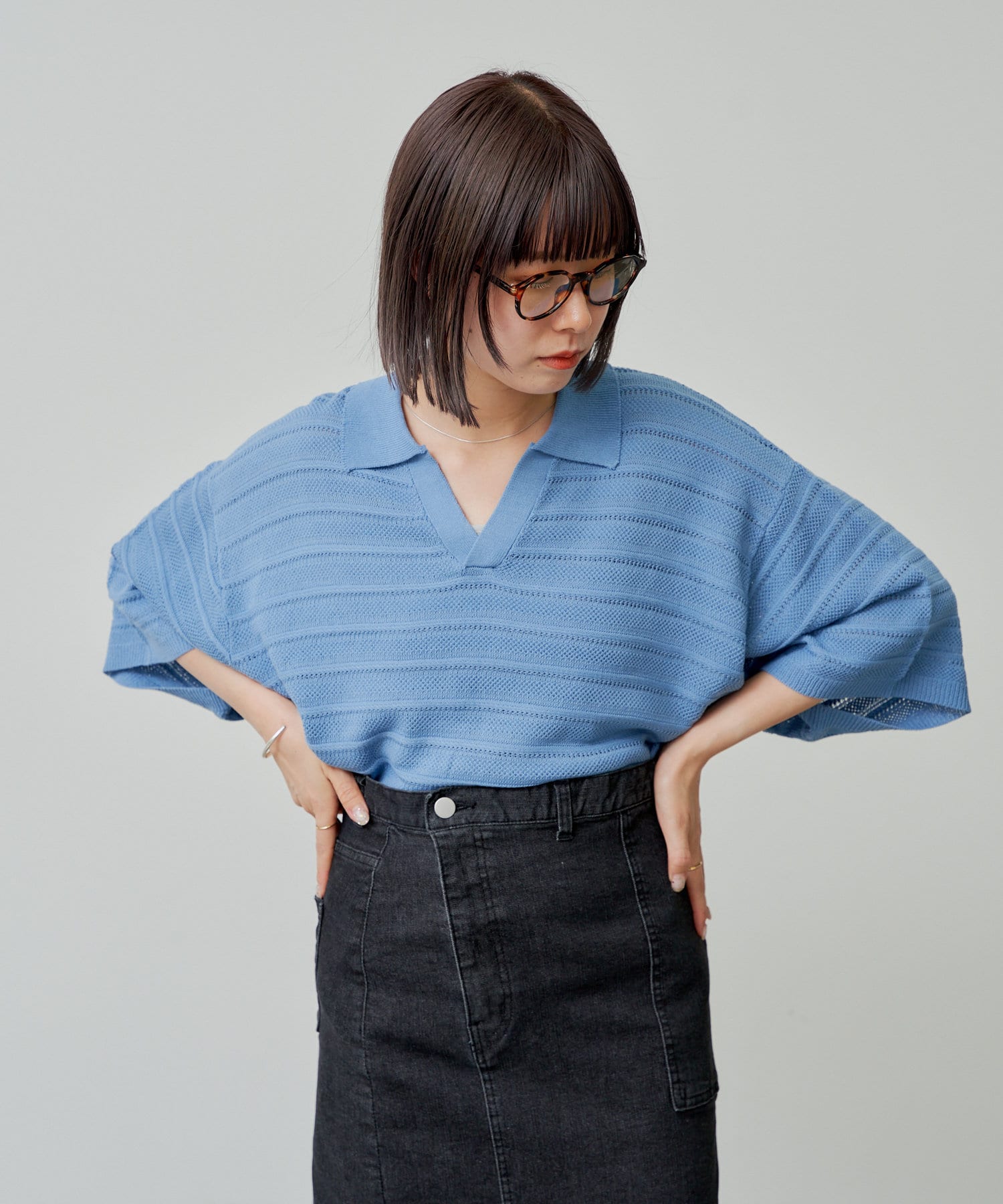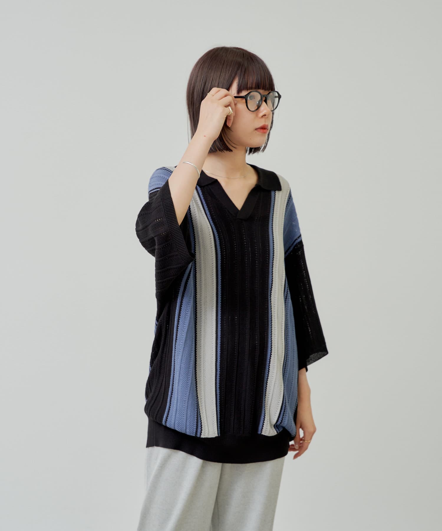 【UNISEX】SKIPPER NECK MESH JACQUARD KNIT PULLOVER