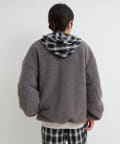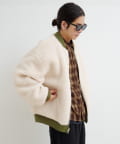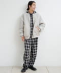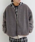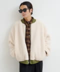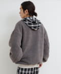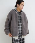 ボア面を表にしてチェックシャツやスウェットを合わせれば、温かみのあるカジュアルスタイルに。