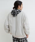 片面はふっくらとしたボアで季節感たっぷり、片面はツヤ感のあるナイロンでミリタリーテイストに。