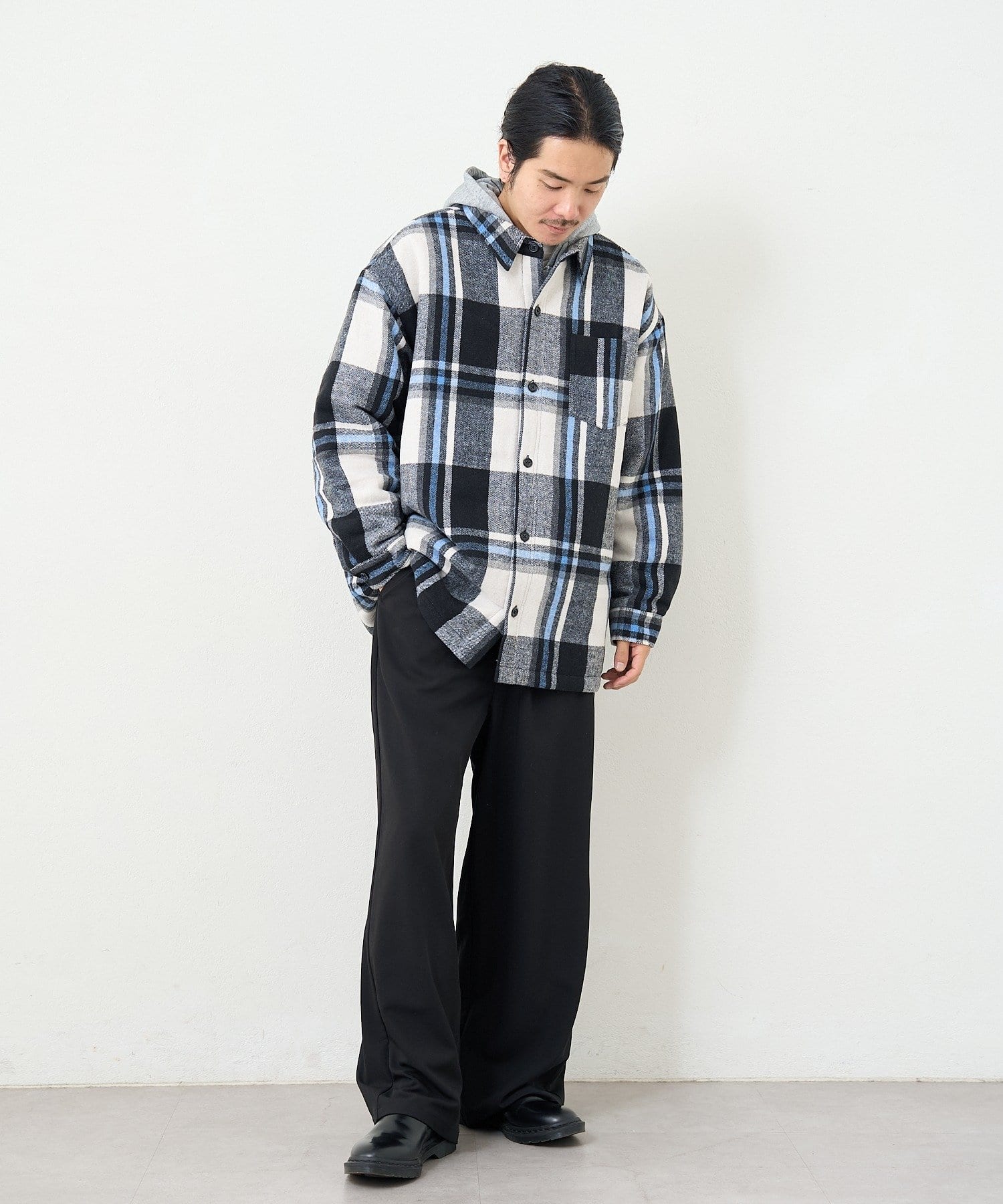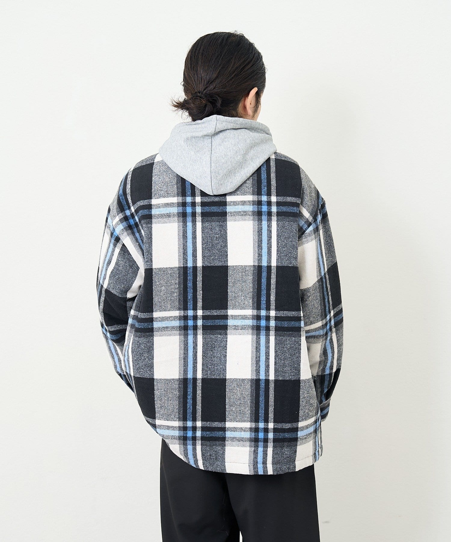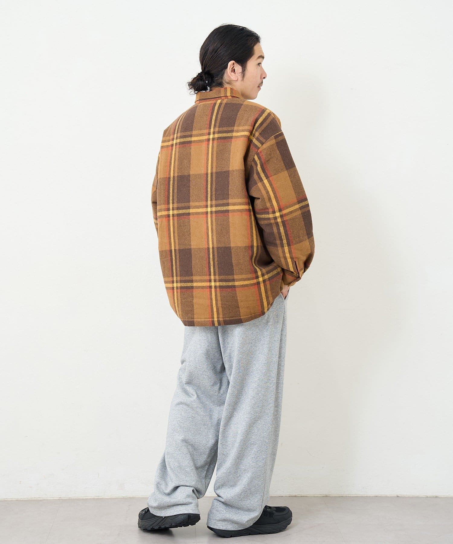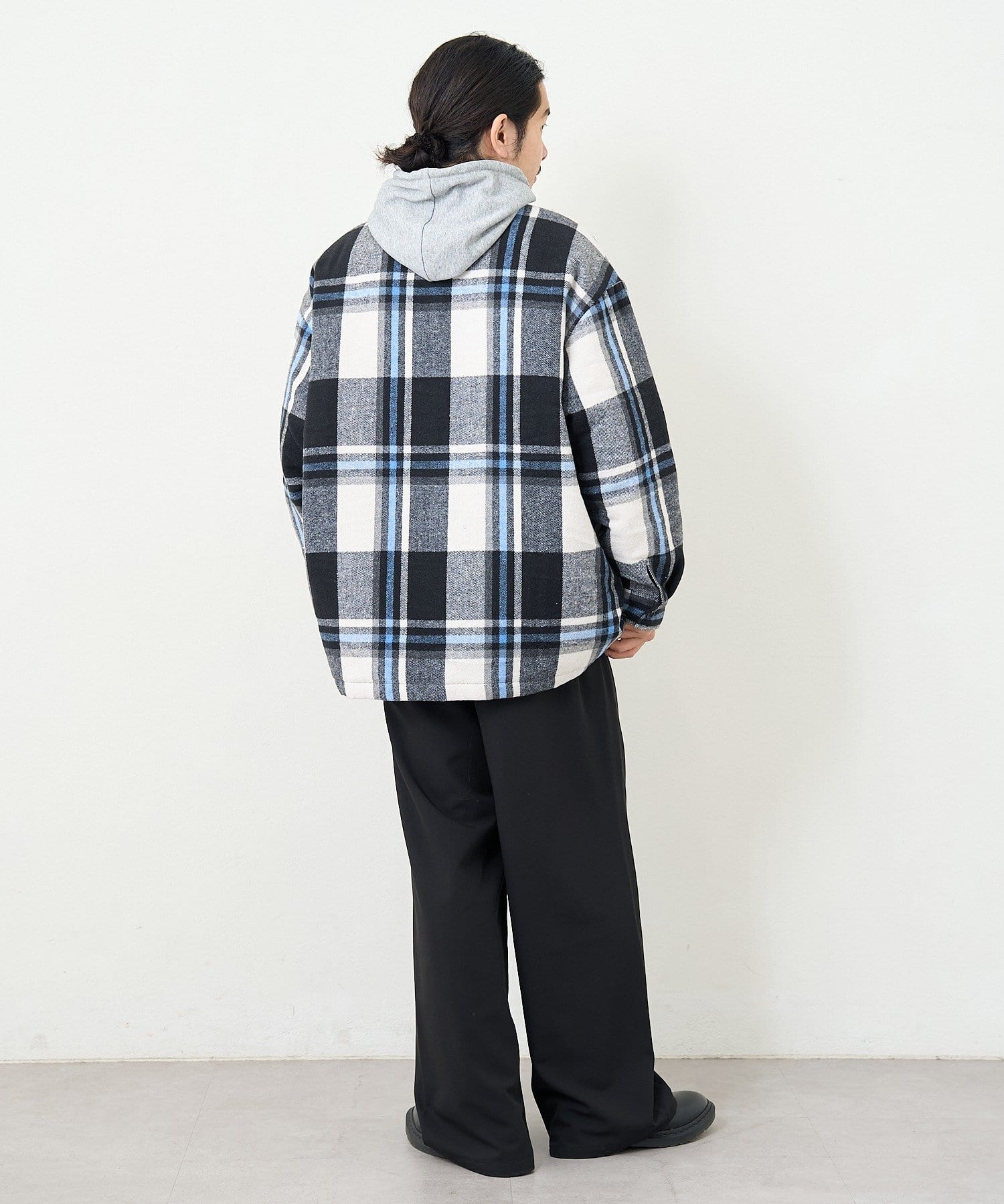 ほっこりとした大柄チェックが存在感を放つ、中綿入りのシャツジャケット。