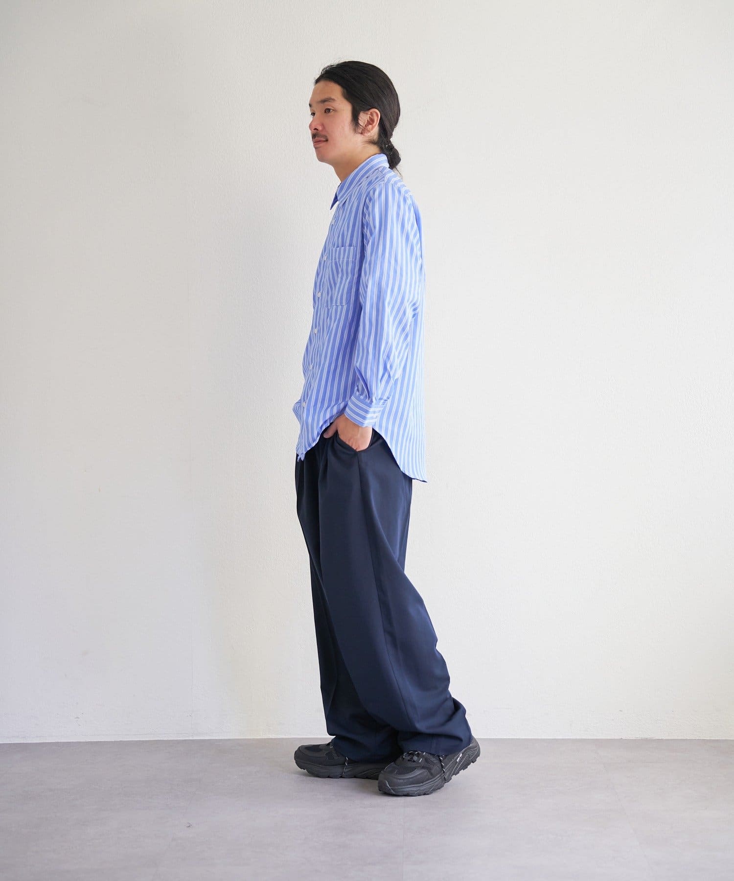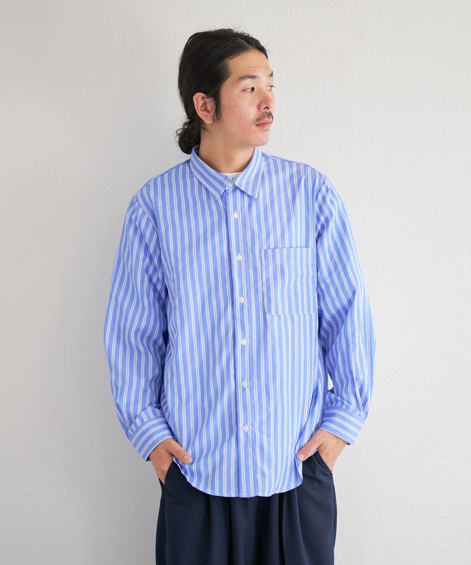TOP > Kastane > レディース > トップス > シャツ/ブラウス(ボタン) > 【ユニセックス】BM ストライプラウンドシャツ