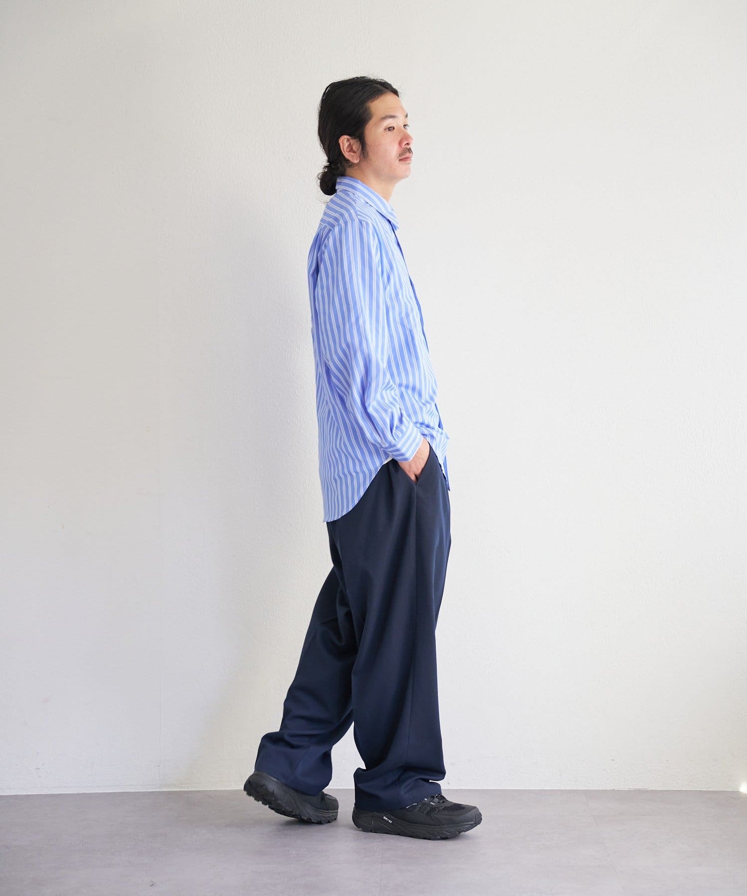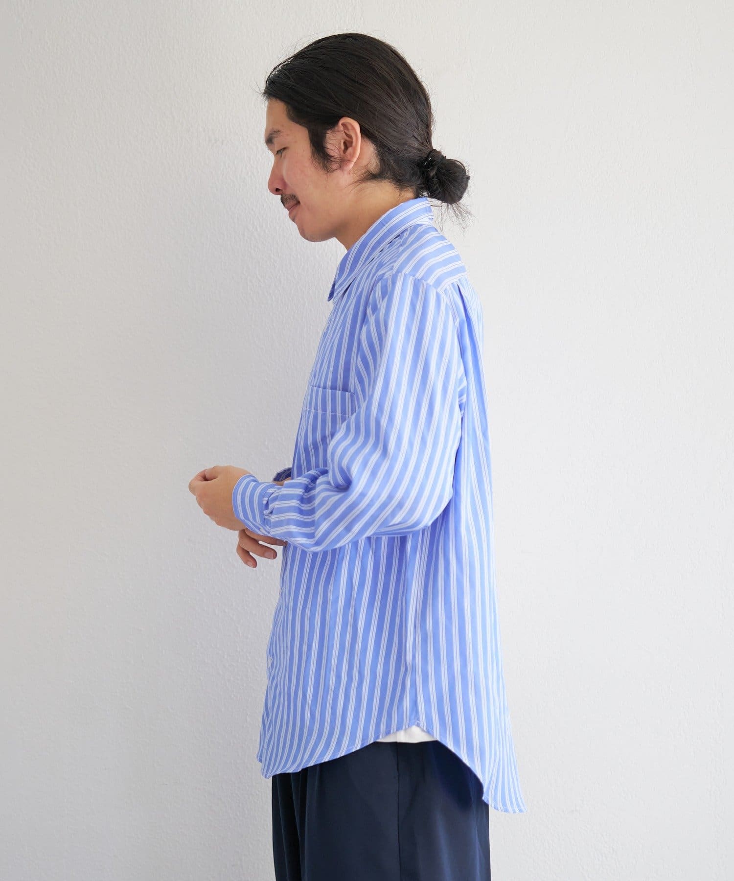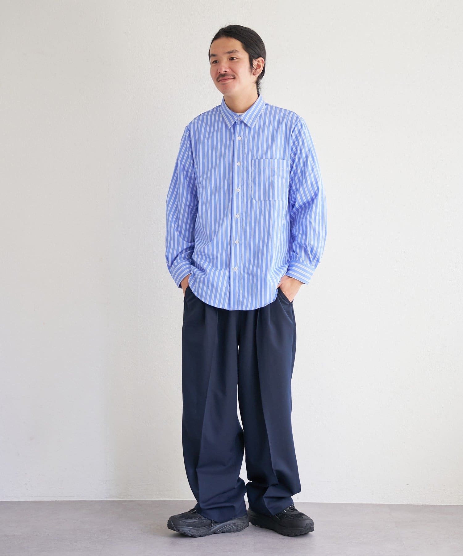 爽やかなストライプ柄をあしらったクリーンな印象のシャツ