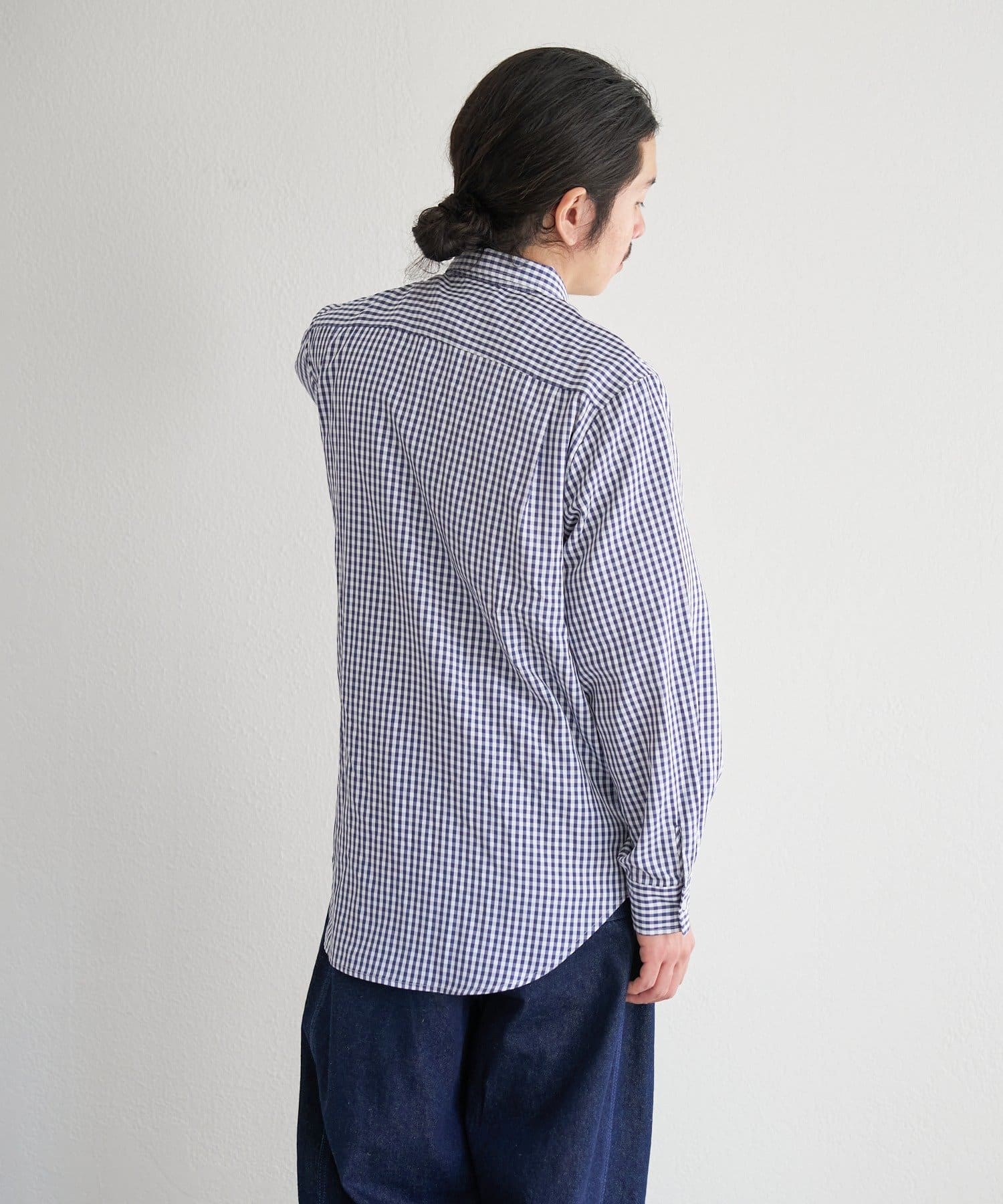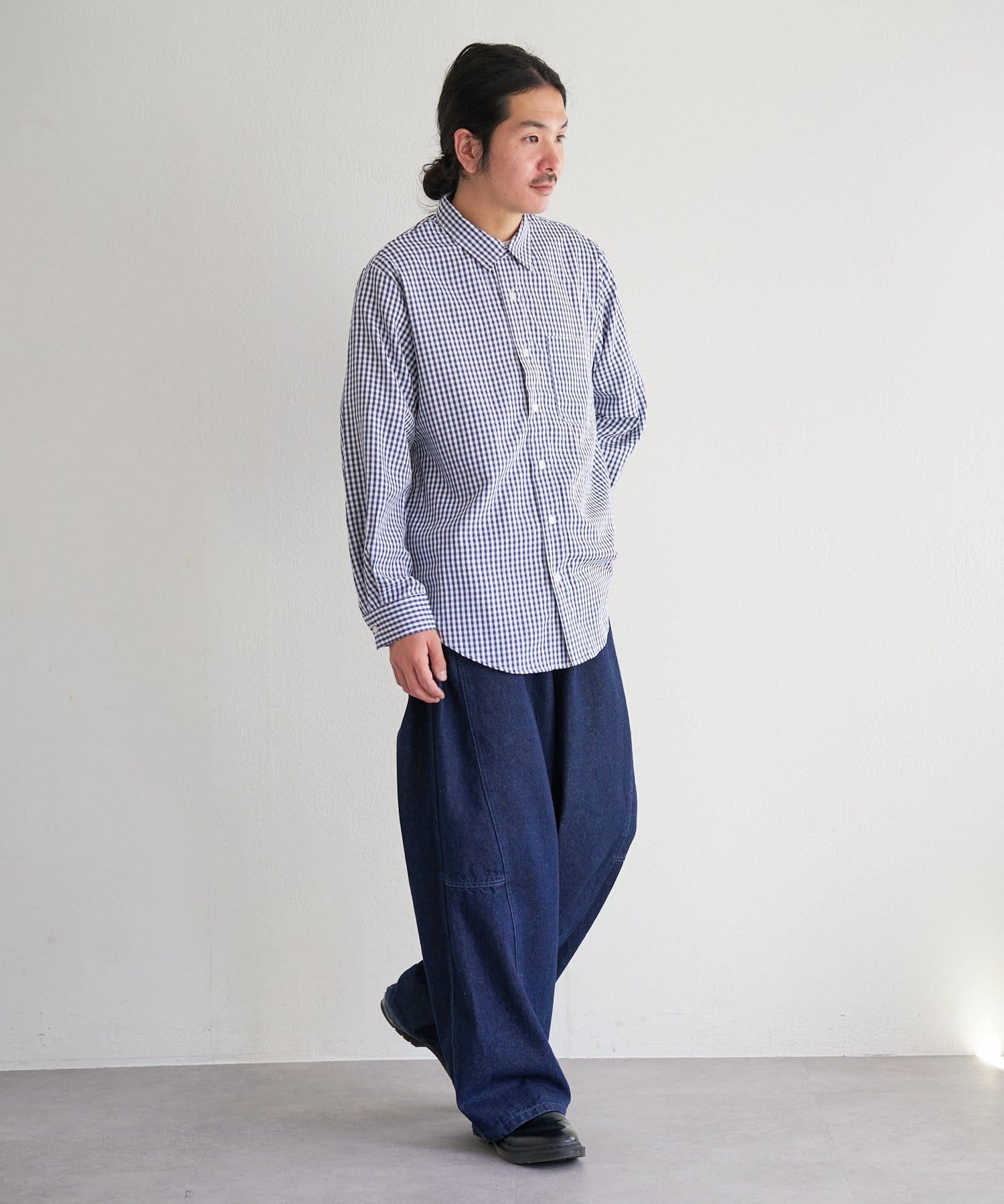 裾はラウンドカット仕様で、タックイン・アウトどちらでもバランス良く決まります。