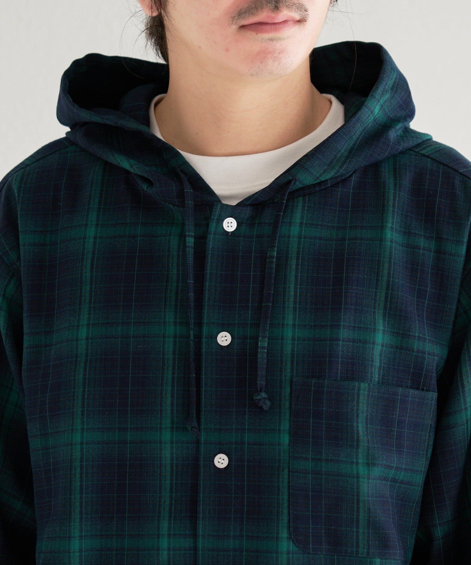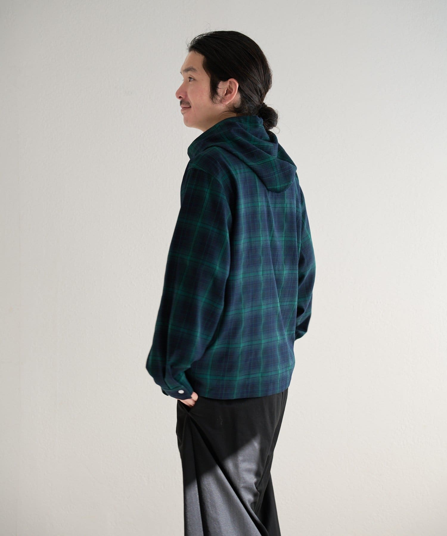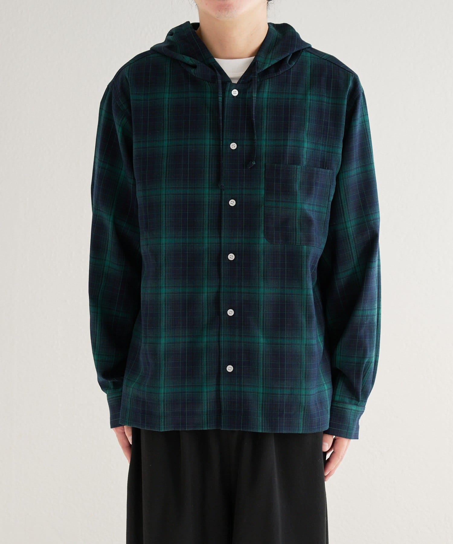 【ユニセックス】BM チェックフードシャツ
