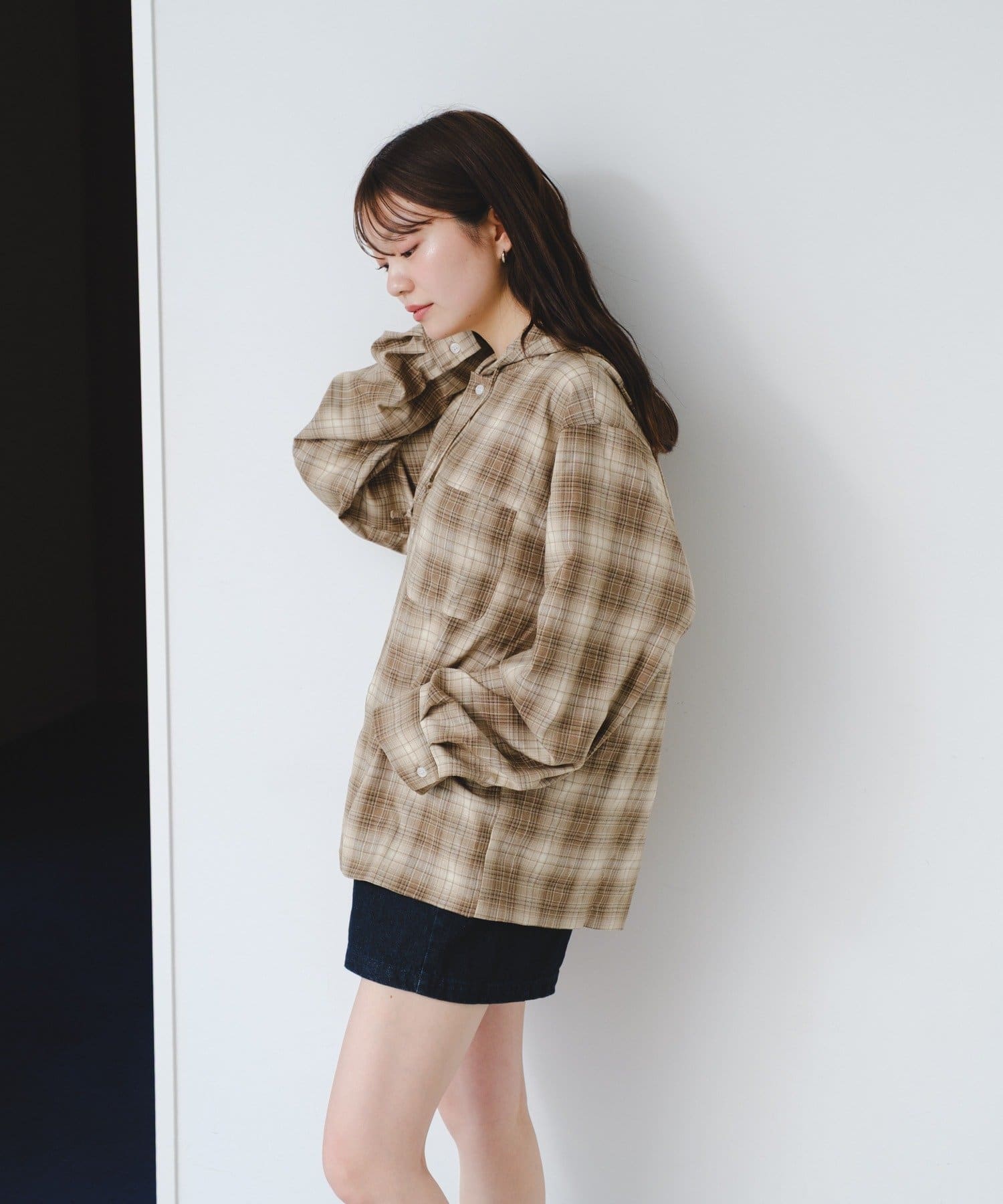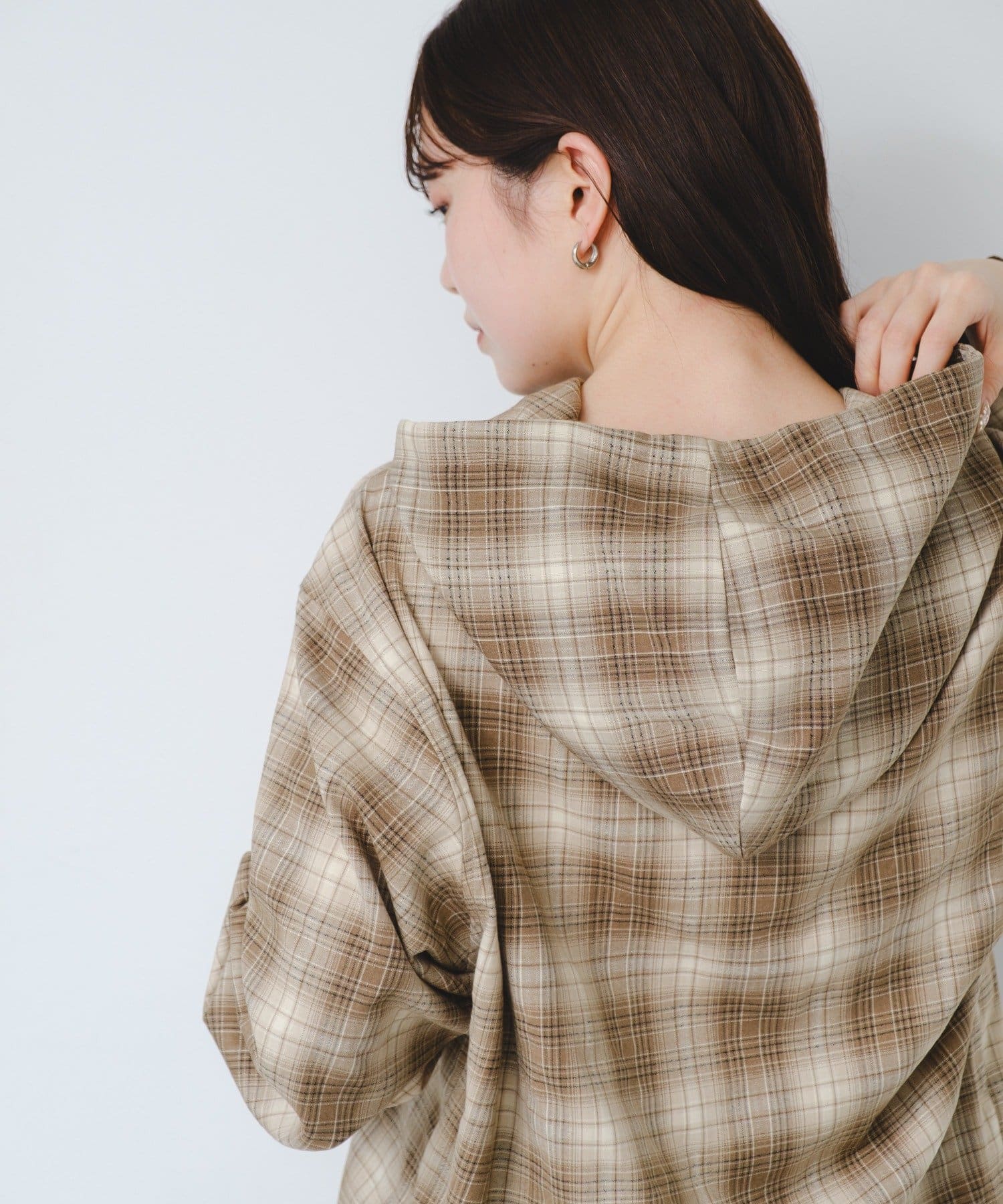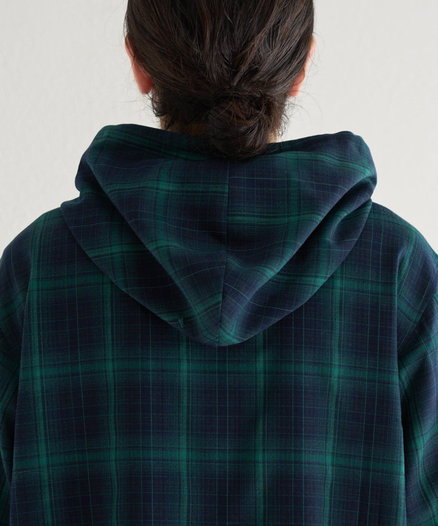 カジュアルなチェック柄にフードをプラスすることで、程よくストリート感のあるこなれた印象に。