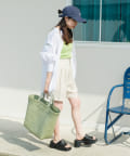 ワンピースやTシャツにワンポイントとして大きいバッグを持つことで