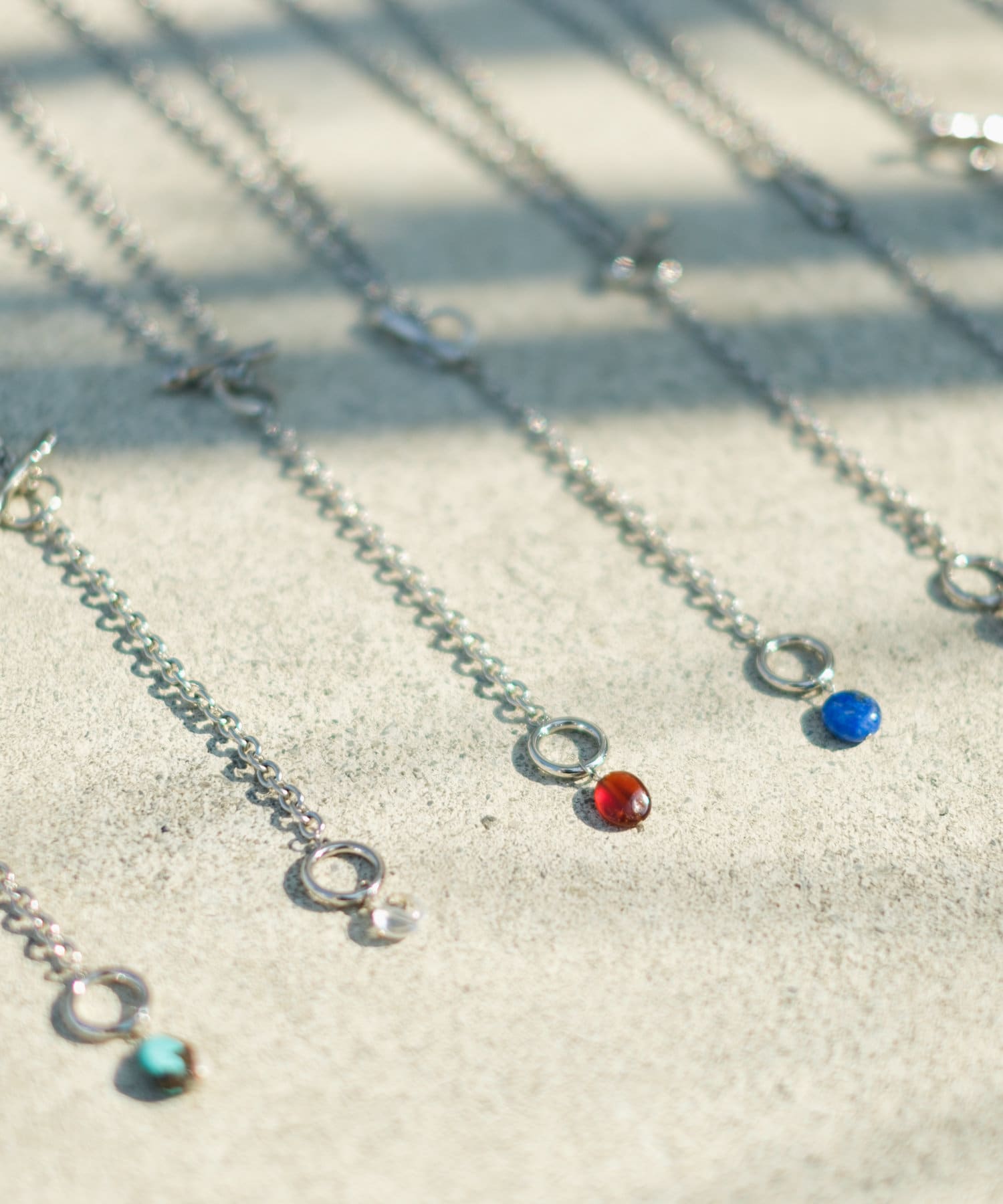 誕生月の天然石を使用したチェーンネックレス。