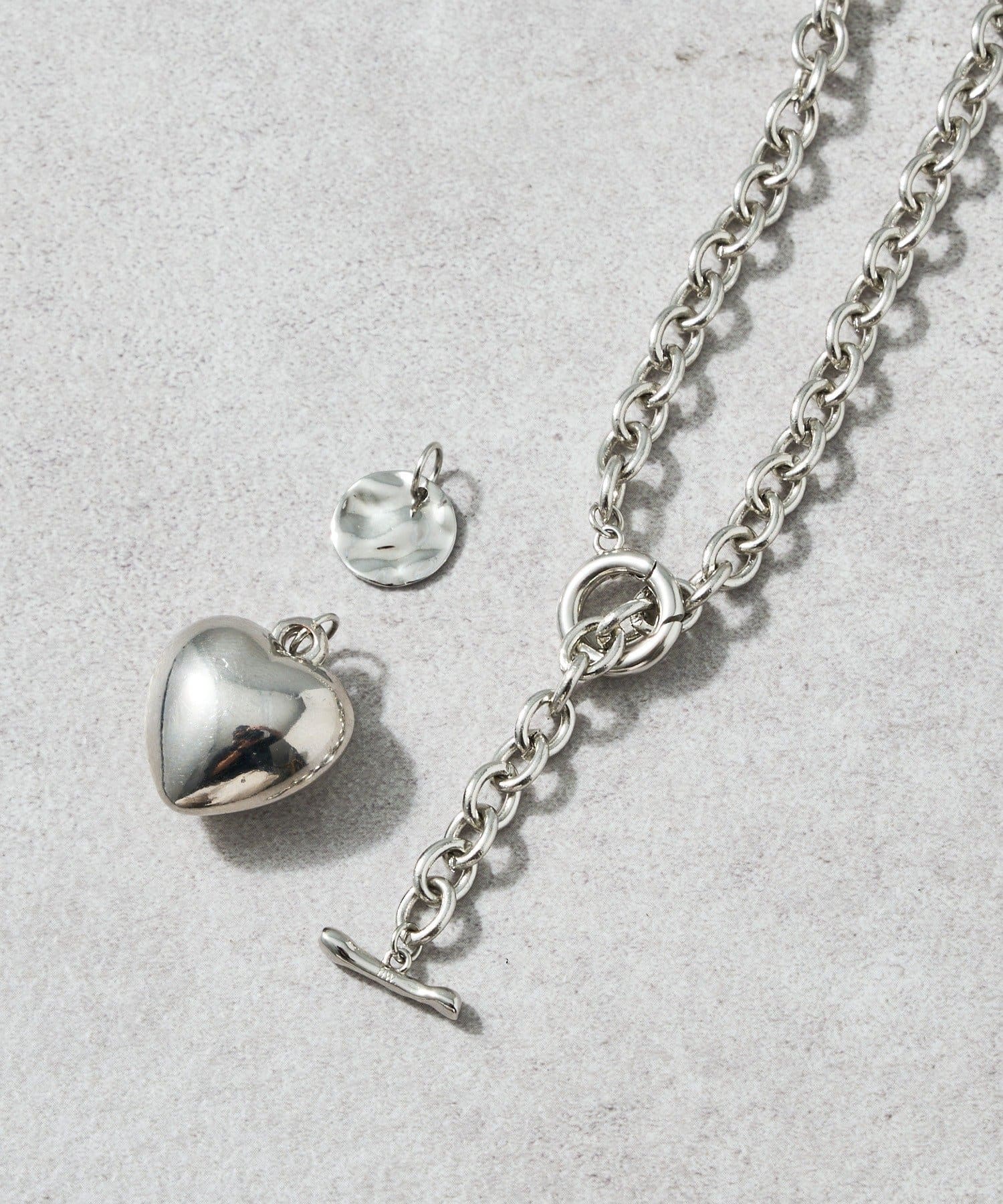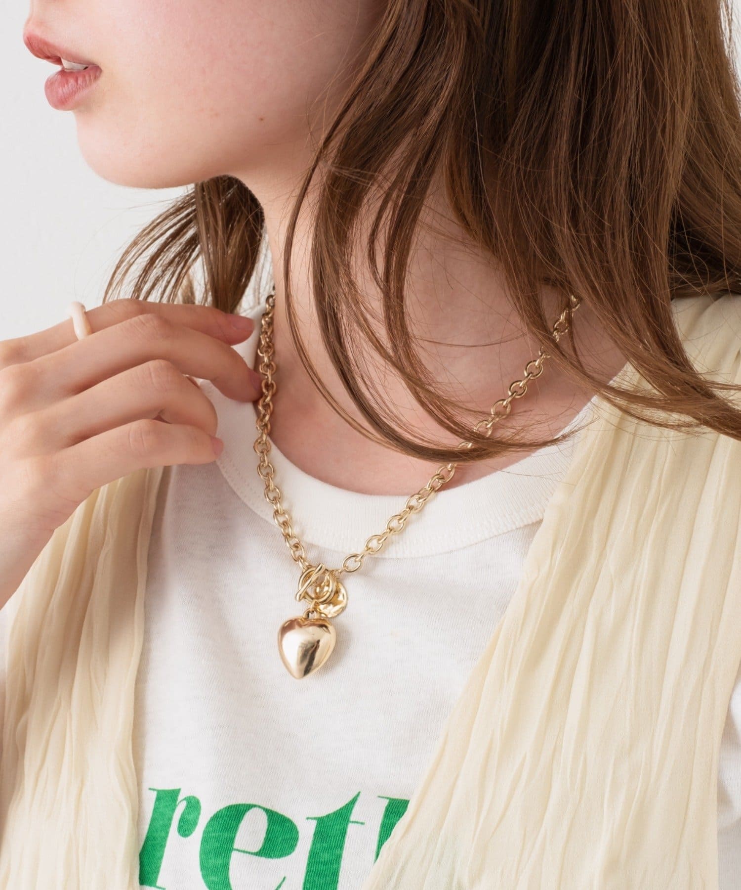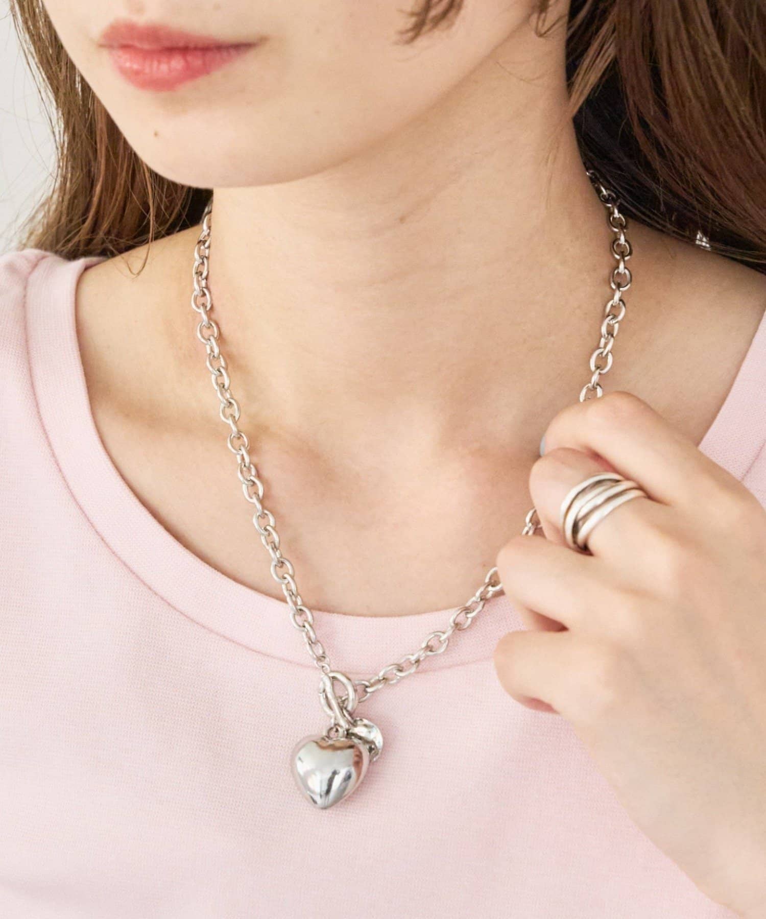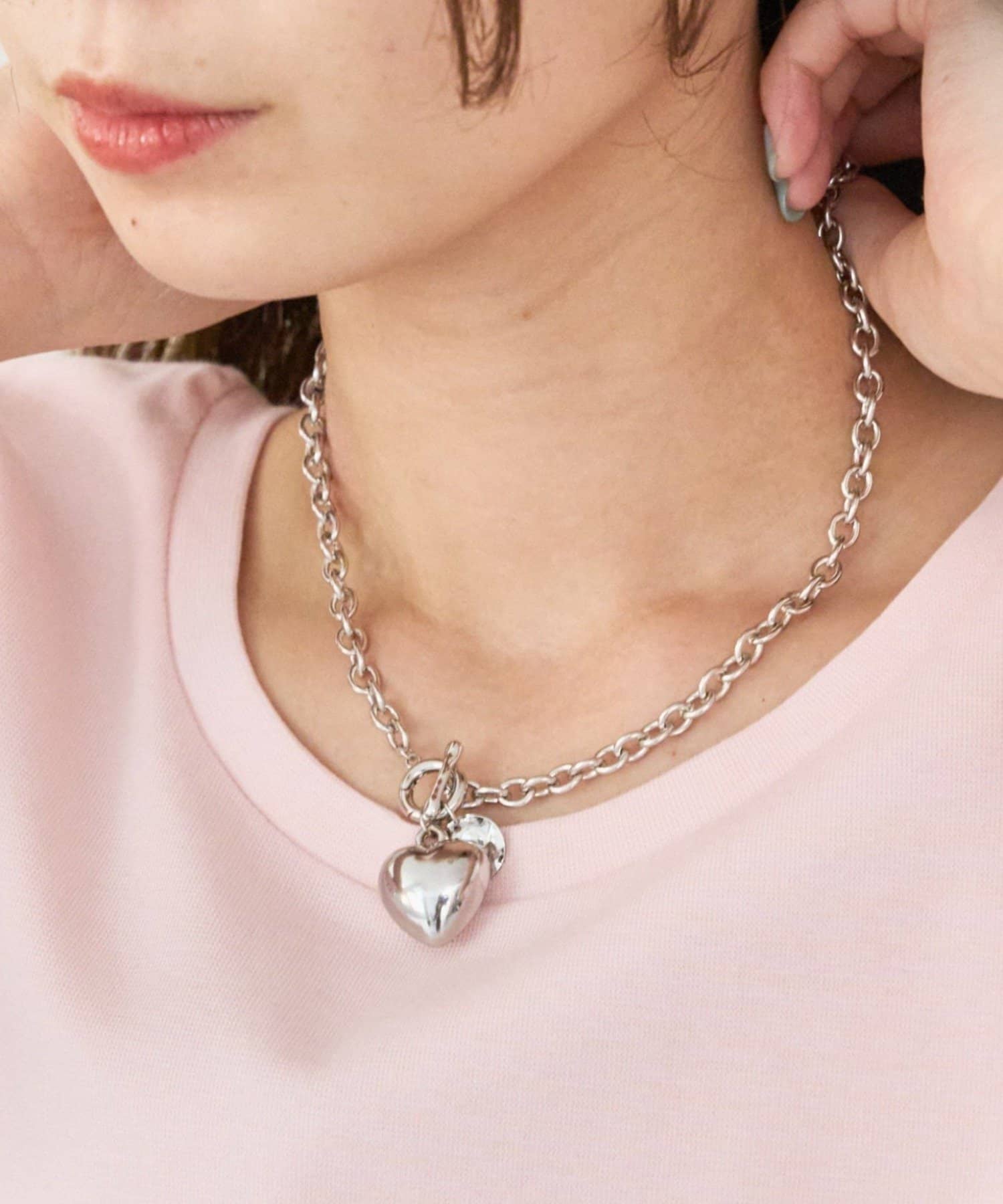 存在感のあるハートモチーフがポイントになるチェーンネックレス。