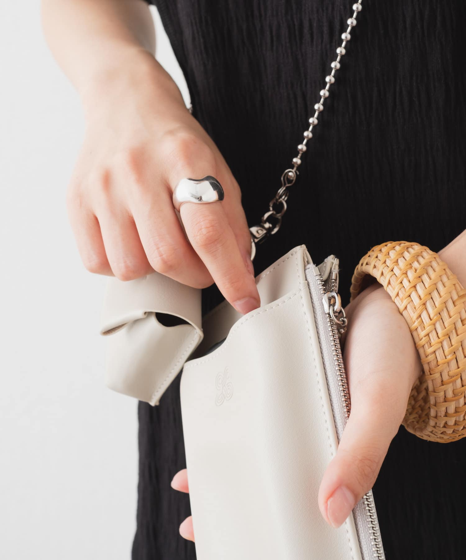ショルダー部分がボールチェーンになっていて華奢なさり気ないデザイン。