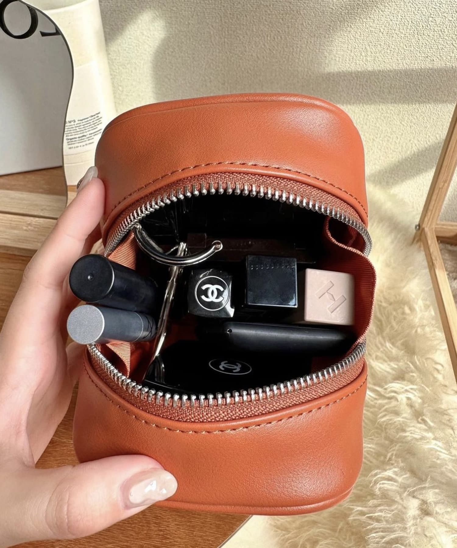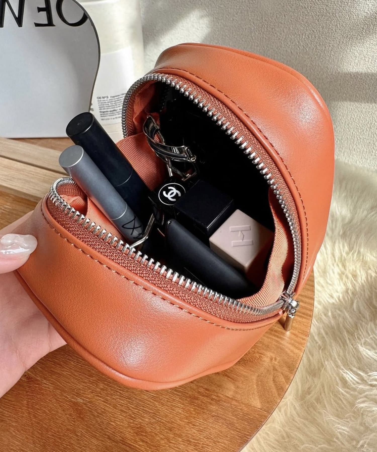 まるっとしたフォルムが可愛らしいポーチ。