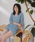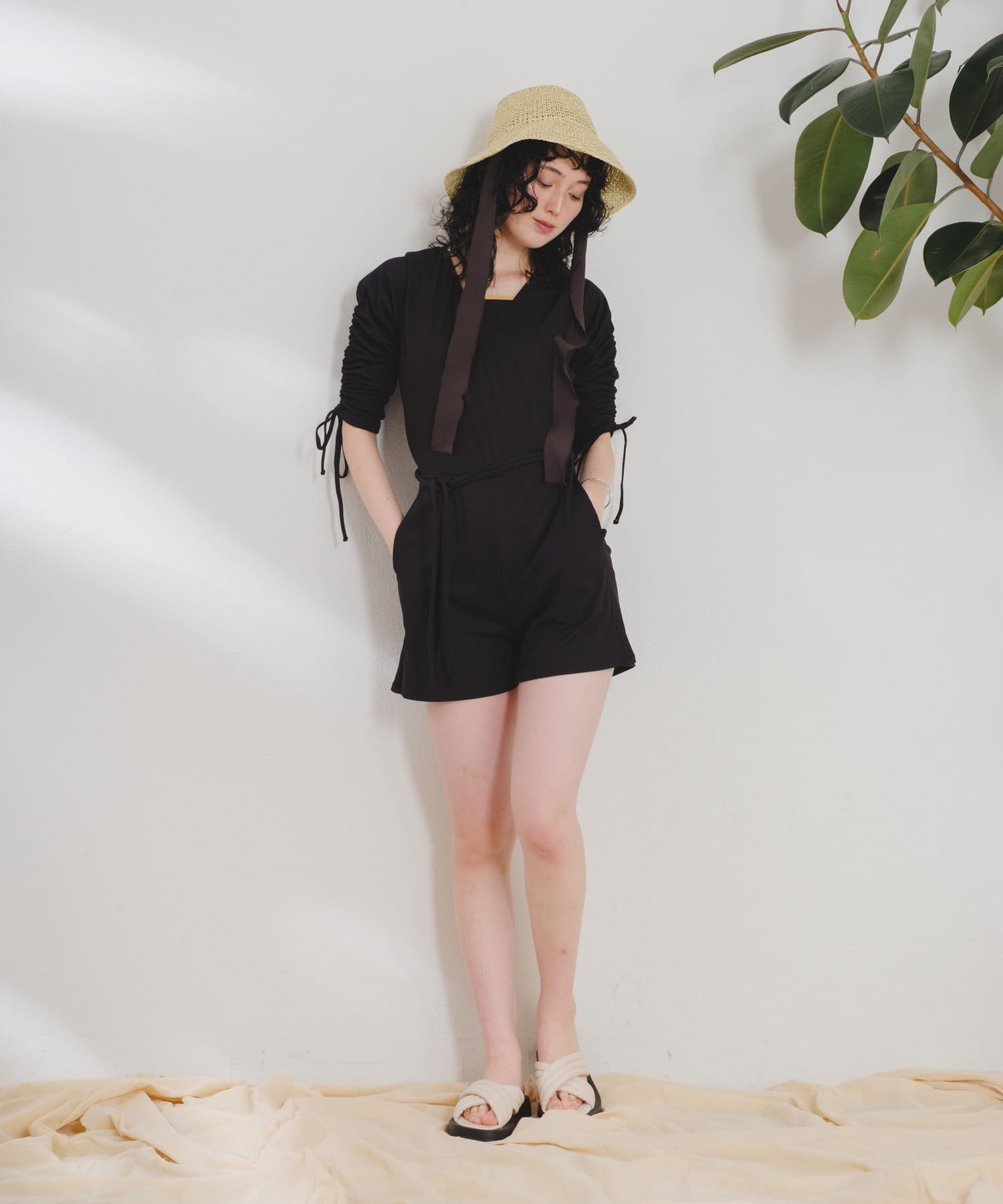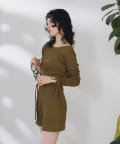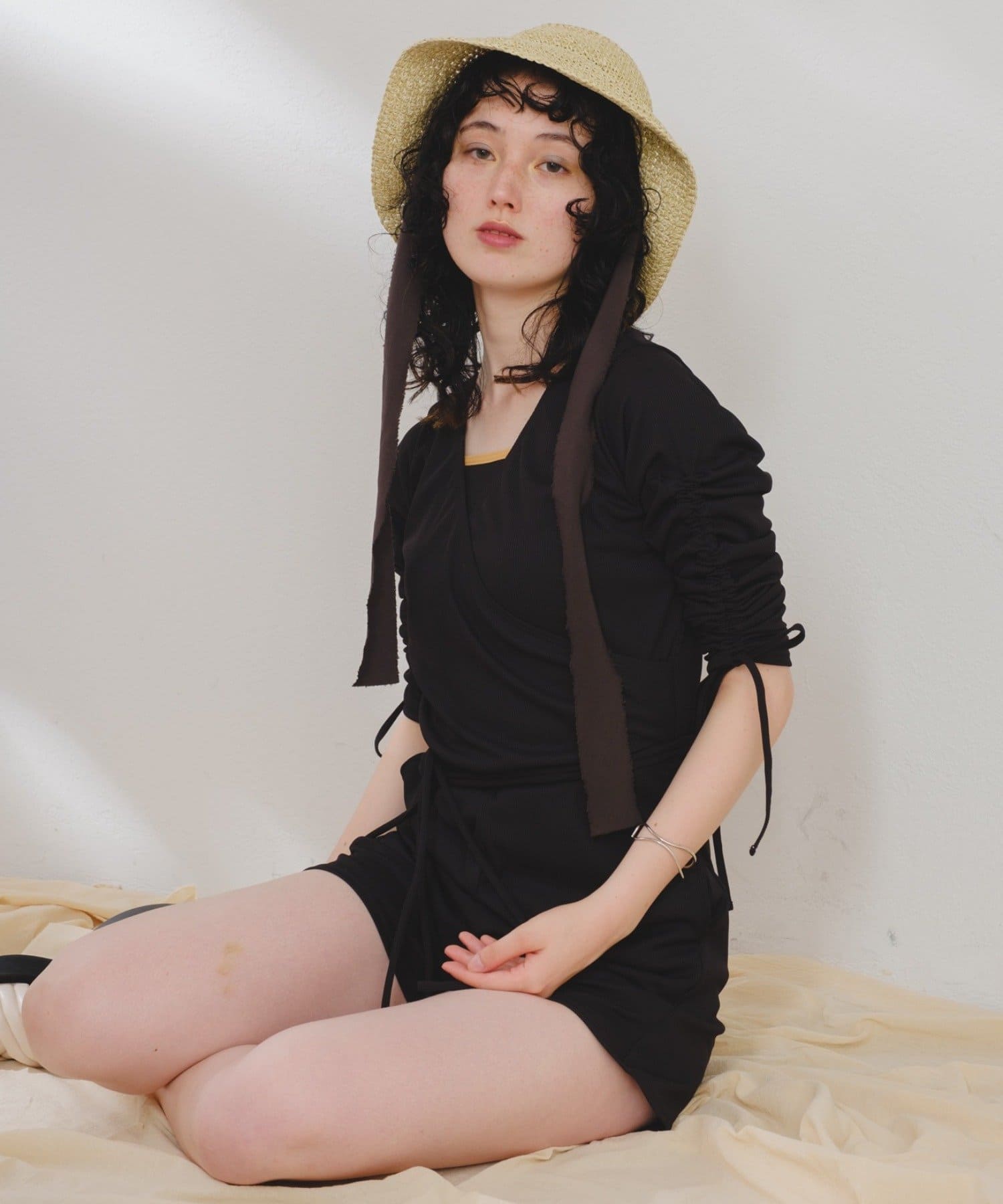 ウエストにも紐が付いており、ベルトのように結べばスタイルアップを叶えます。