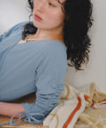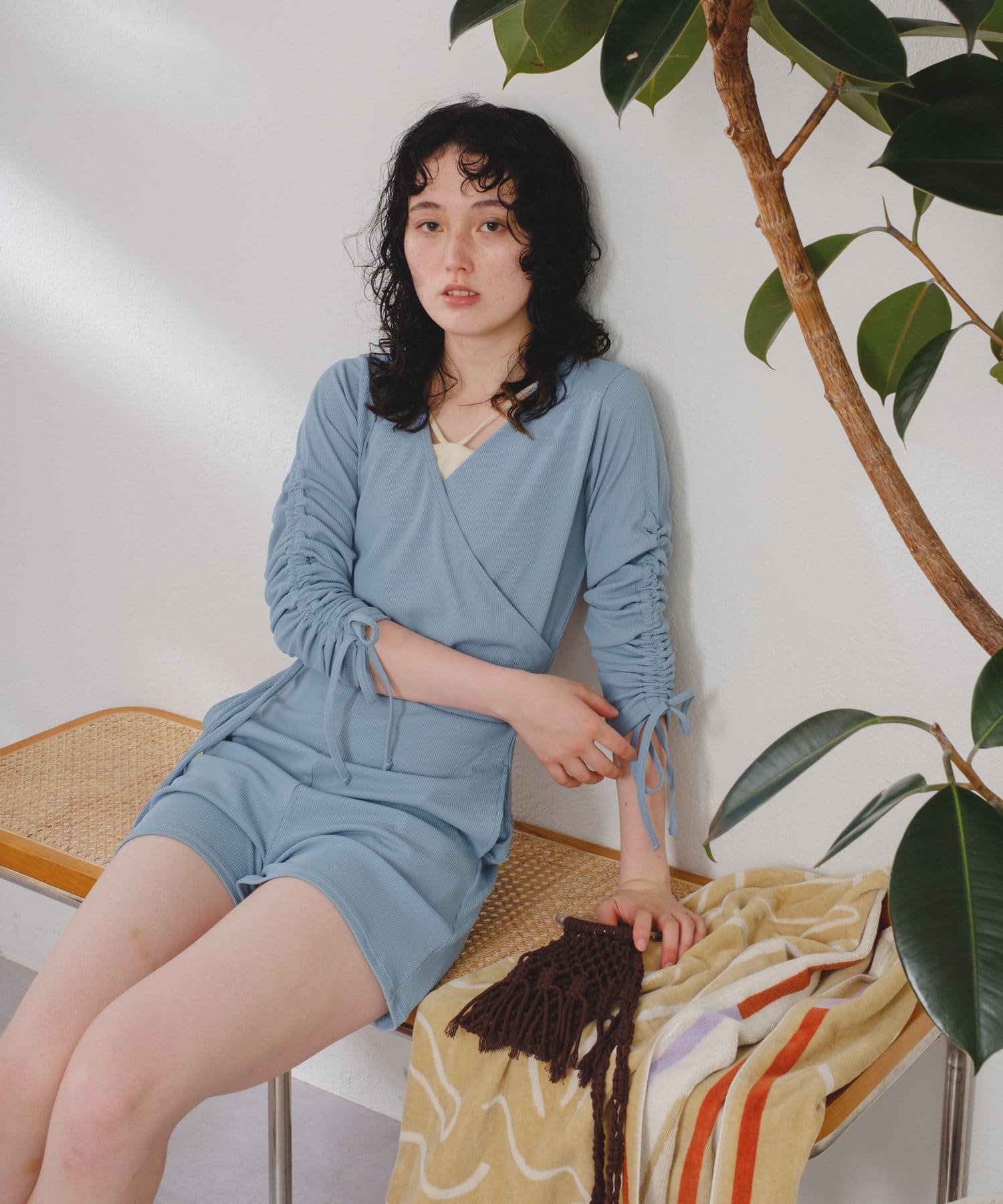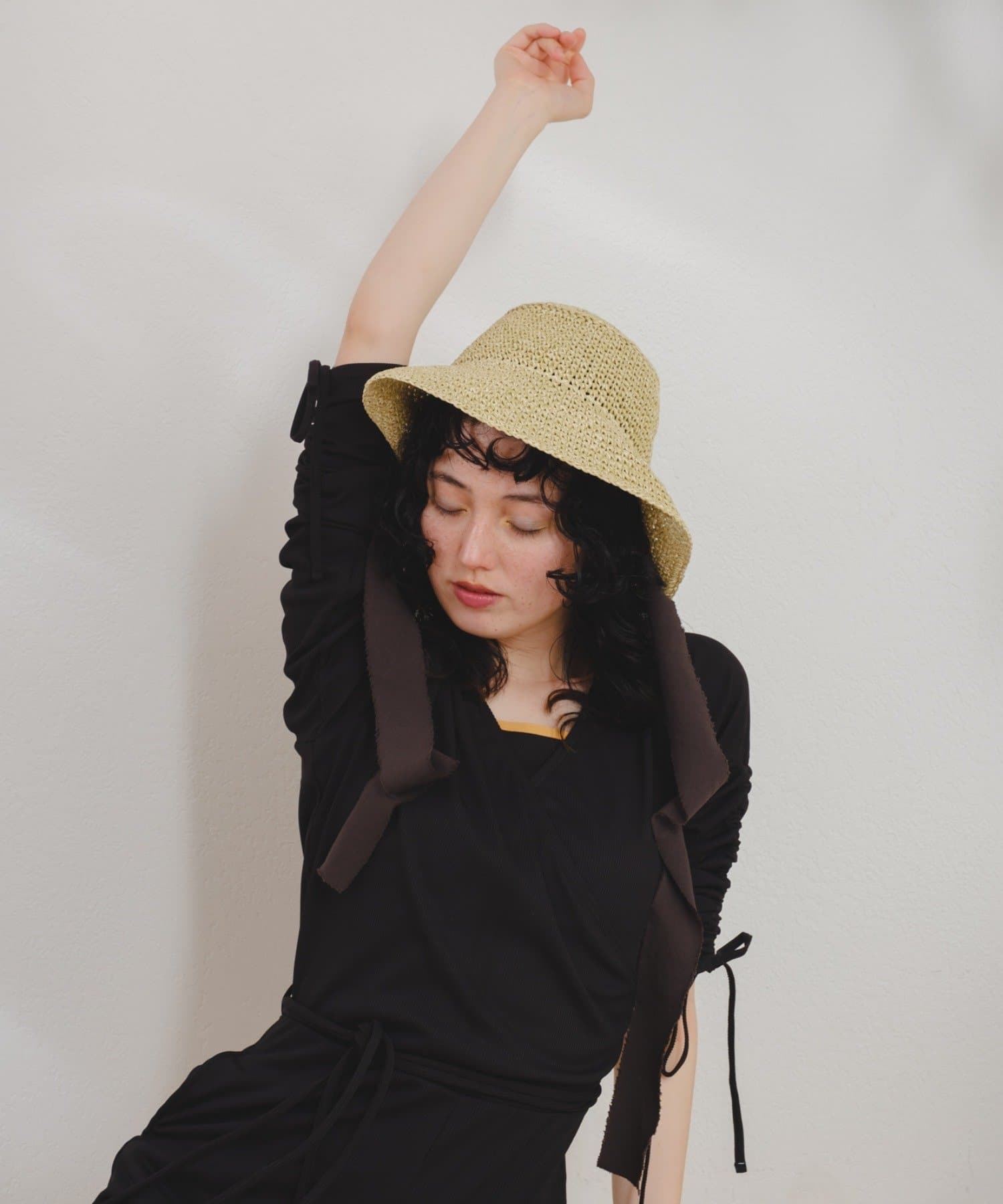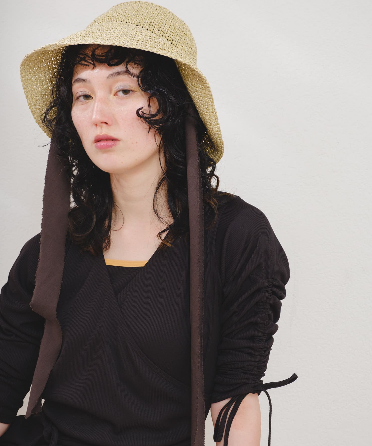 紐でシャーリング具合をお好みで変えていただけるトレンドなデザインです。