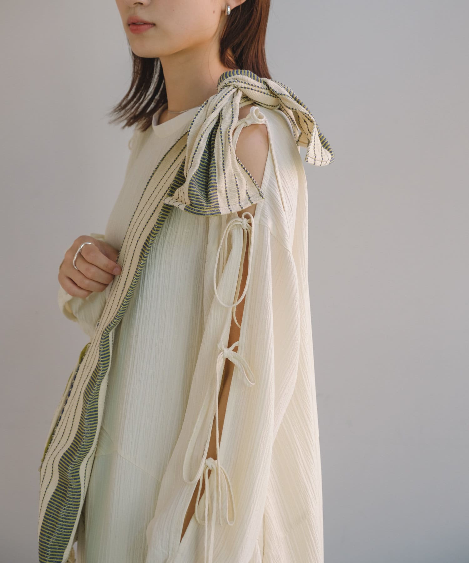 リボンの結ぶ長さでショルダー調節ができるカレンバッグ。