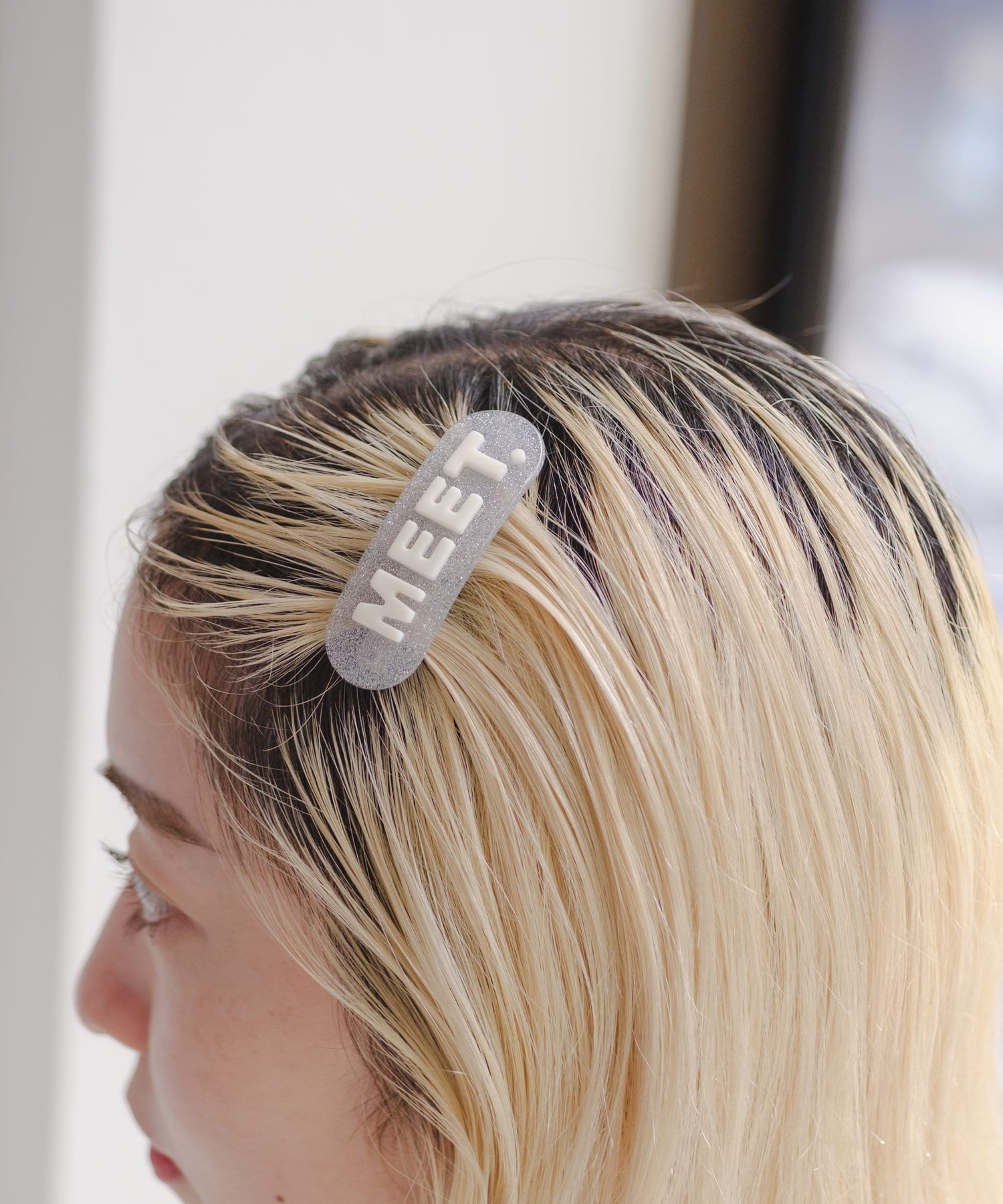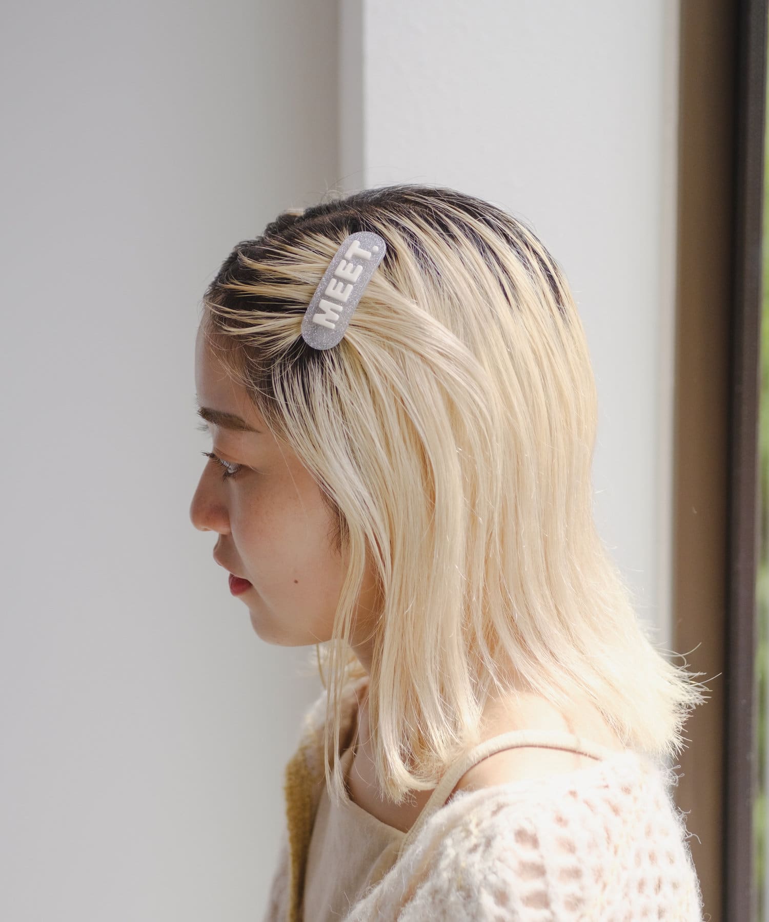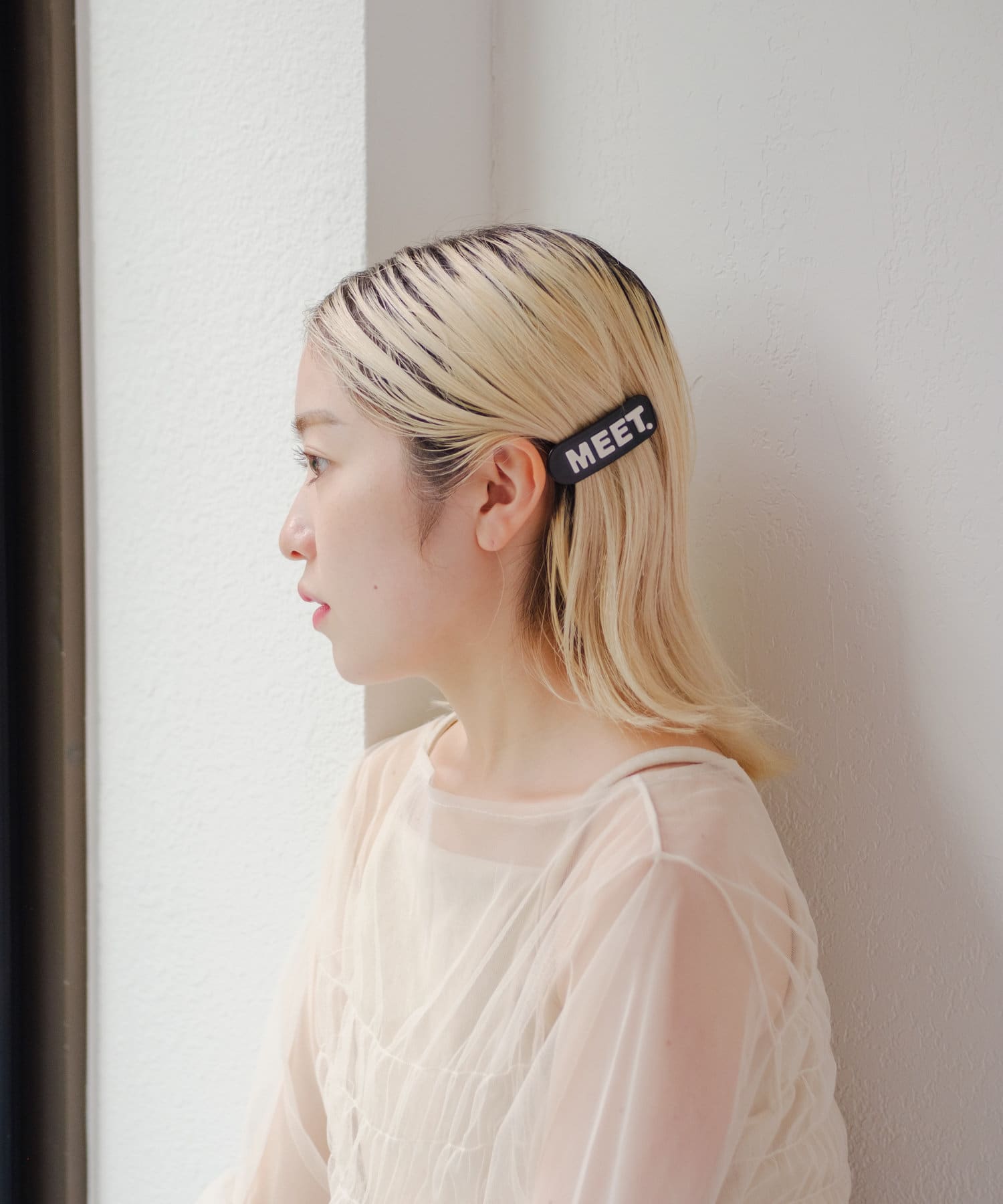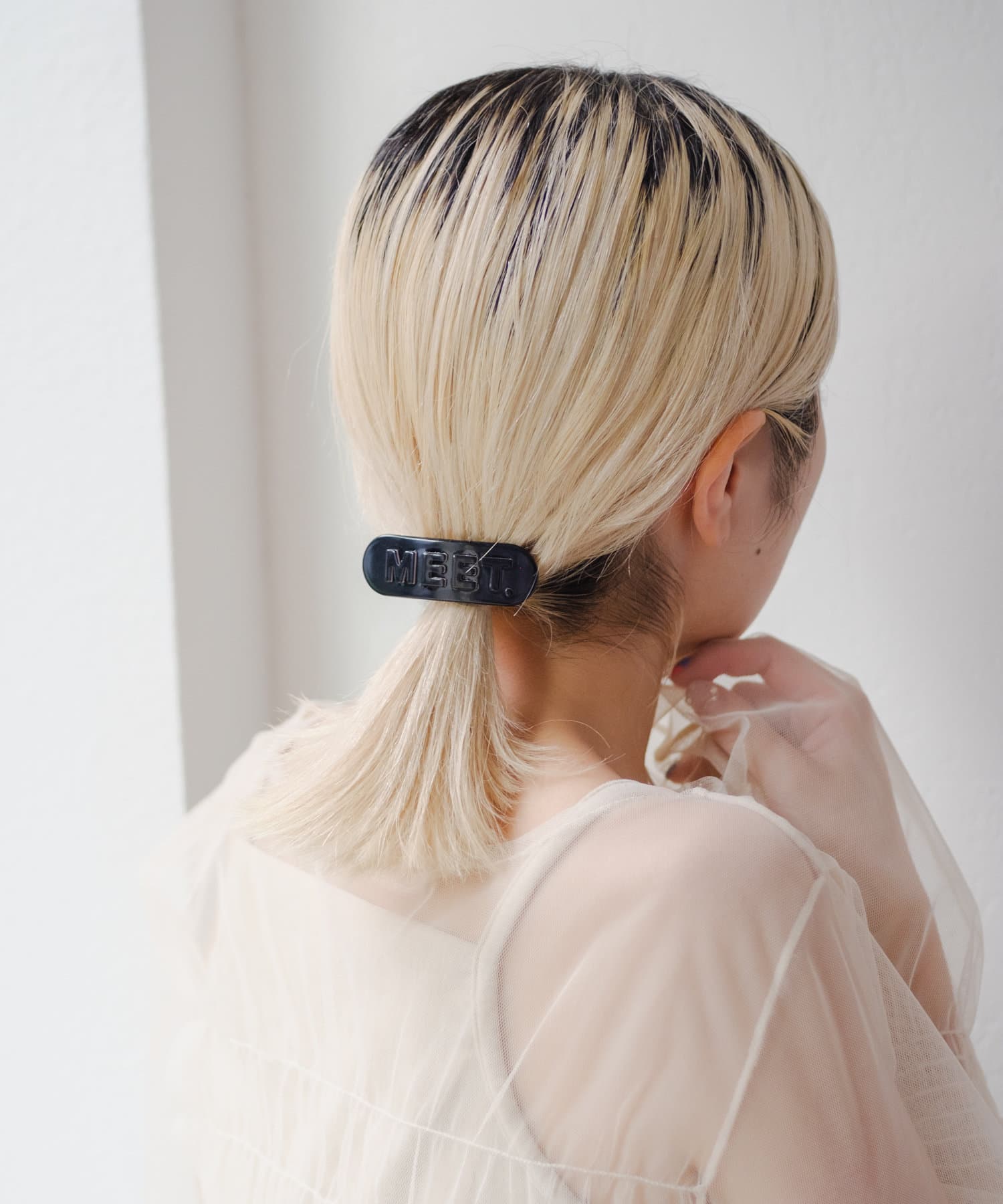 "MEET"ロゴが目を惹くヘアバレッタの登場。