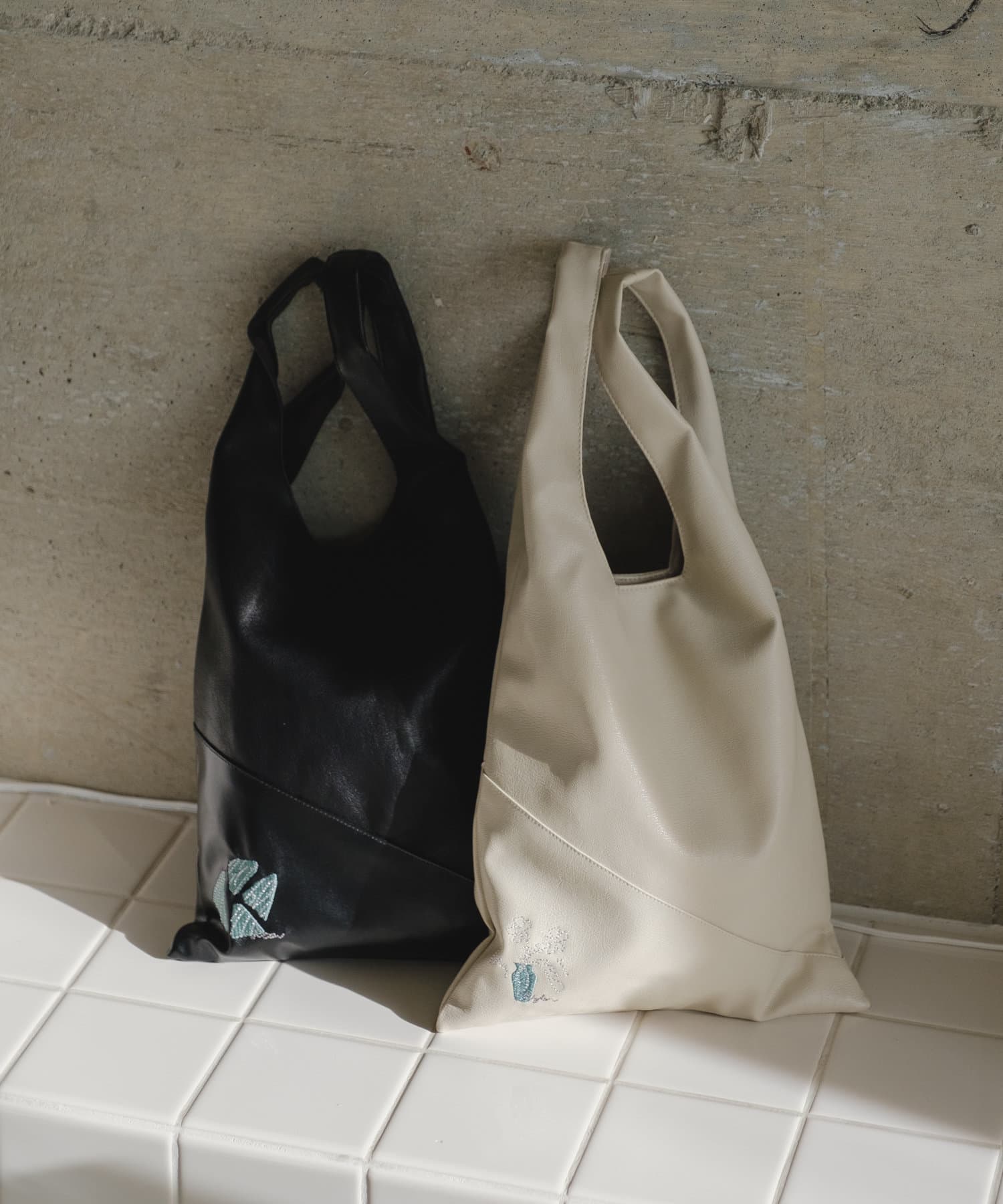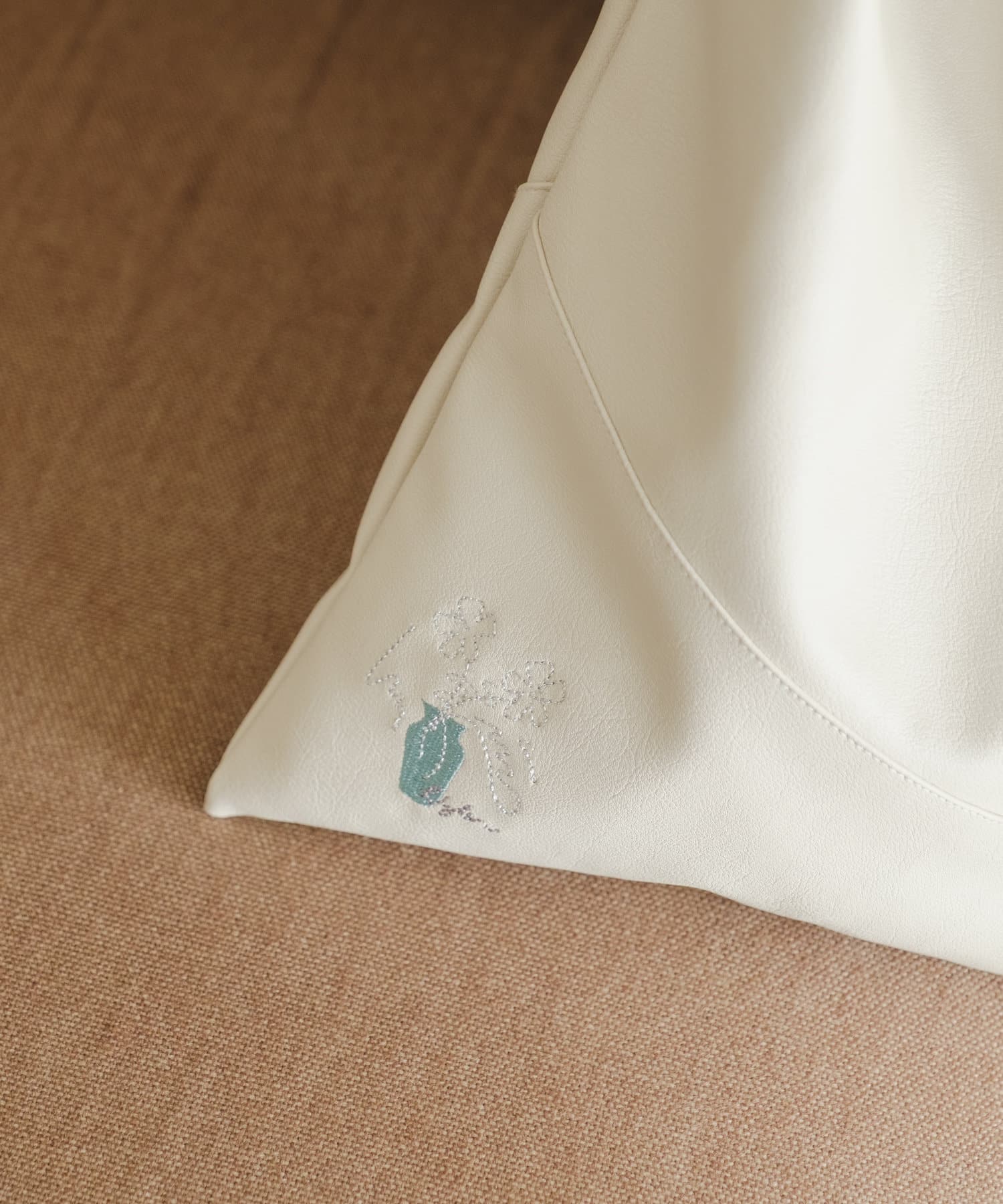 ワンポイント刺繍が目を惹くハンドバッグ。