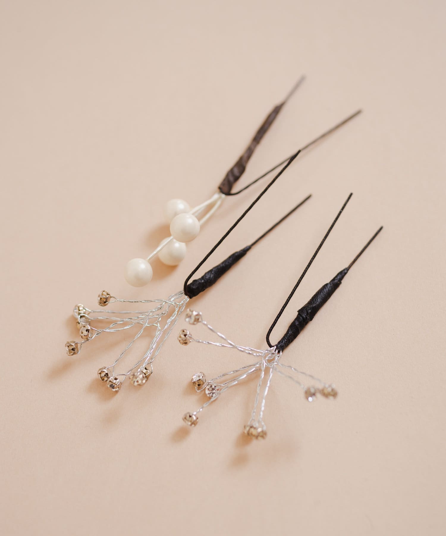 【CHACO×Kastane】フラワー髪飾り ホワイトシルバーSET
