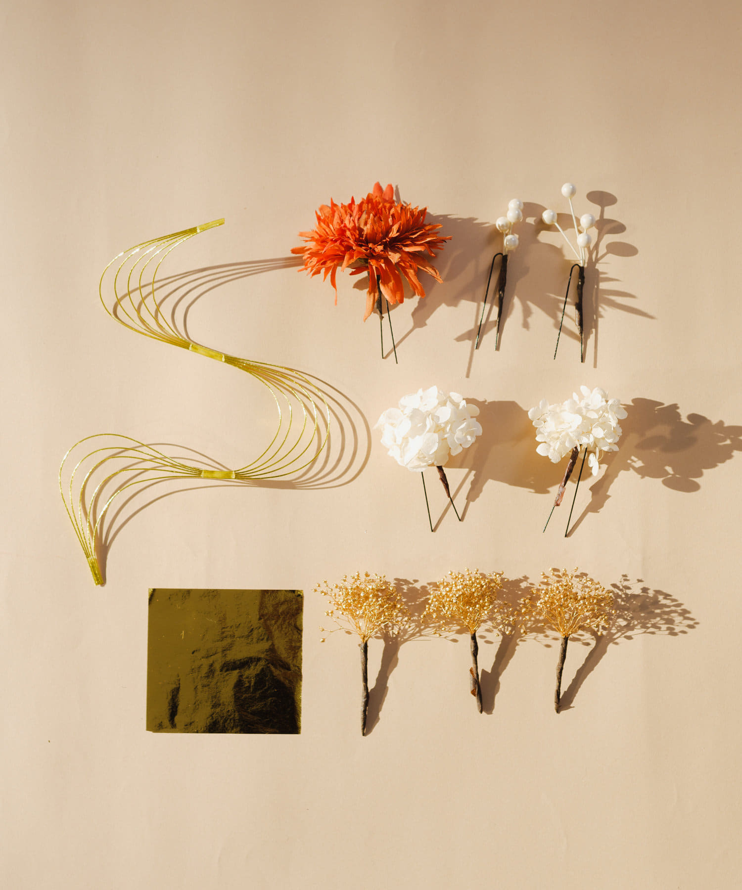【CHACO×Kastane】フラワー髪飾り オレンジゴールドSET