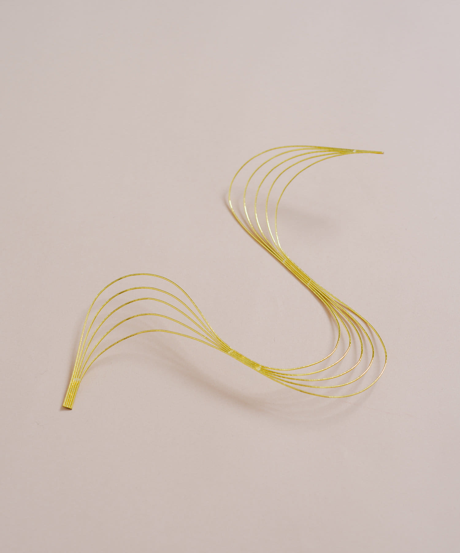 曲がり水引をピンで固定し、金箔を小さくちぎってセットできます。