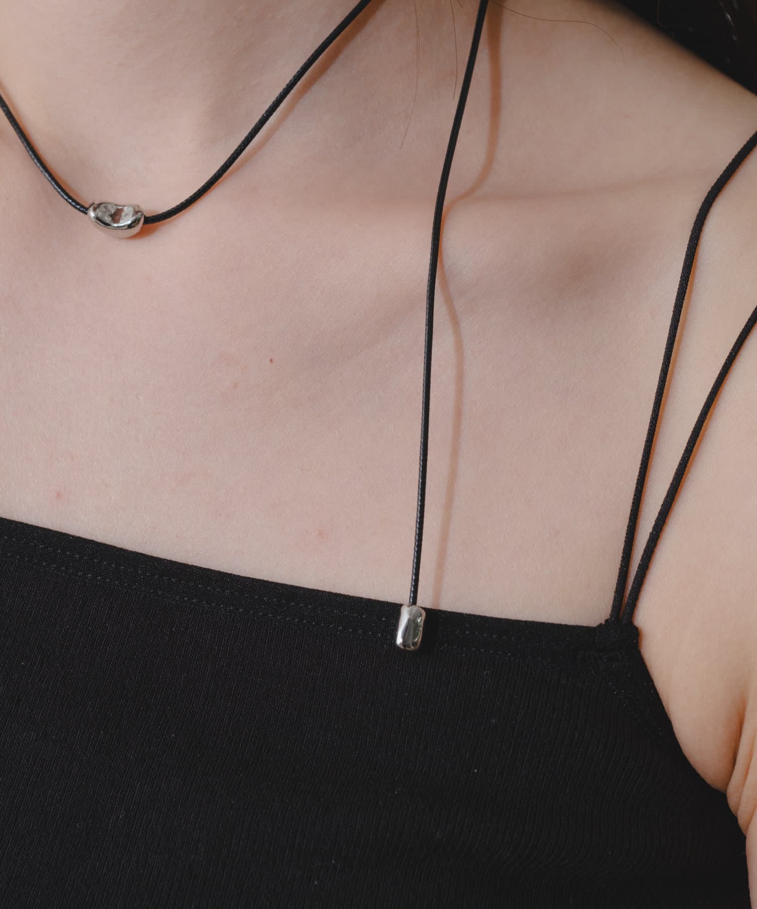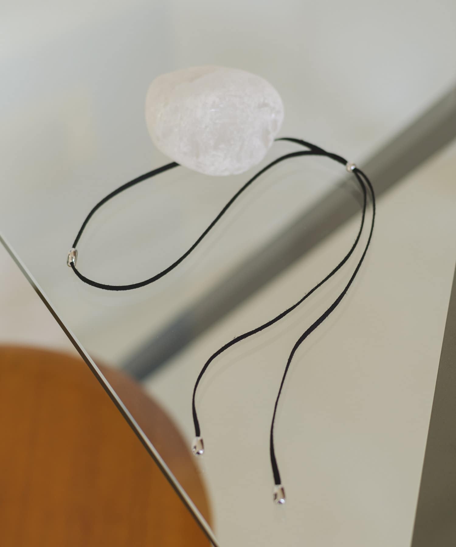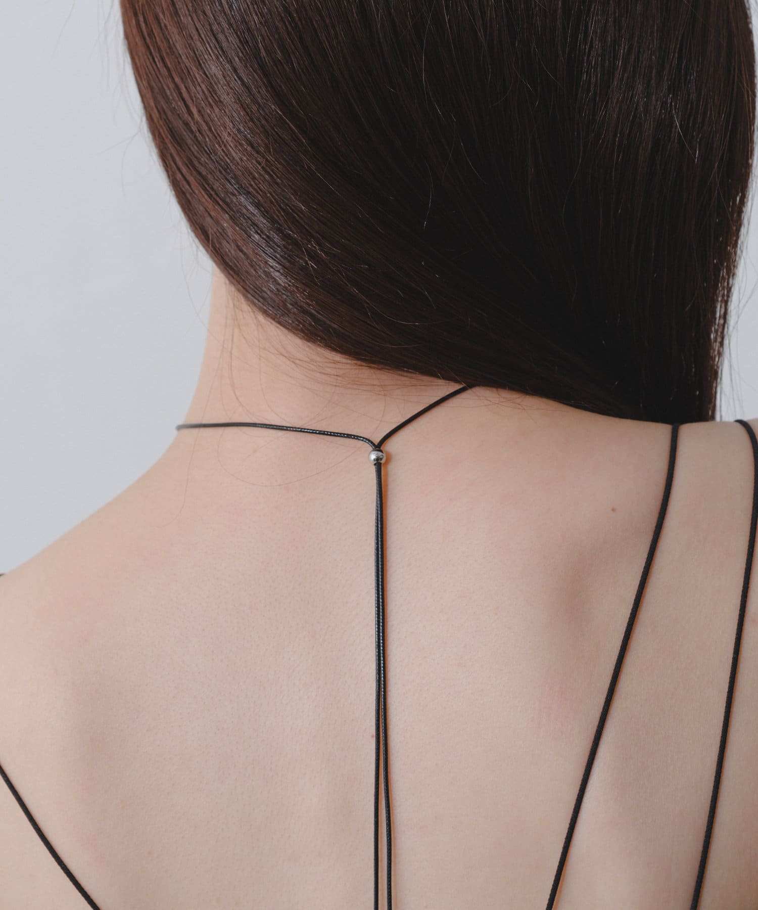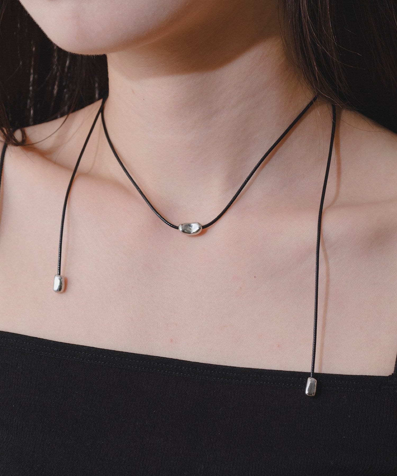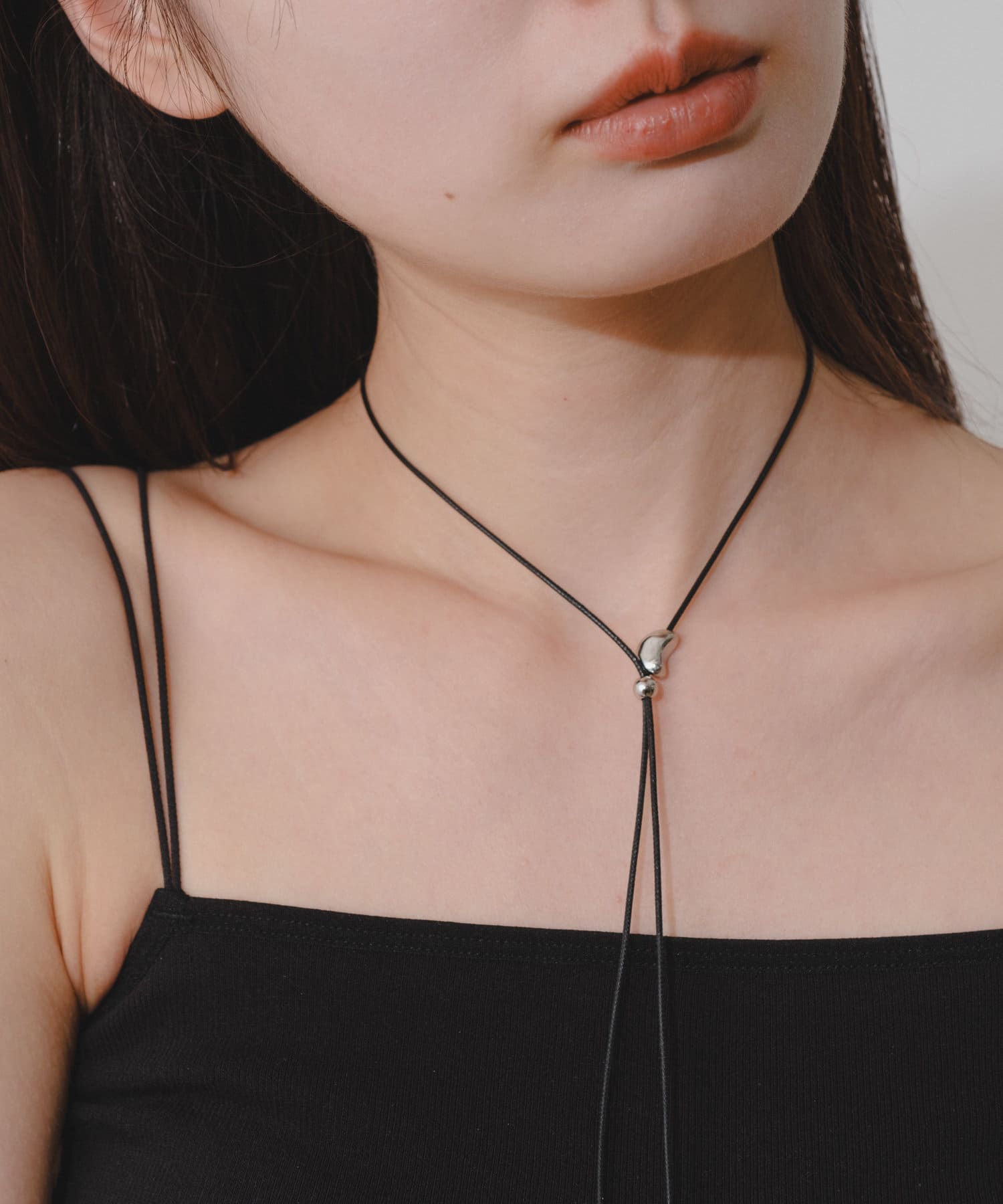 コードを絞る事で調節が可能なので、モチーフの位置やアレンジが楽しめるマルチウェイデザインチョーカー。