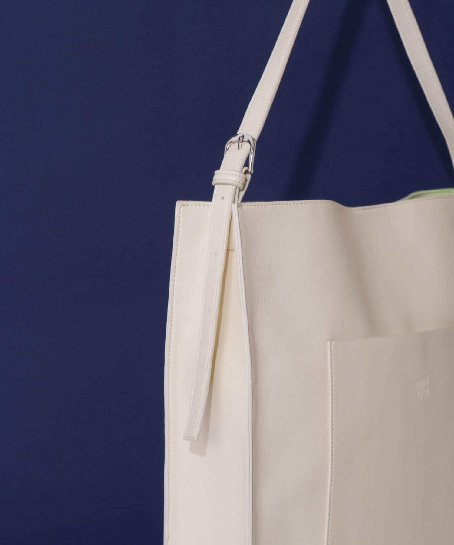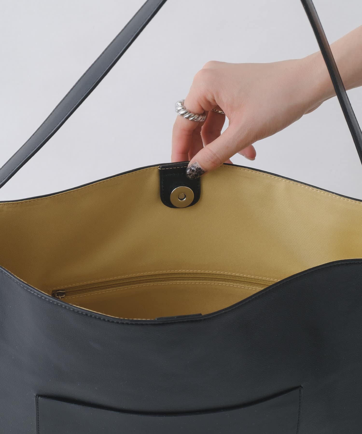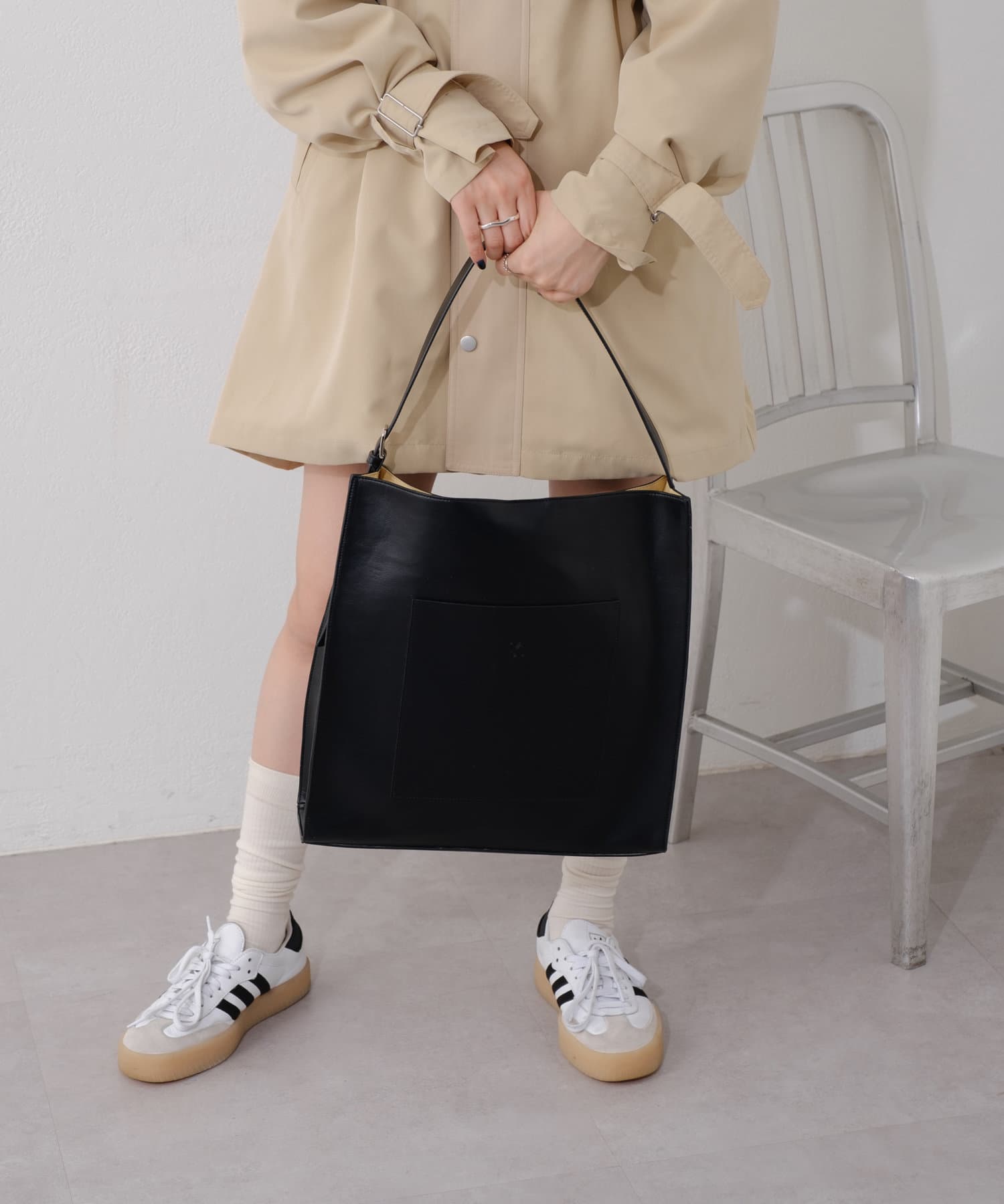 裏地とのバイカラーがアクセントになったトートバッグ。