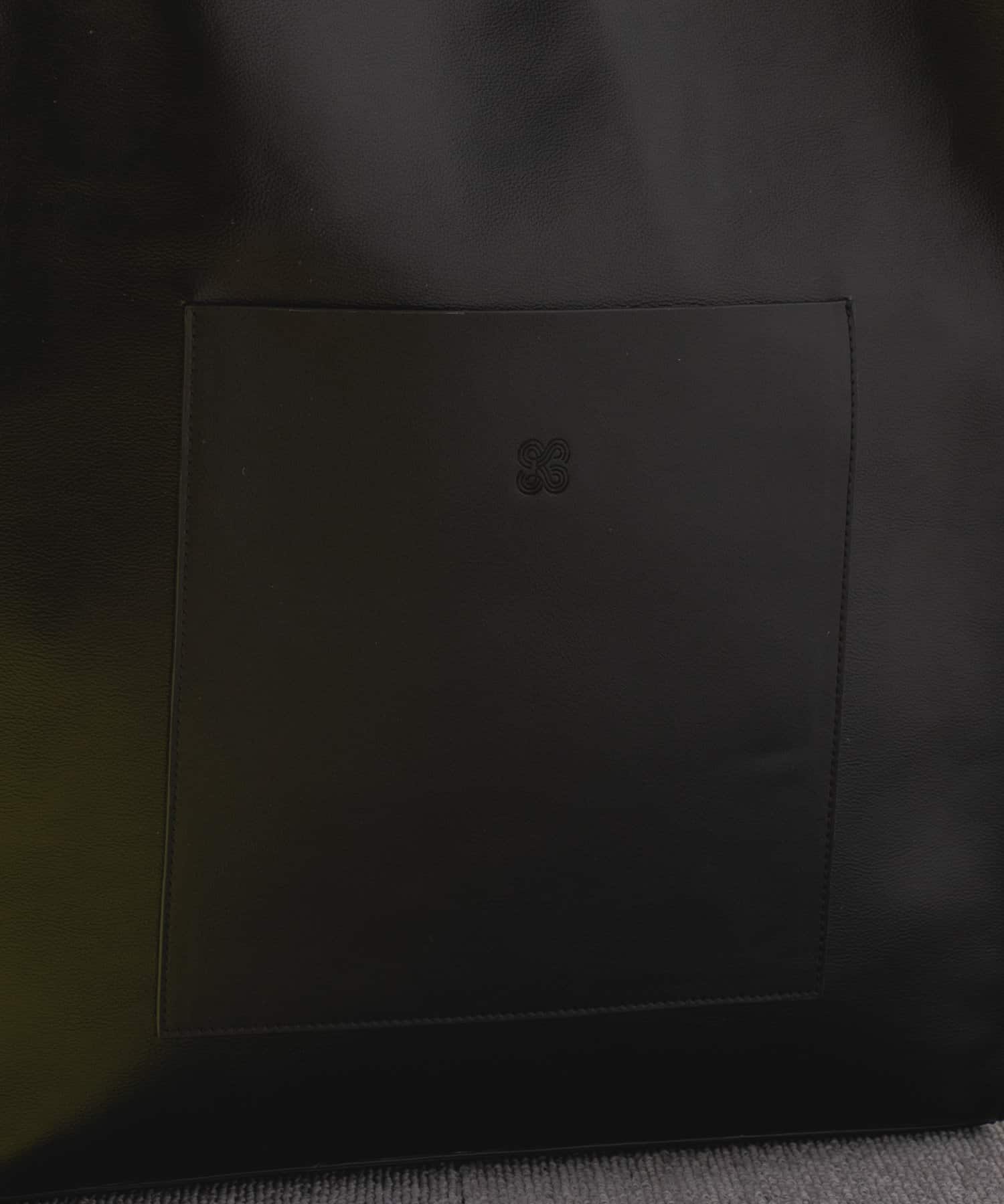 中と外にポケット付きで、外のポケットにはスマホやカードケースをいれるのもおすすめ。
