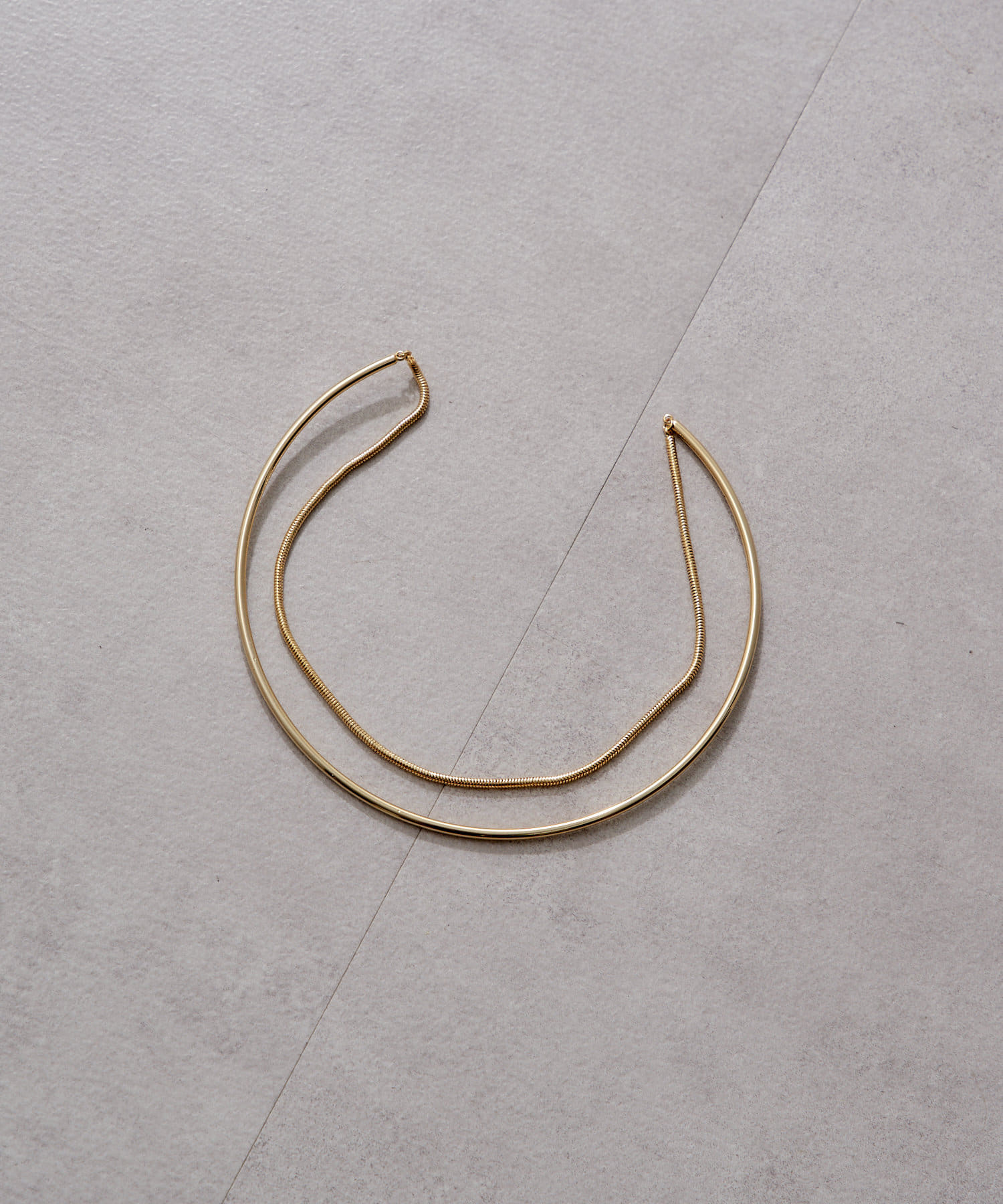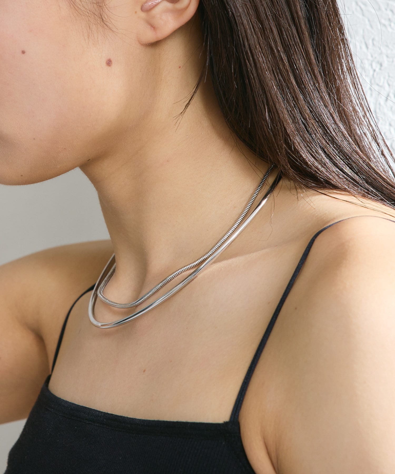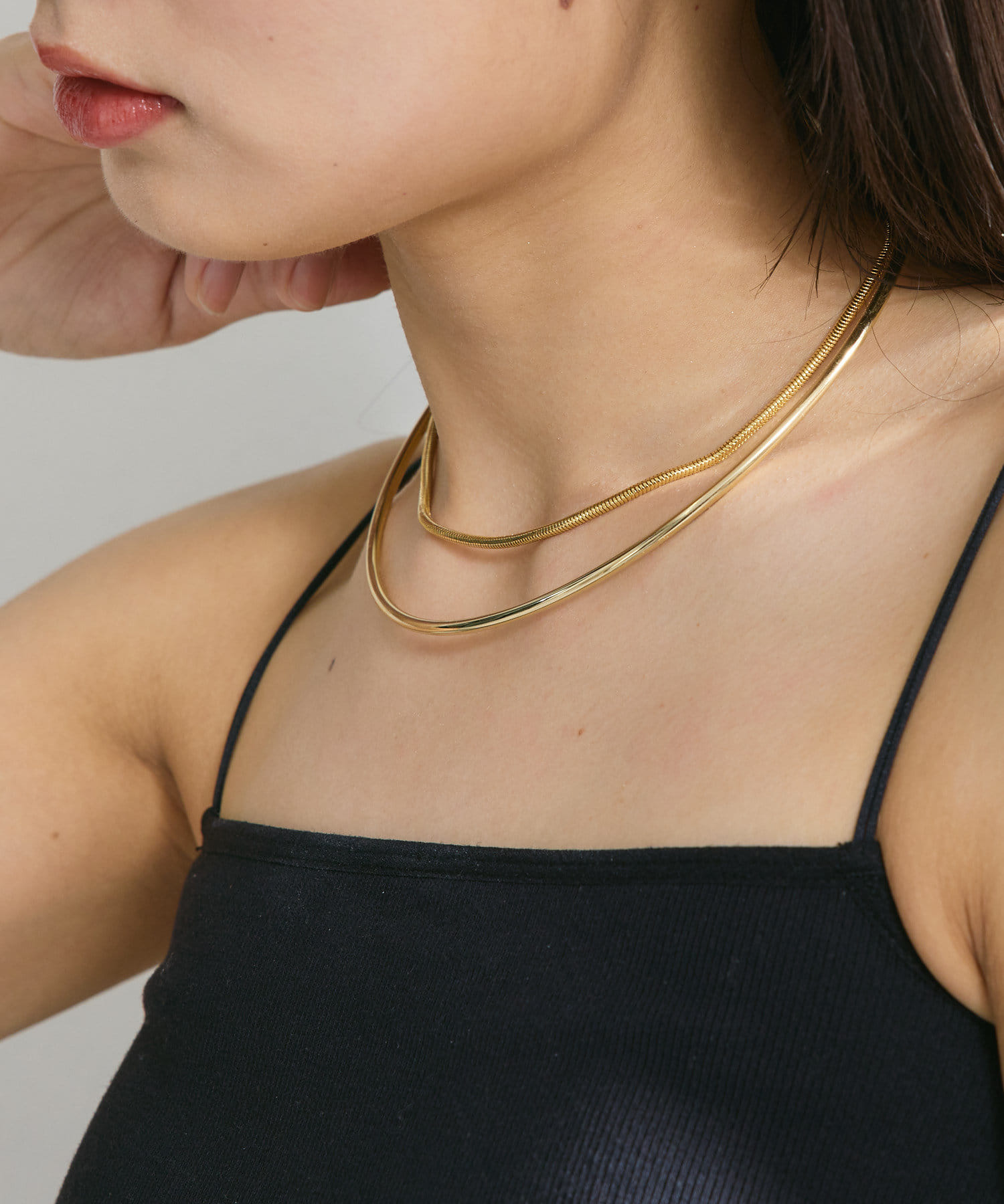 ラウンドにチェーンが組み合わさったレイヤードチョーカー