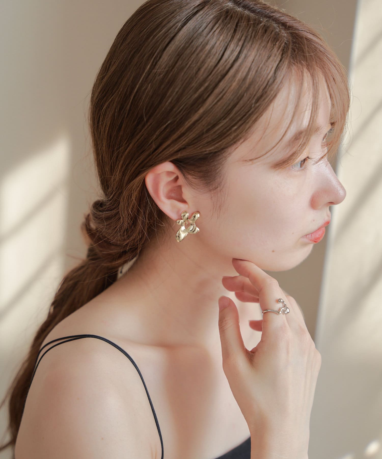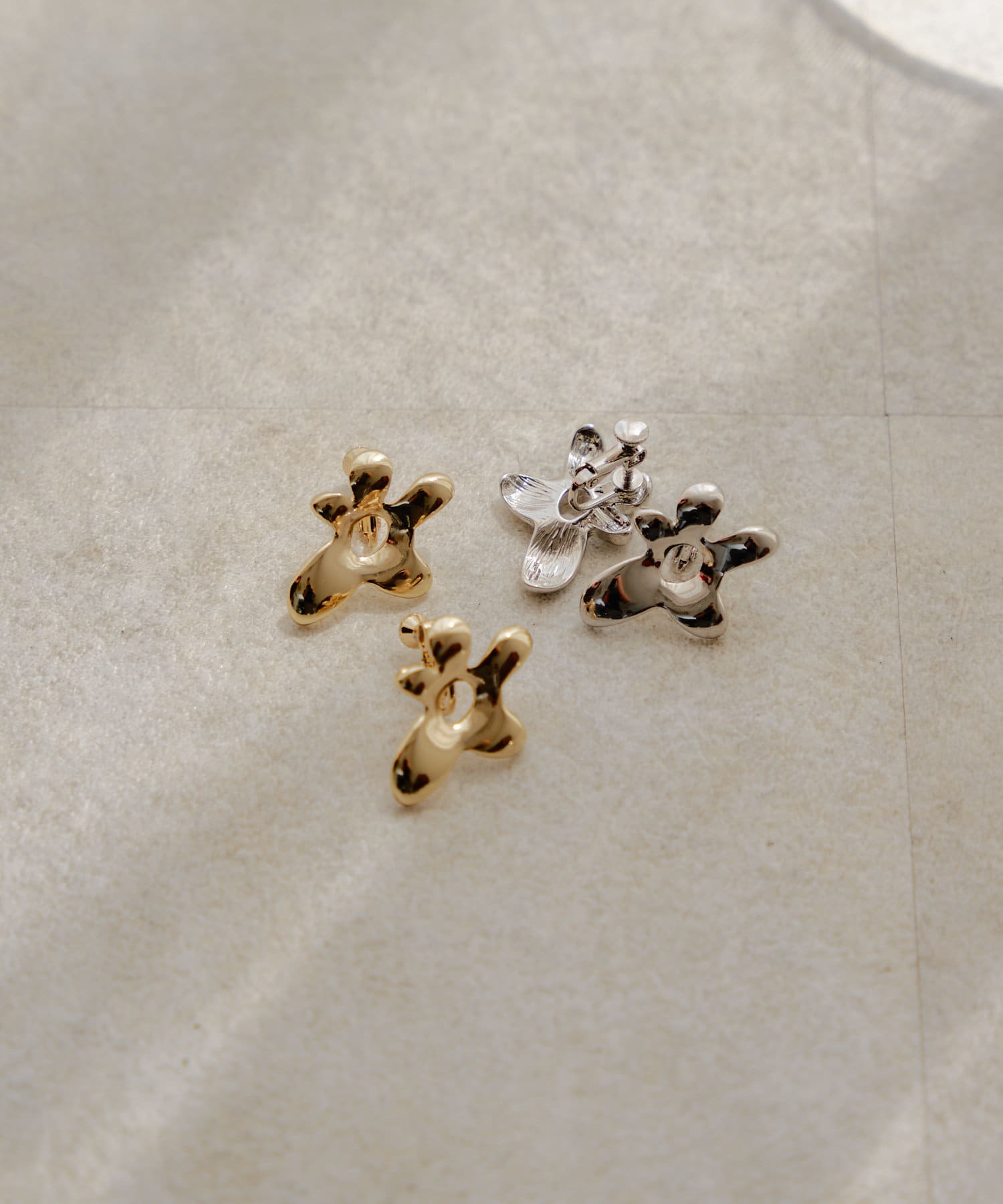 きらりと光沢感のあるフラワーモチーフイヤリング。