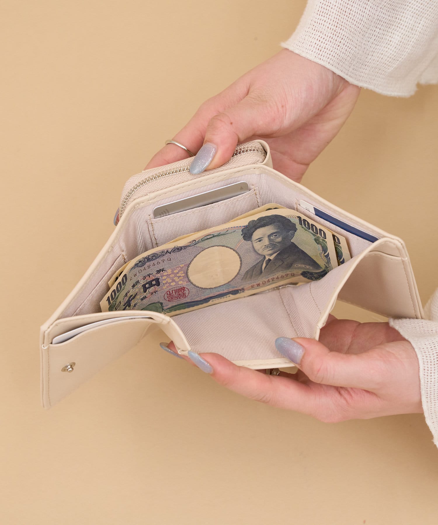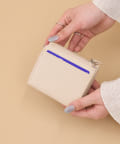 外側にはファスナー付きの小銭入れを備え、スムーズな出し入れが可能です。