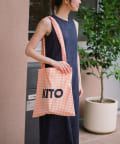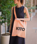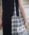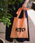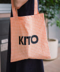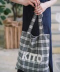 KITOのブランドロゴがプリントされたチェック柄のトートバック。