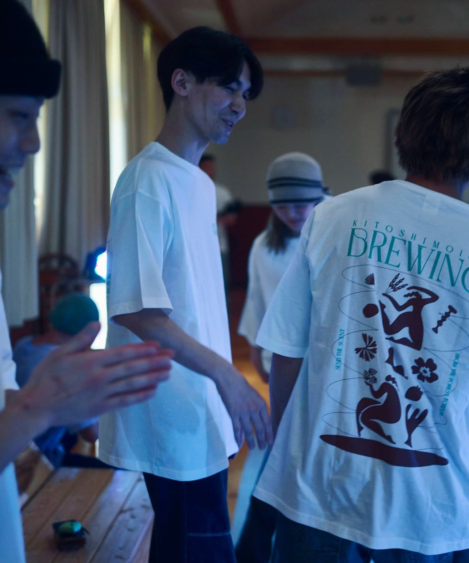 フロントにワンポイント、バッグに大きくBREWINGオリジナルのプリント。