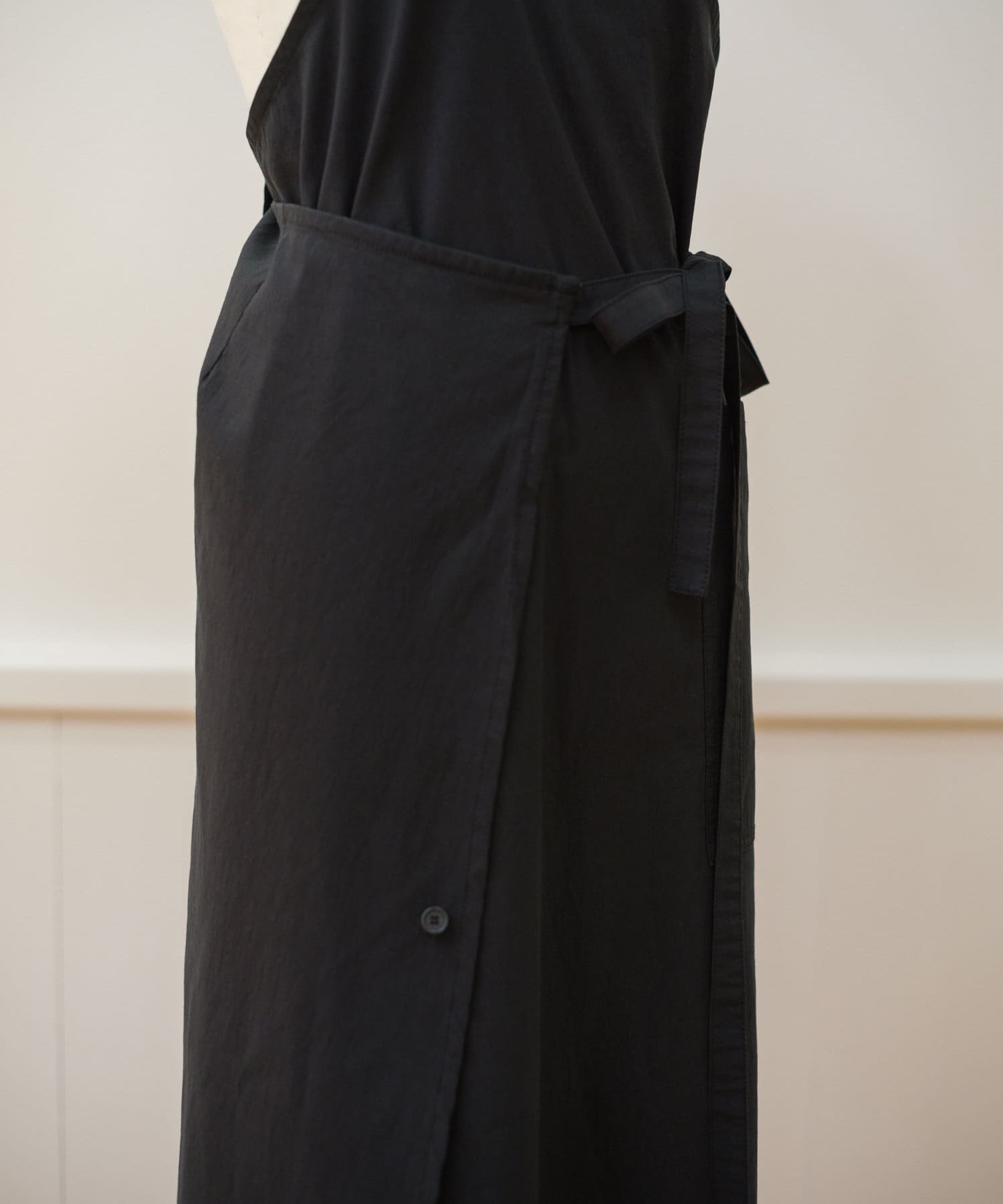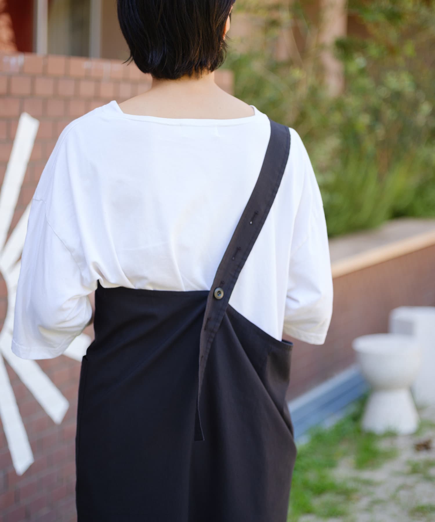 前後での着用アレンジの他、肩紐の長さを調整してワンピースとしても