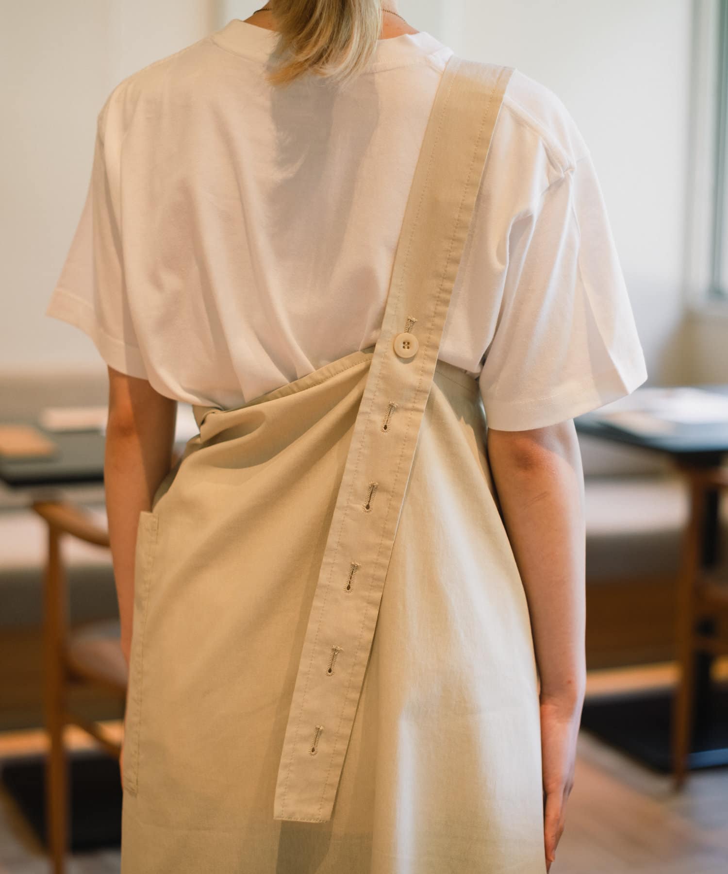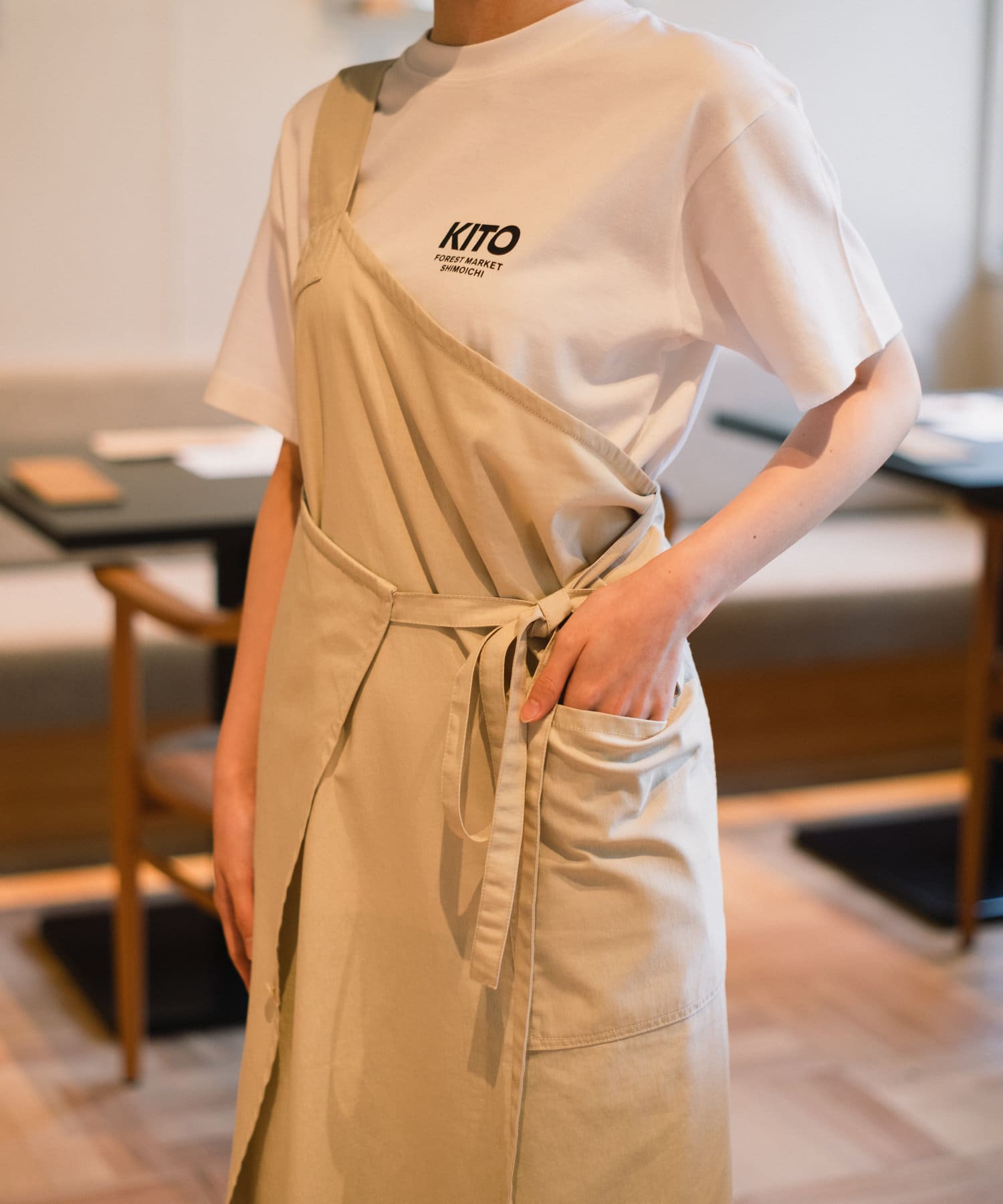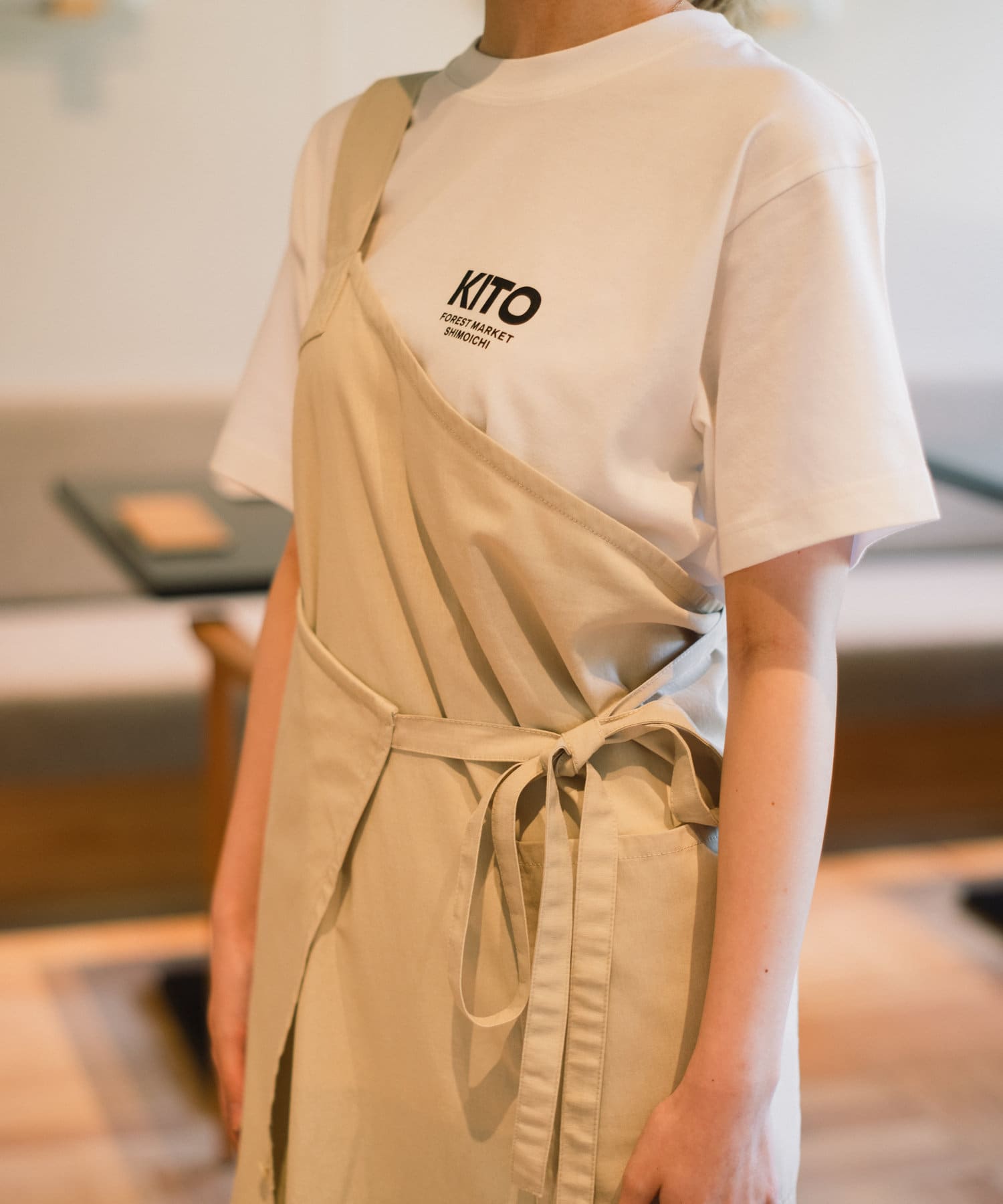 ワンショルダータイプのKITOオリジナルエプロンワンピース。