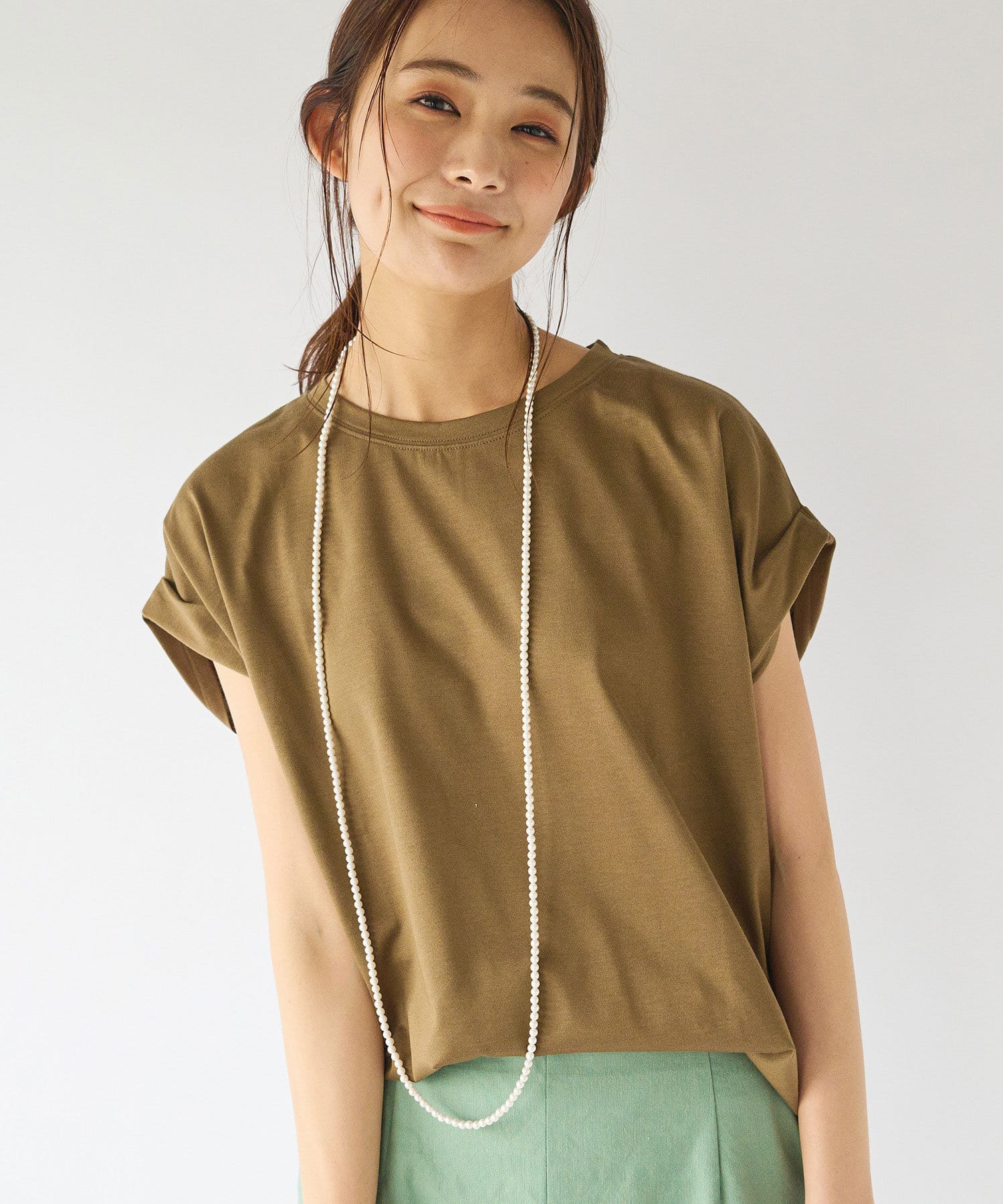 デコルテが美しく映えるクルーネックを採用しているので、女性らしさもプラスしてくれます。