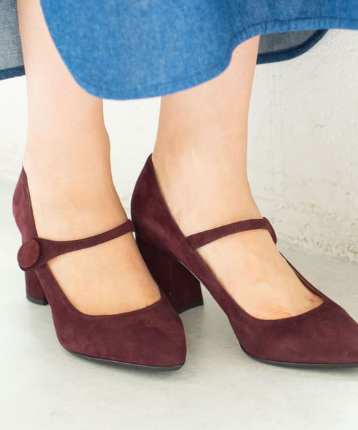 シーズンムードを漂うスエード調ワンストラップパンプス