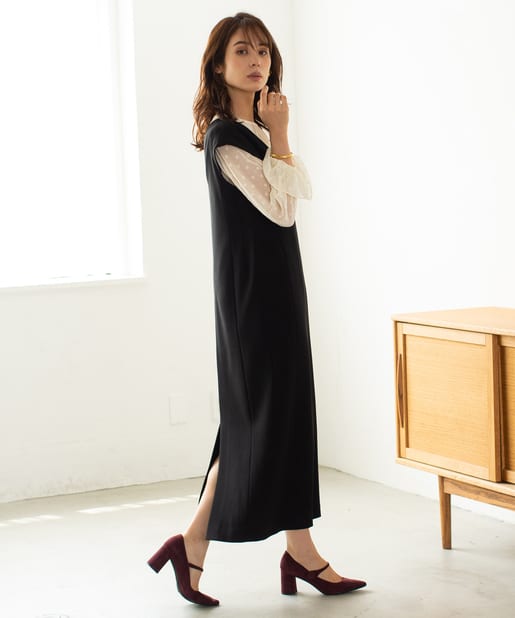 安定感のあるチャンキーヒールで長時間歩いても疲れにくく、スタイルアップ効果もあります。