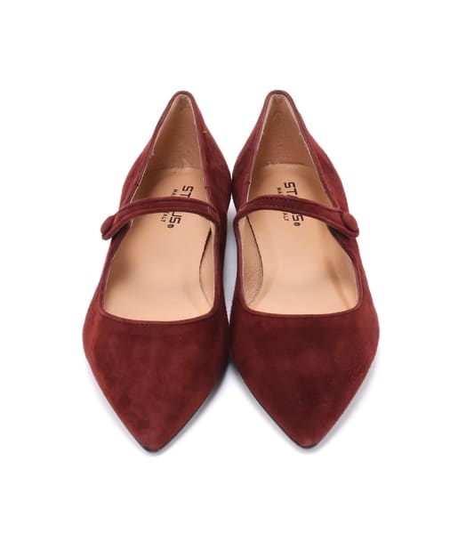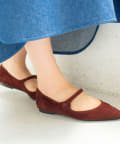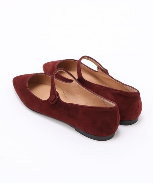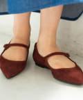 ポインテッドトゥでクラシックな印象のワンストラップフラットシューズ。