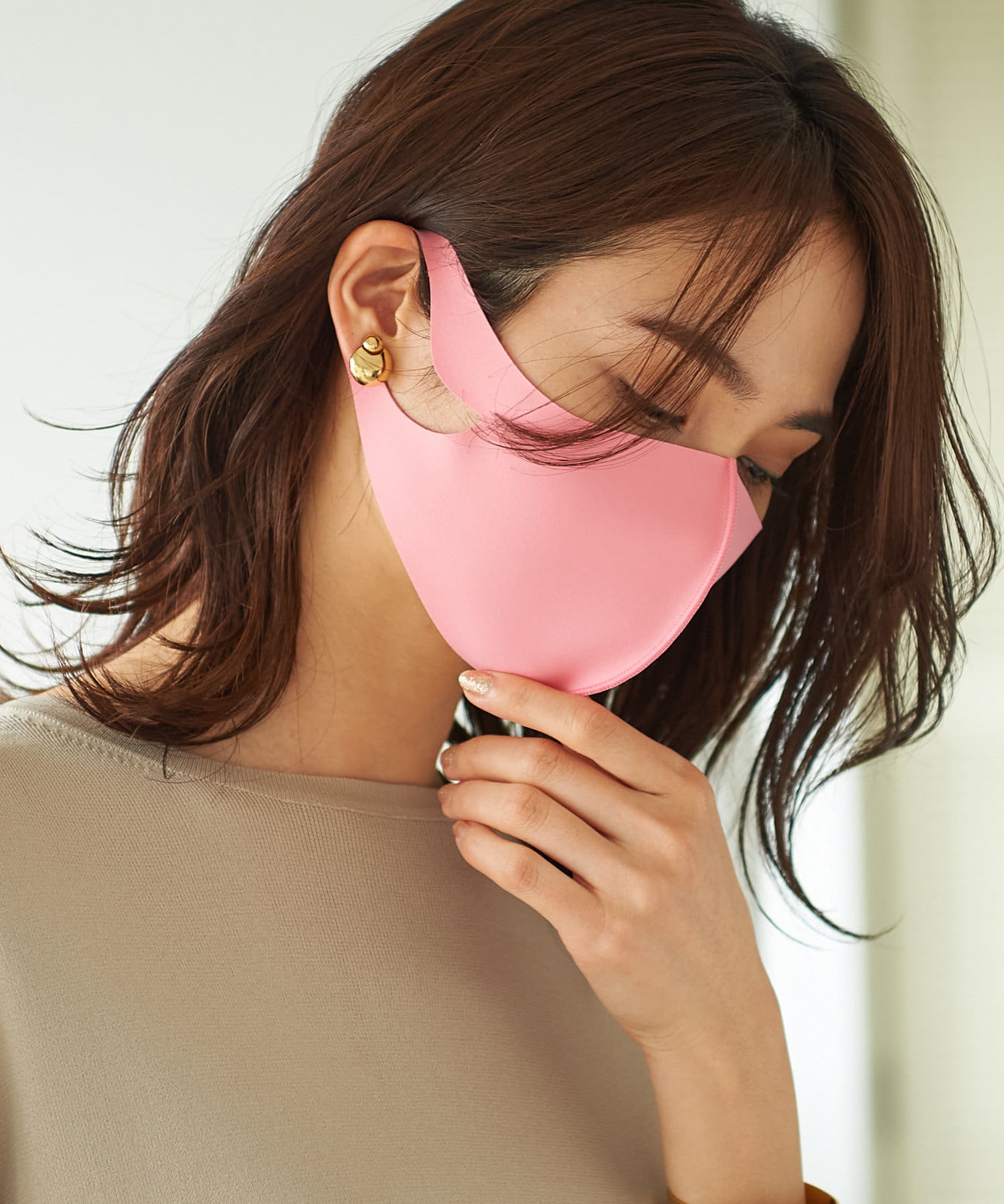 韓国を代表するHYOSUNG社による高弾力抗菌繊維を使用しており、立体構造なので息がしやすく、着け心地抜群となっております。どんな服にも合わせやすい絶妙なカラーの4色は、ラブティックボンボンの別注カラーとなっており、4色展開&2サイズ(やや小さめ/フリーサイズ)でご用意しました。小顔見えする立体デザインは、耳にかけても痛くなりにくく、隙間のできやすい鼻やあごをしっかり覆ってくれます。使っていくうちに顔にフィットするデザインも特徴です。食事などでマスクを外した際には、一時的に収納するためのジップ型専用パッケージが付いているので、置き場所に困らないのも嬉しいポイント。洗う事で繰り返し使用可能です。