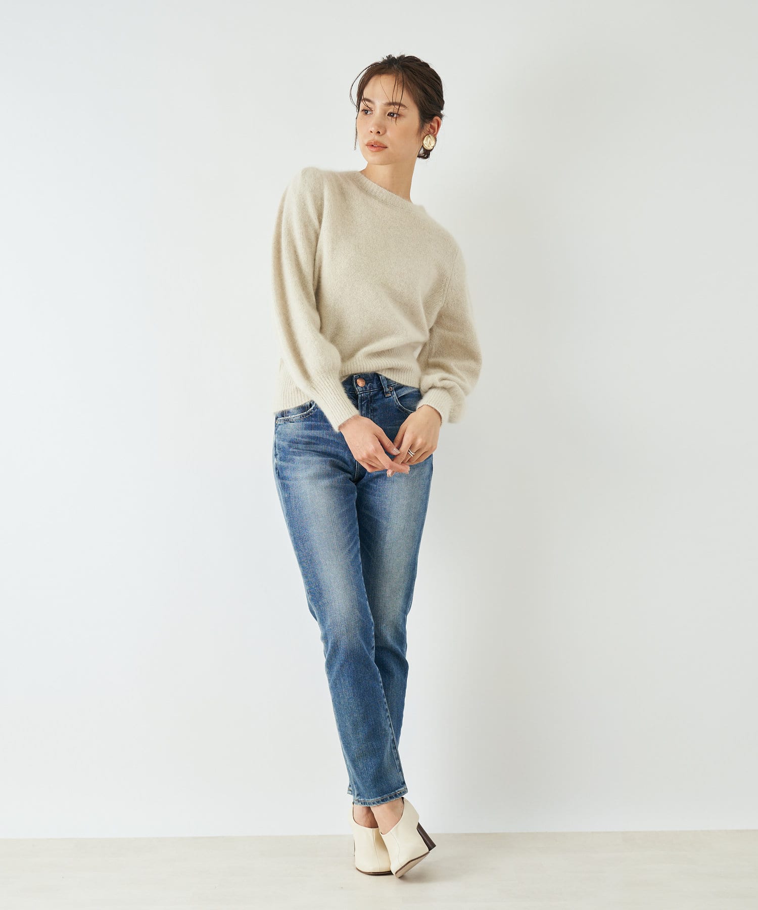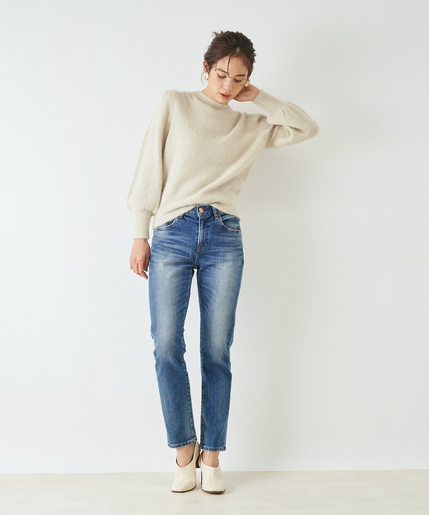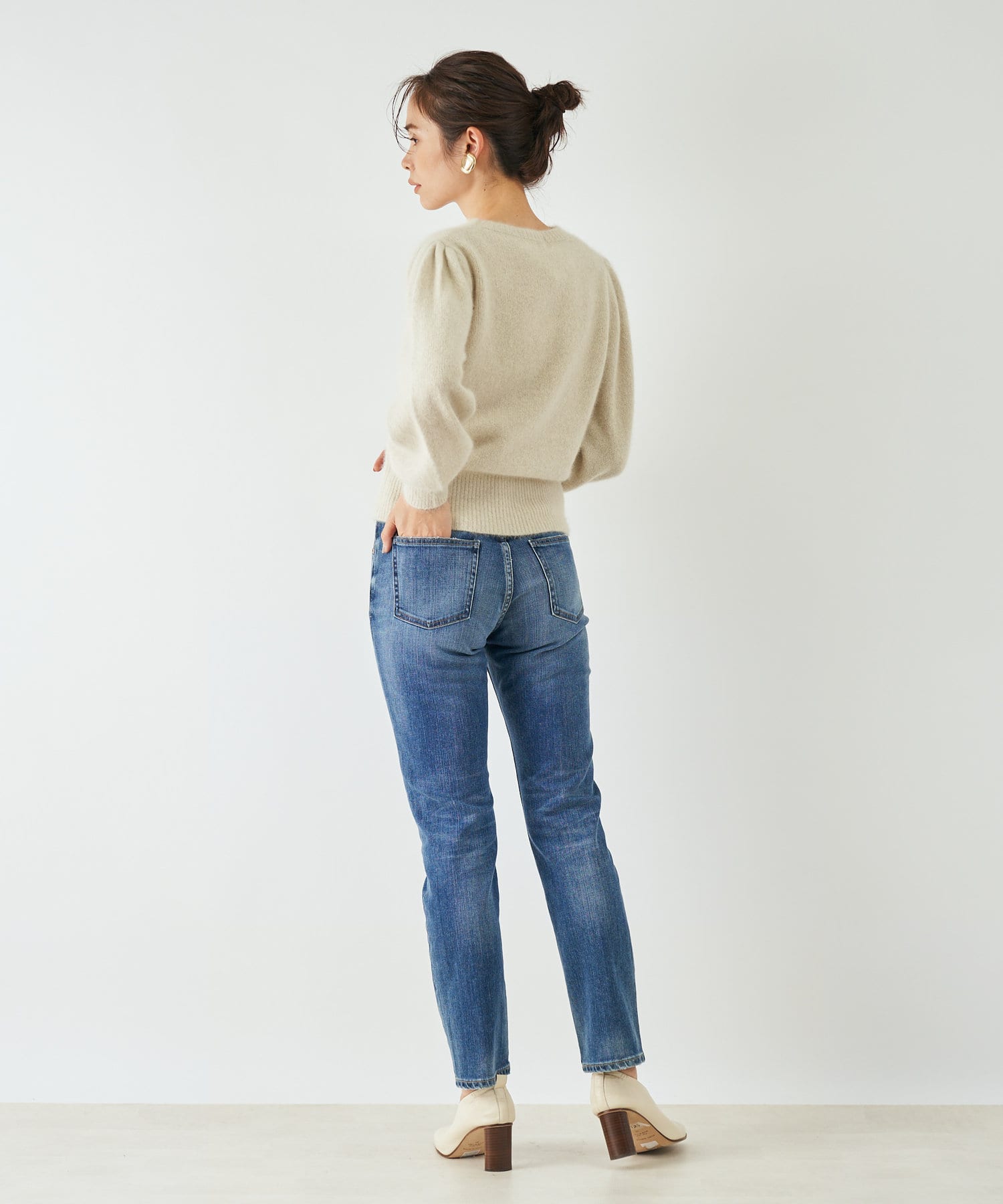 体型を美しく見せてくれるシルエットで、女性らしい穿き心地のストレートジーンズ。