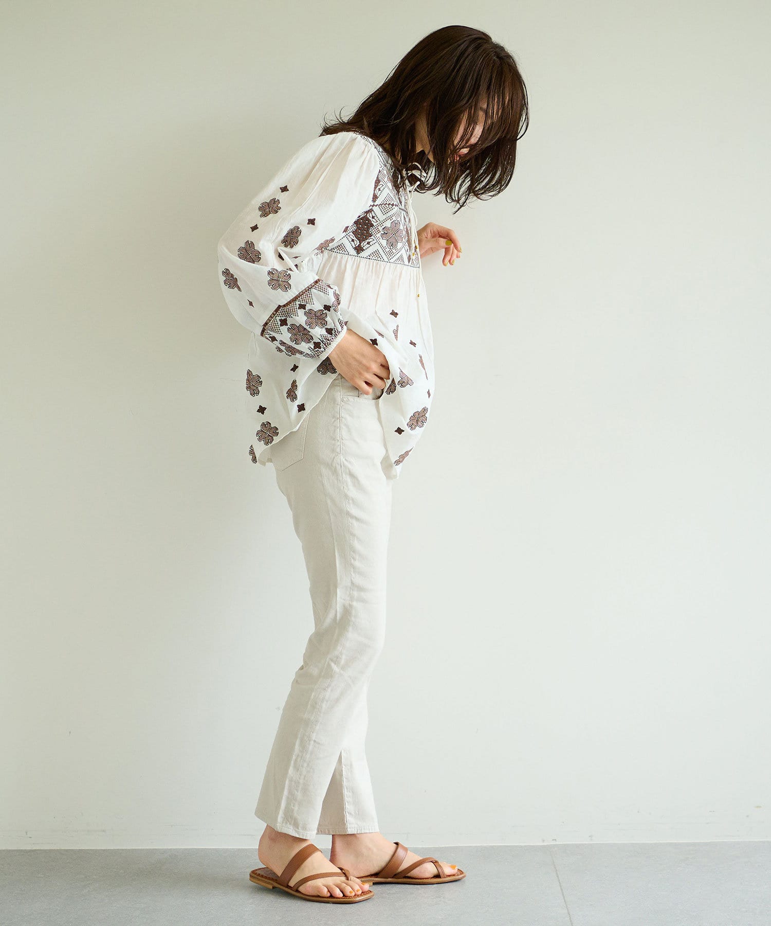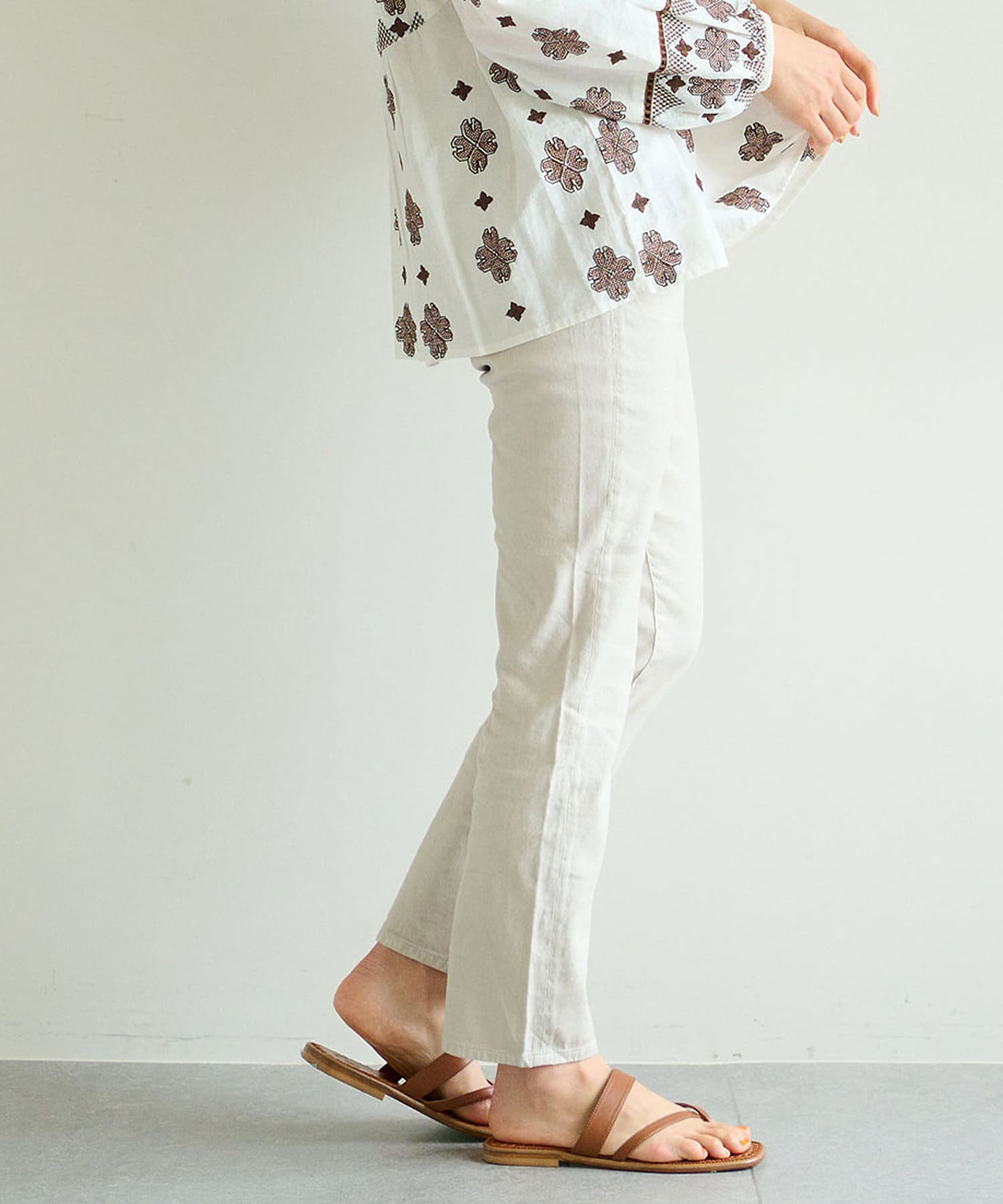 天然素材であるリネンの風合いも楽しめる大人のパンツです。