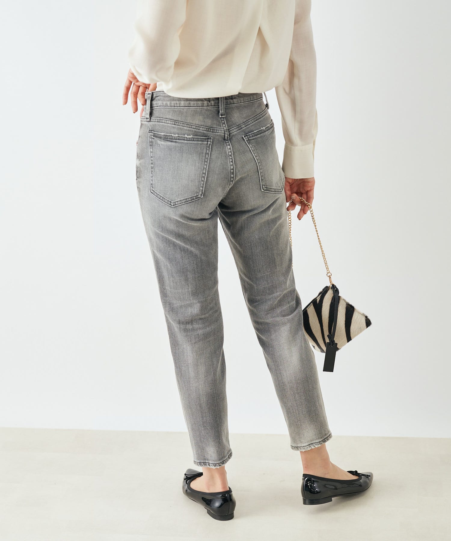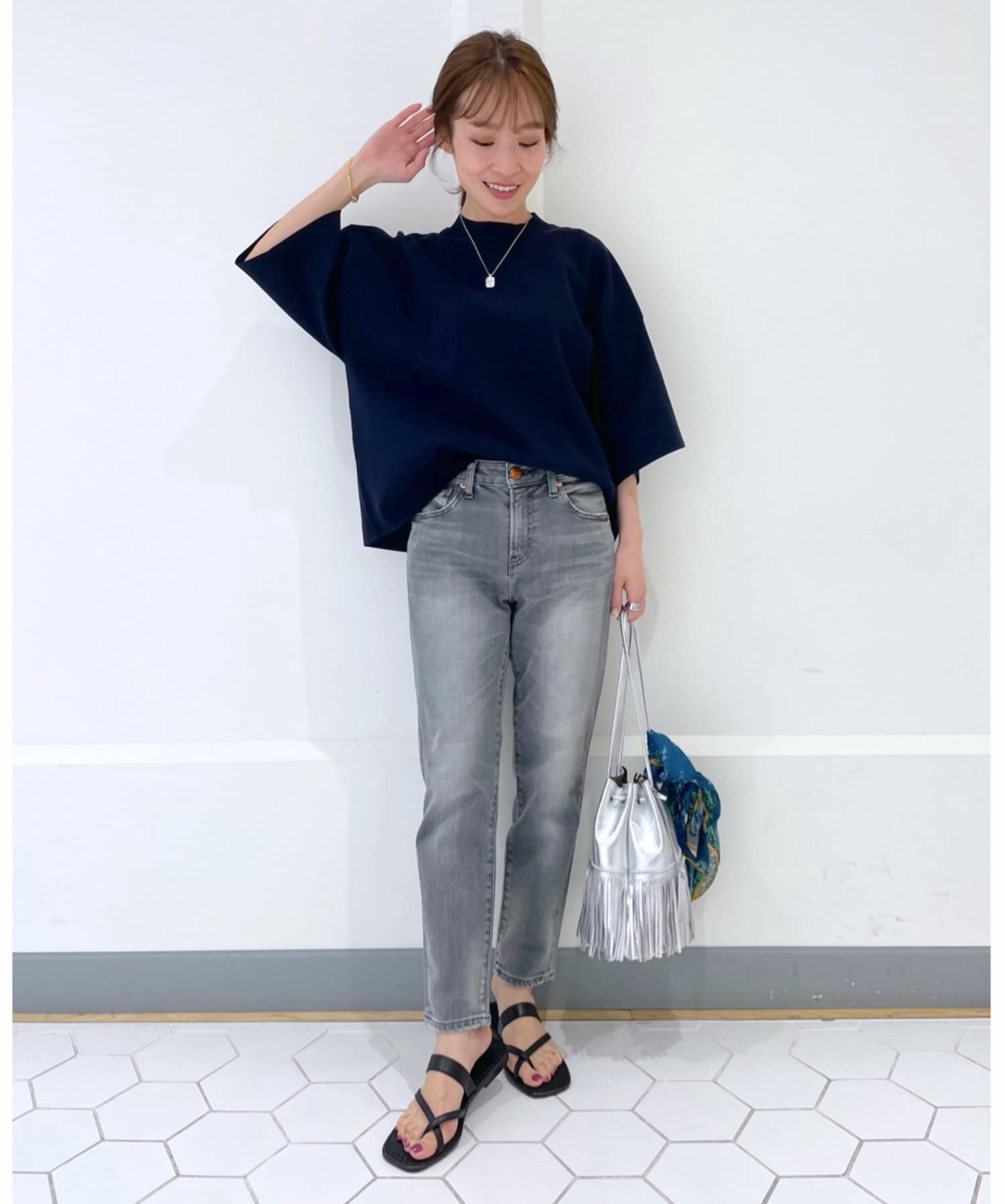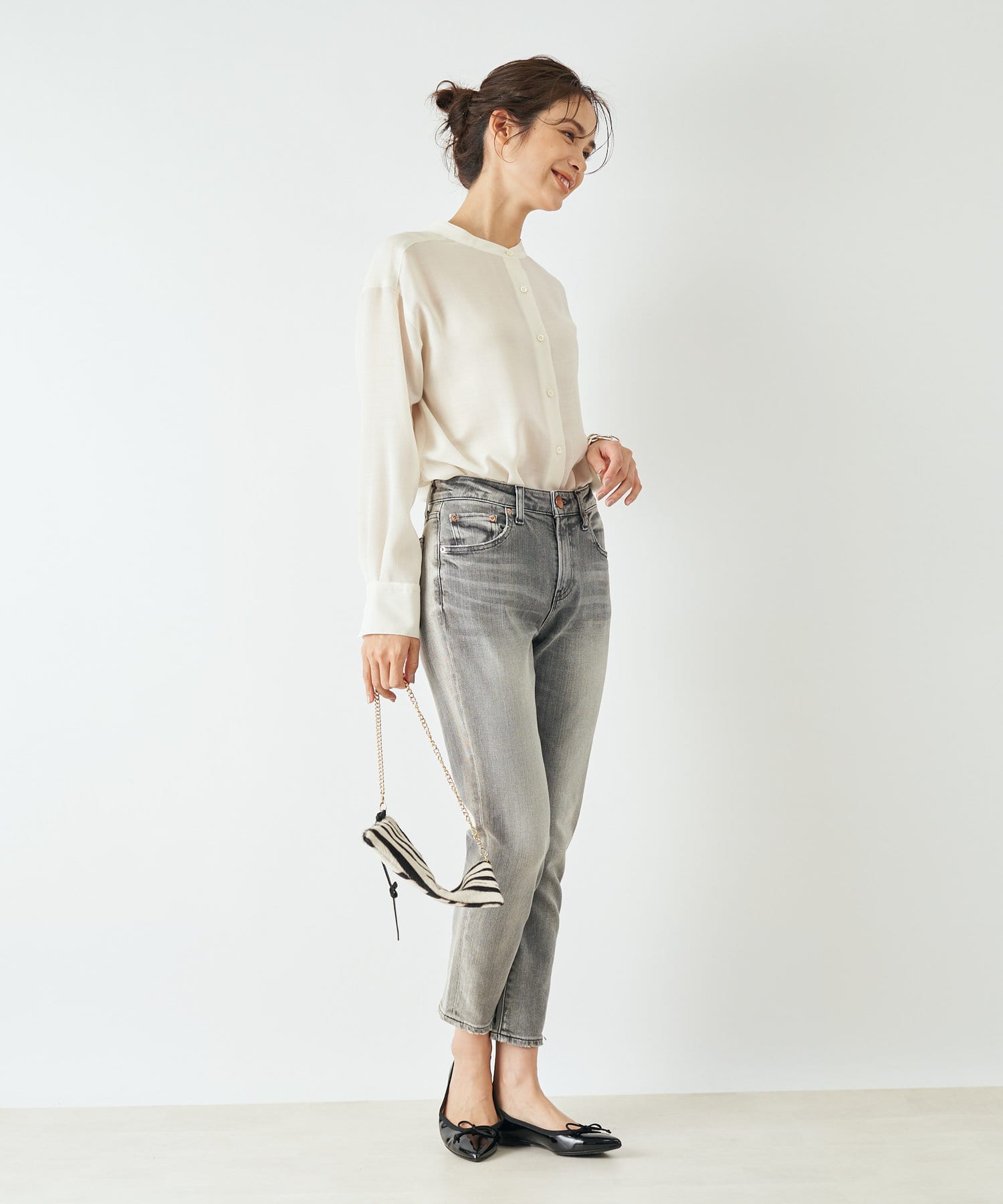 程よいアンクル丈で足元をスッキリと見せ、こなれた印象を演出することができるモデルなので、スニーカーはもちろん、パンプスなどとも好相性。