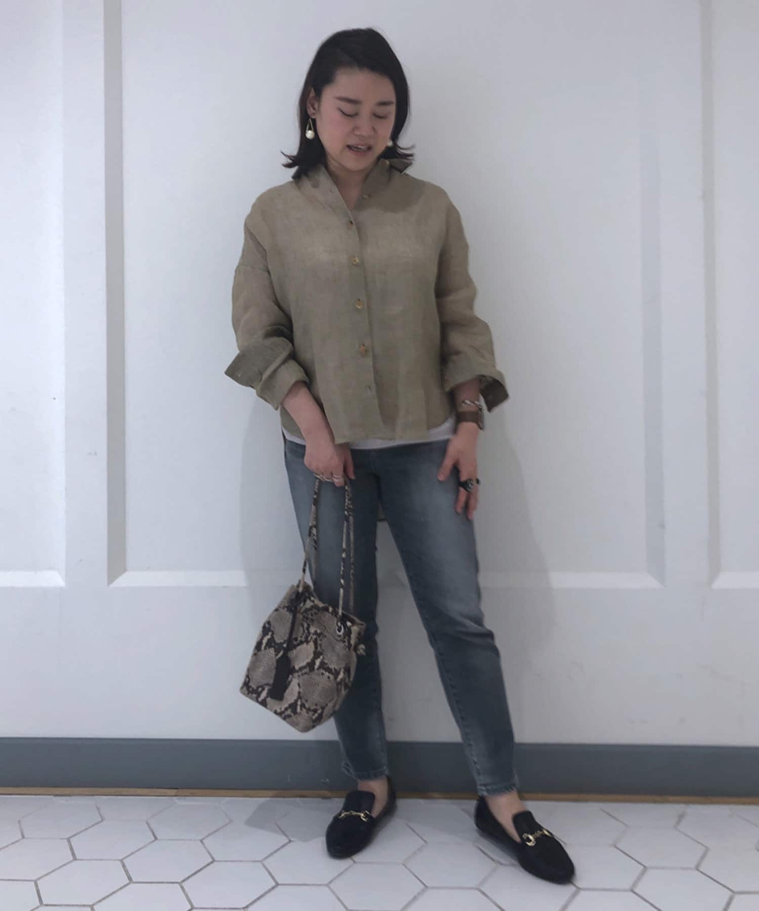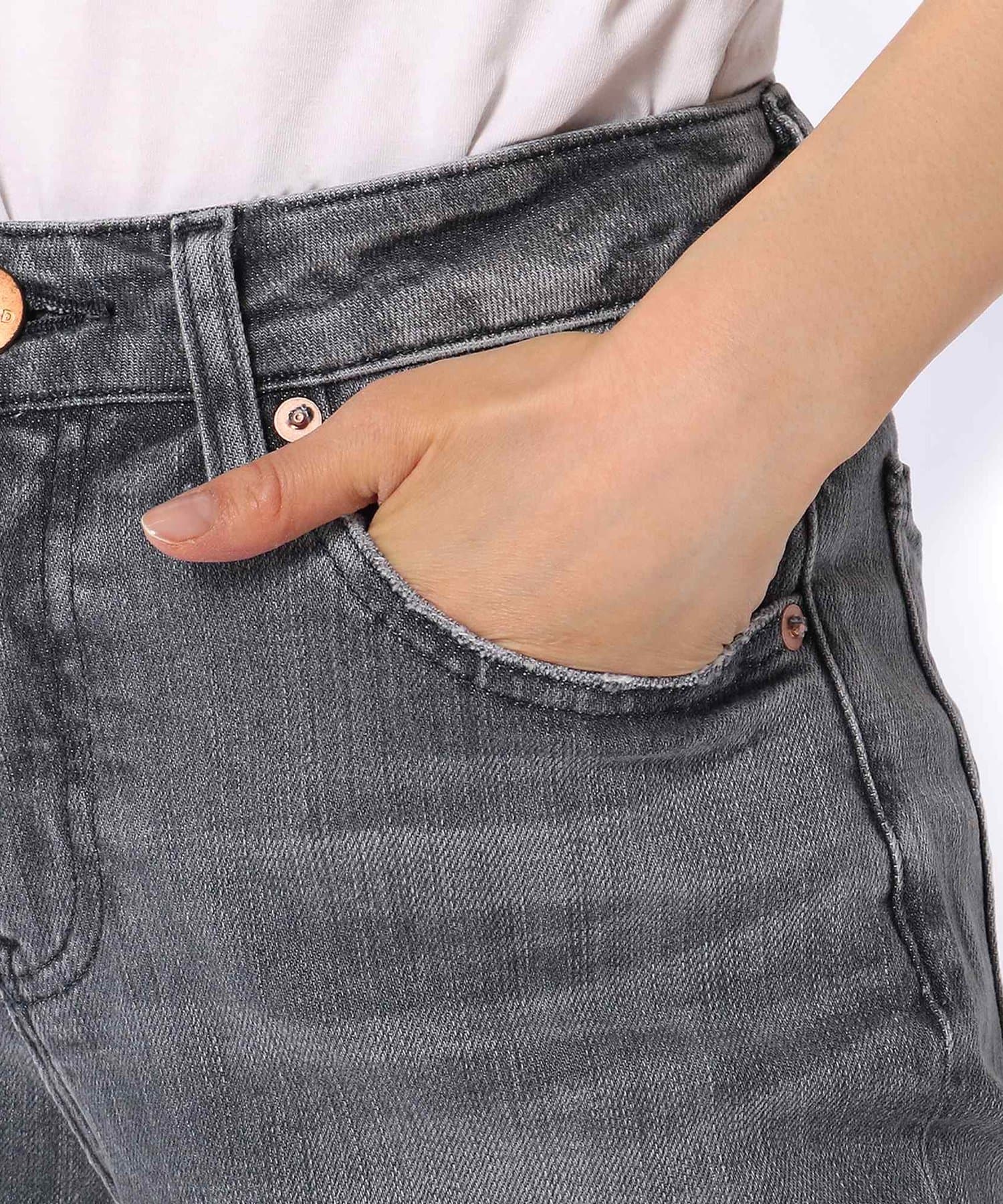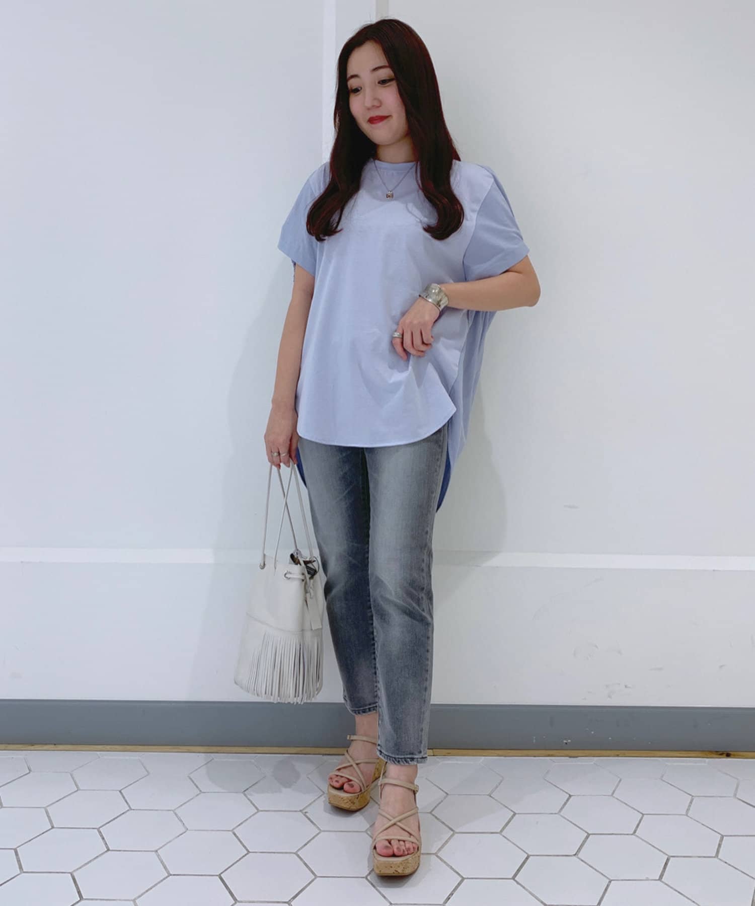 程よいアンクル丈で足元をスッキリと見せ、こなれた印象を演出することができるモデルなので、スニーカーはもちろん、パンプスなどとも好相性。